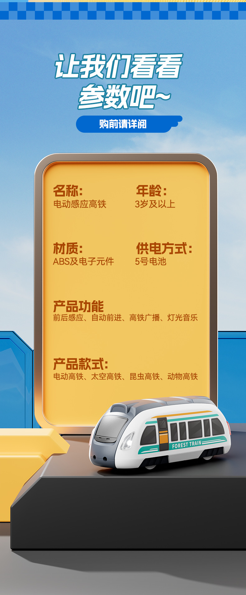 - 【蓝色】电动感应高铁(感应避障+灯光音乐)