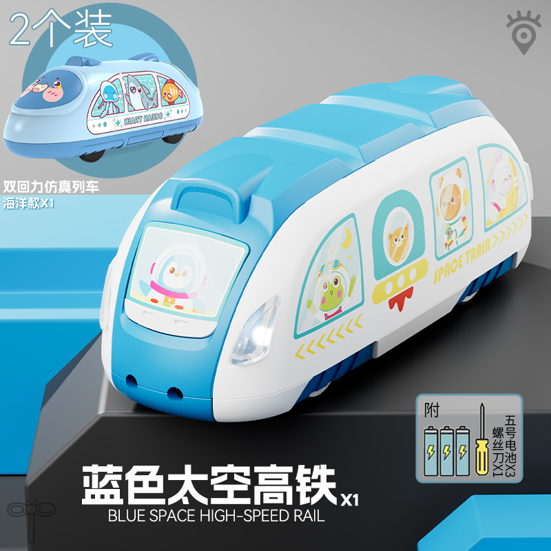 - 【蓝色+电池+蓝色回力高铁】电动感应高铁(感应避障+灯光音乐)