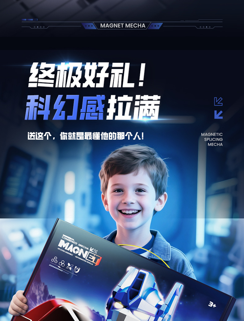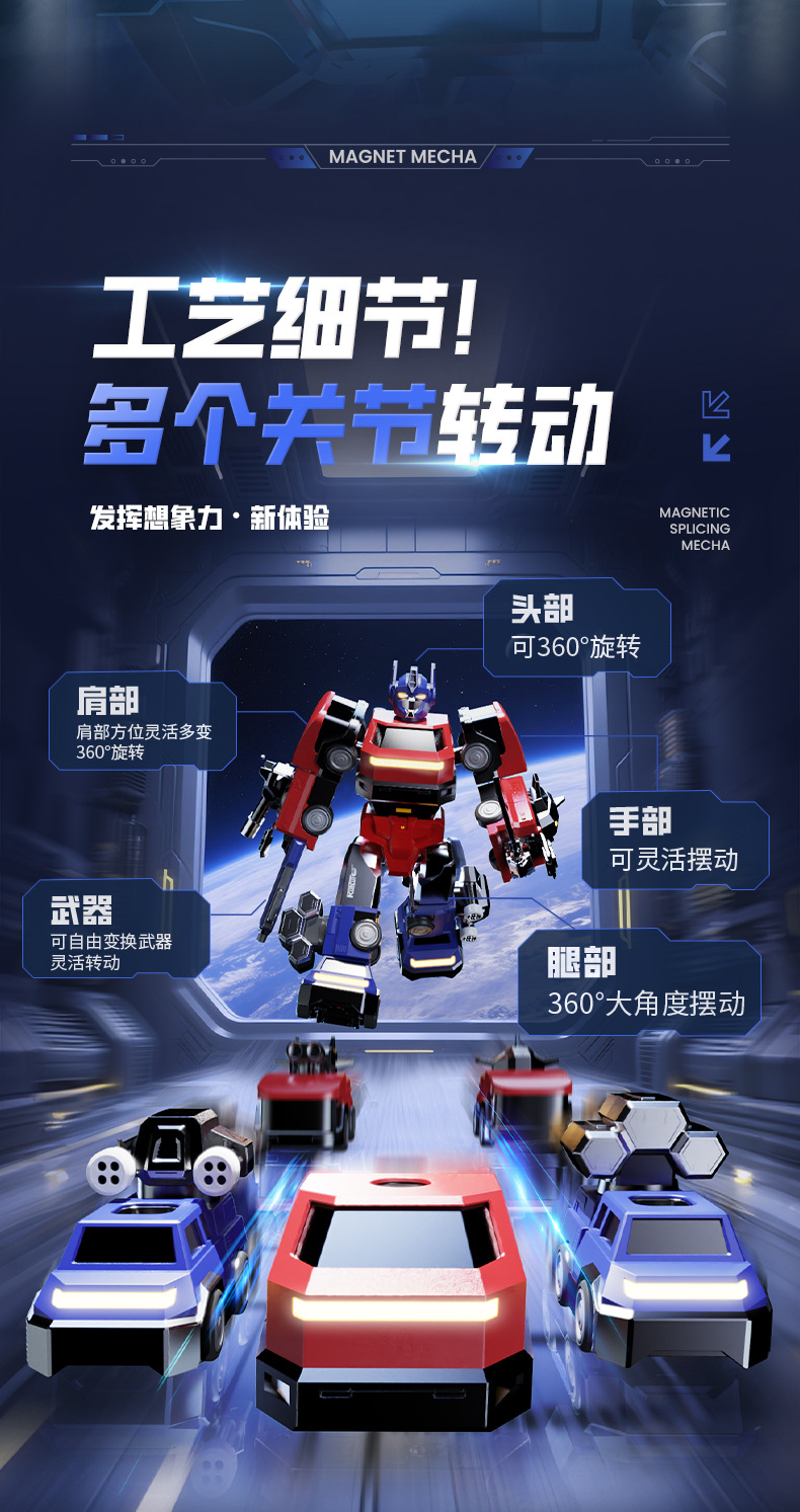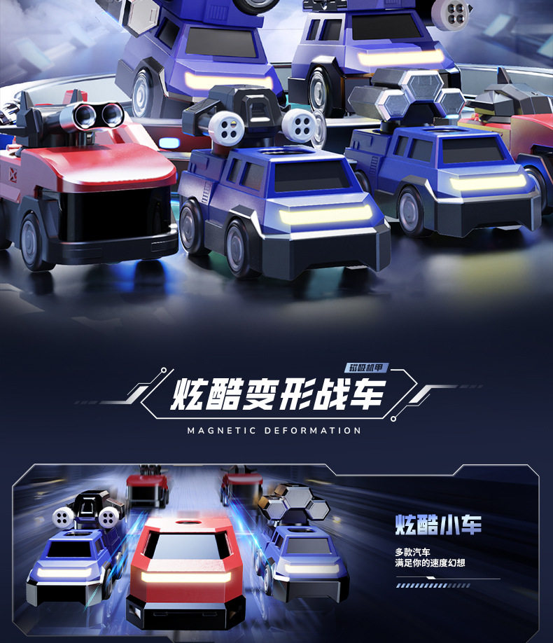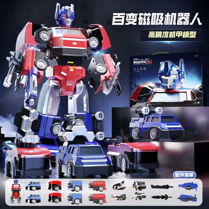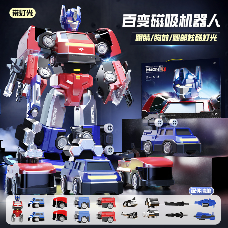 爆款儿童百变机器人拼装磁力变形小汽车机甲男孩益智玩具生日礼物
