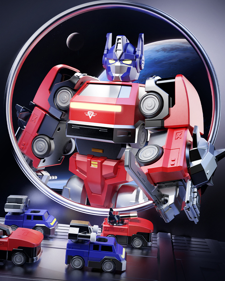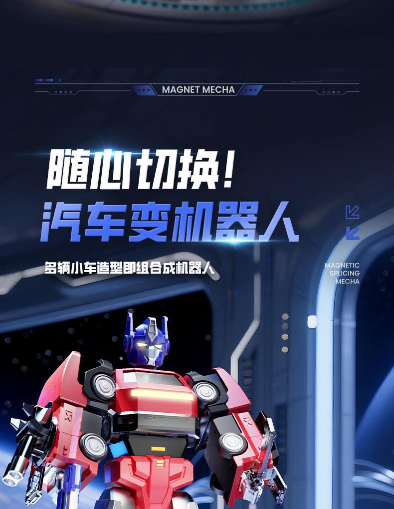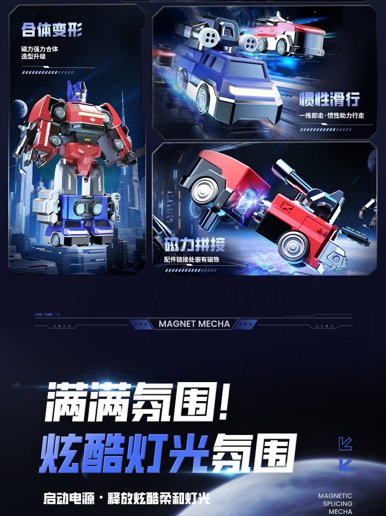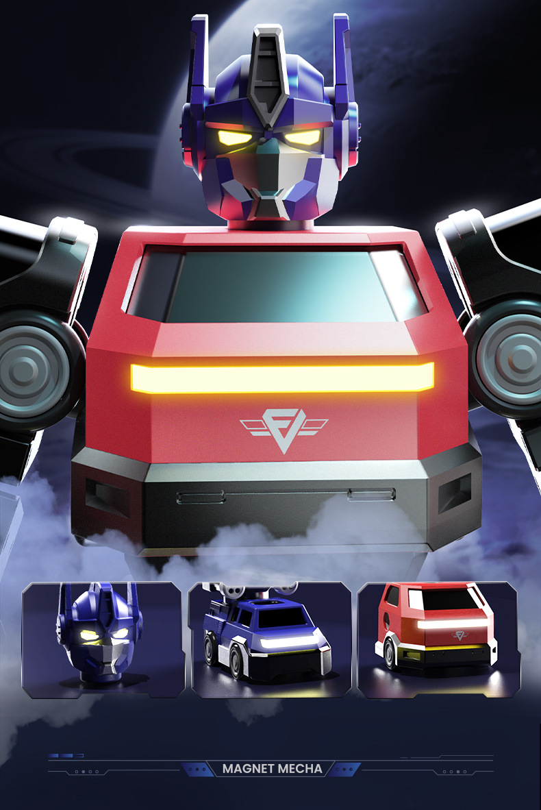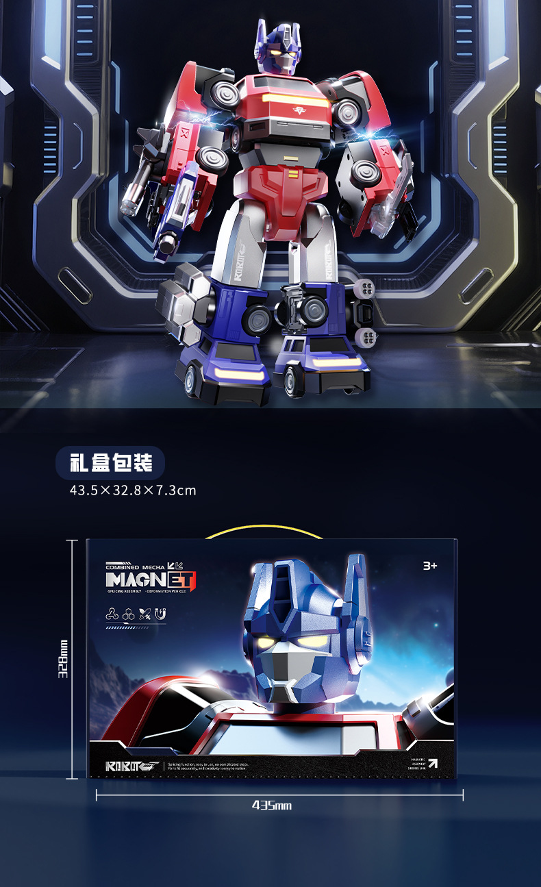 蓝红丨百变磁吸汽车人【礼盒装-带灯光】