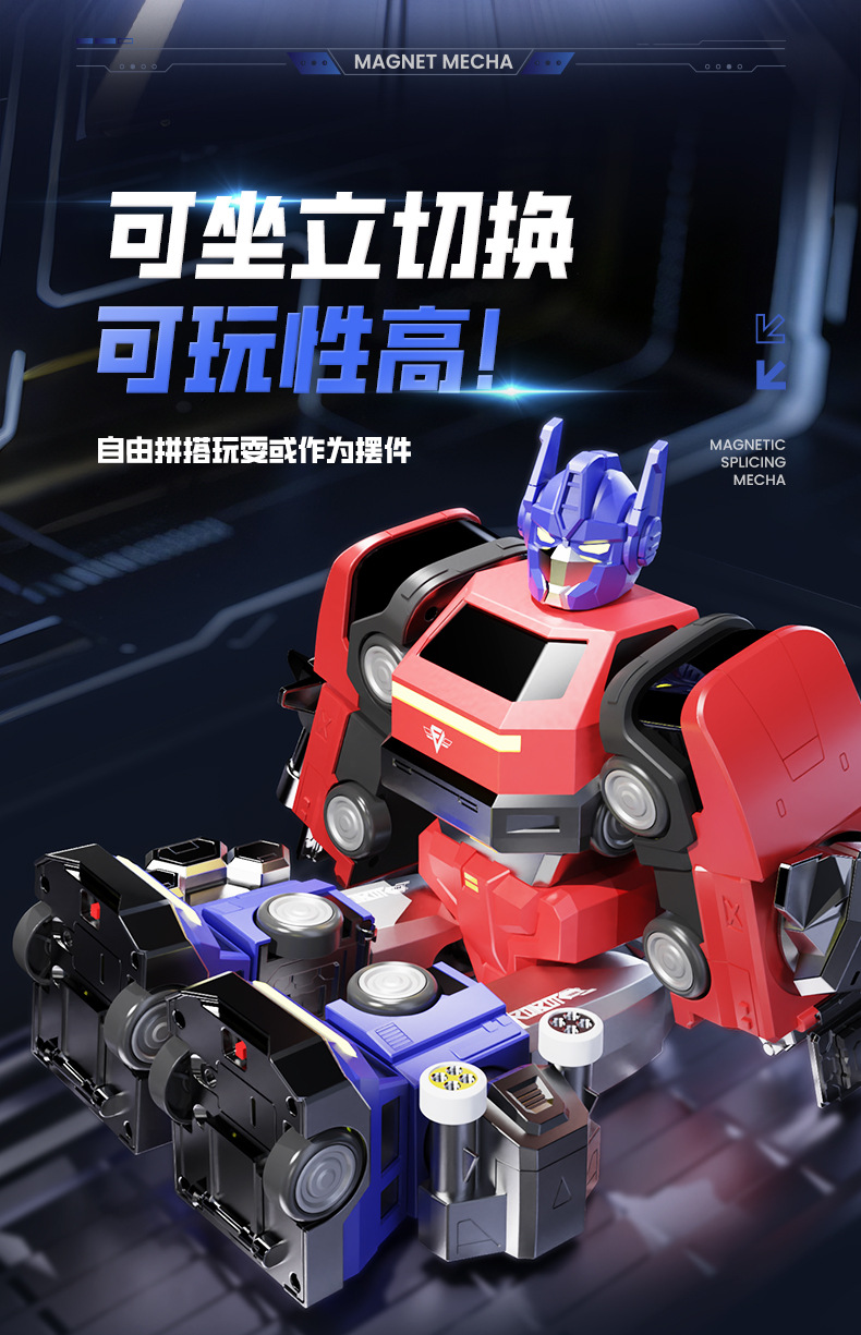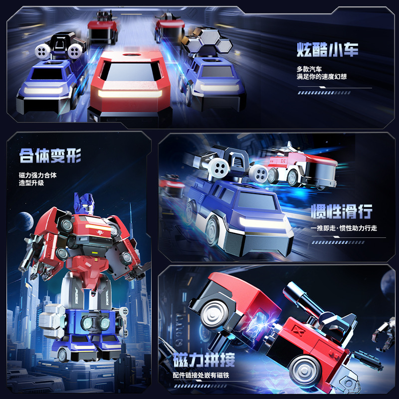 蓝红丨百变磁吸汽车人【礼盒装-无灯光】