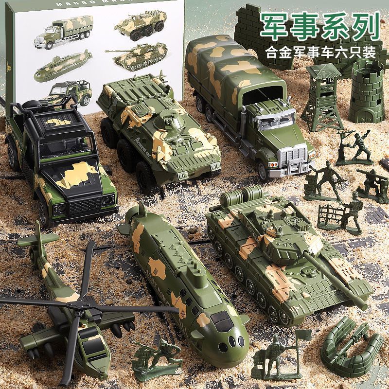 跨境内销儿童合金车玩具男孩套装小汽车消防军事坦克装甲车模型