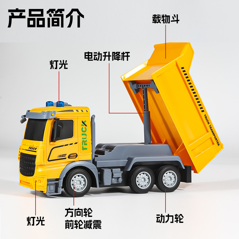 跨境仿真工程车可充电2.4G遥控车自卸车运输车模型大号儿童玩具车