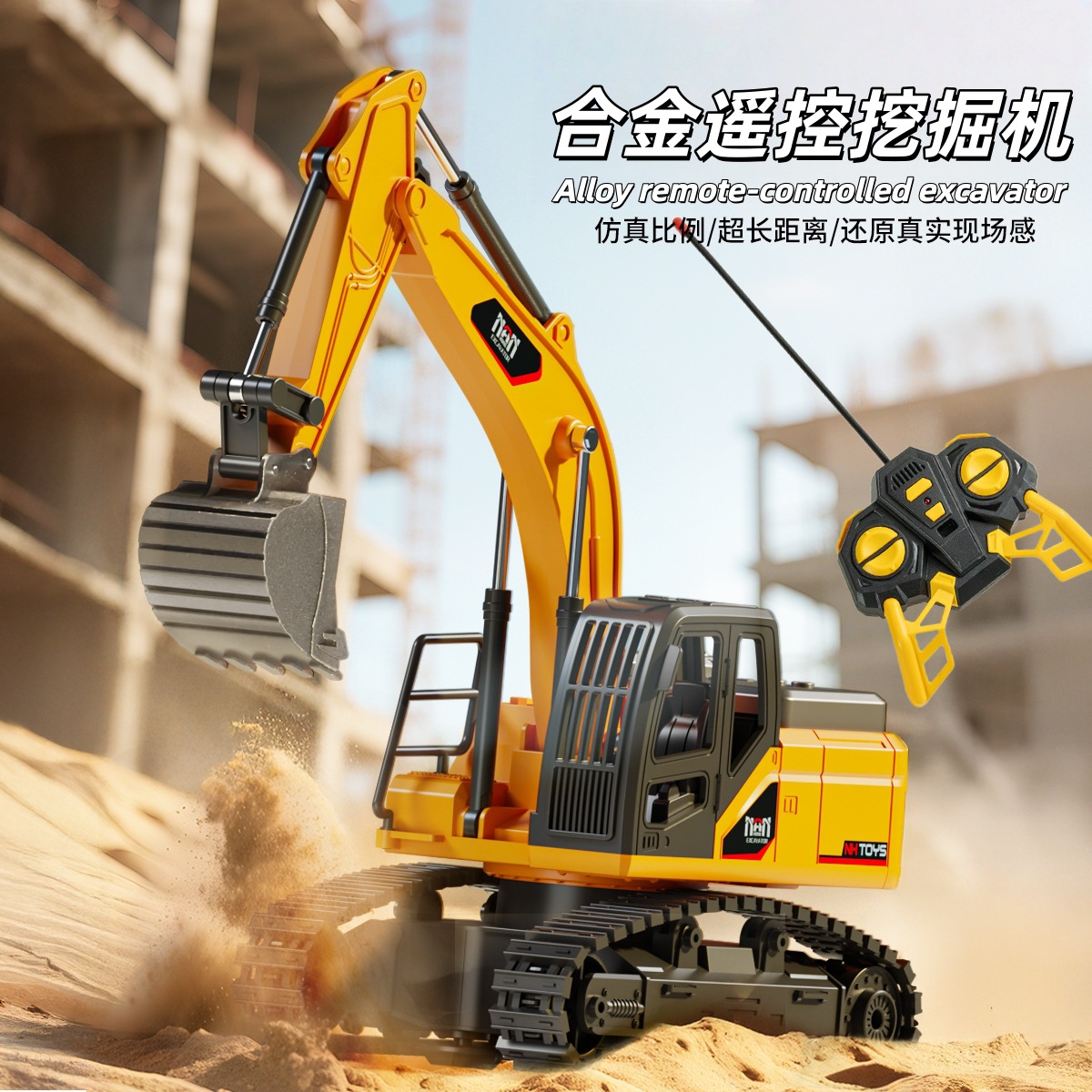 合金遥控挖掘机六通电动1:24仿真工程挖土灯光音效儿童玩具