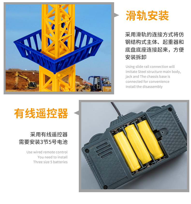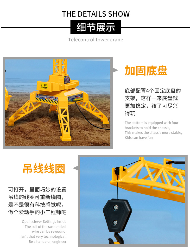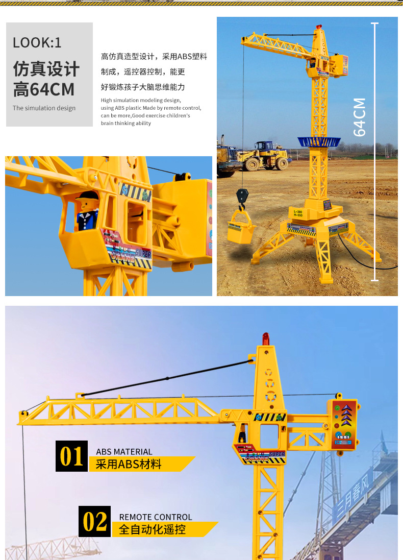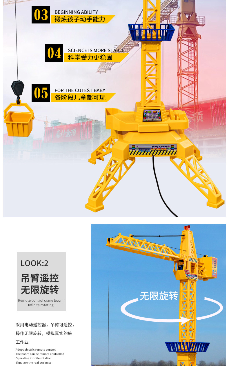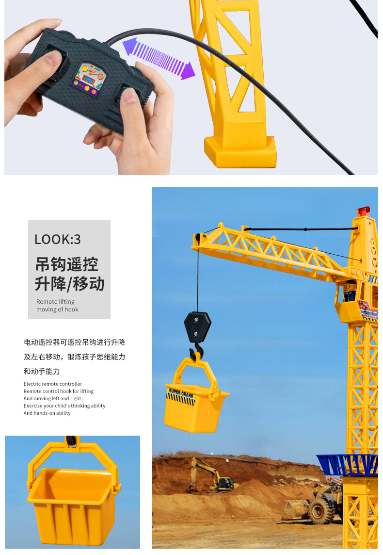 男孩遥控电动塔吊工程车模型起重吊车吊机吊塔玩具儿童礼物