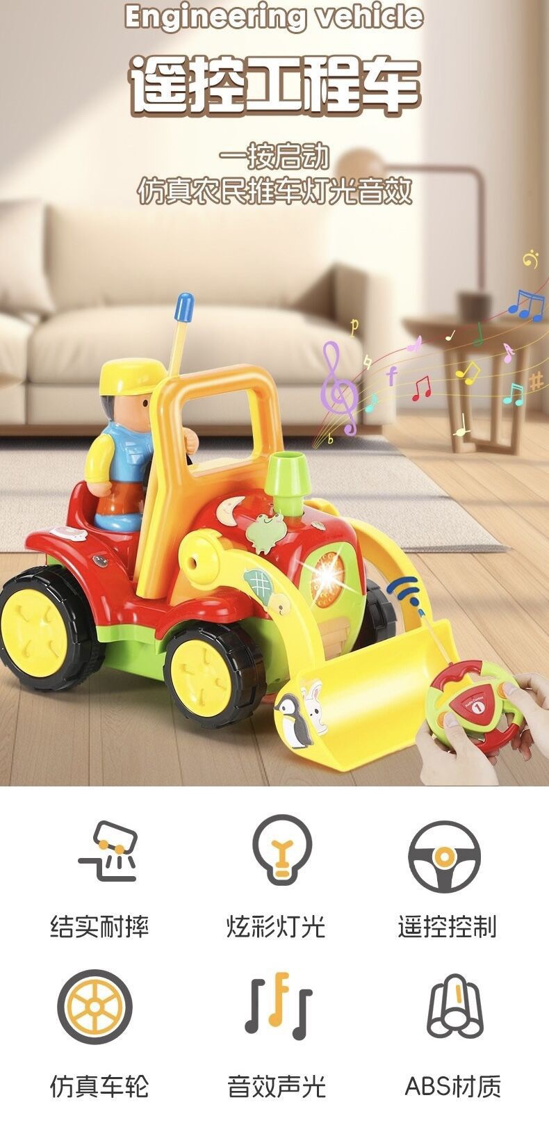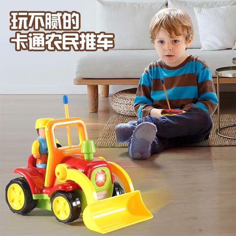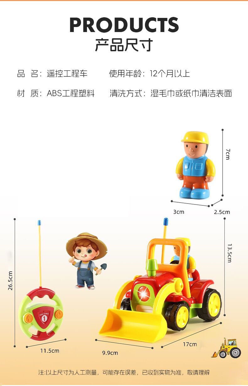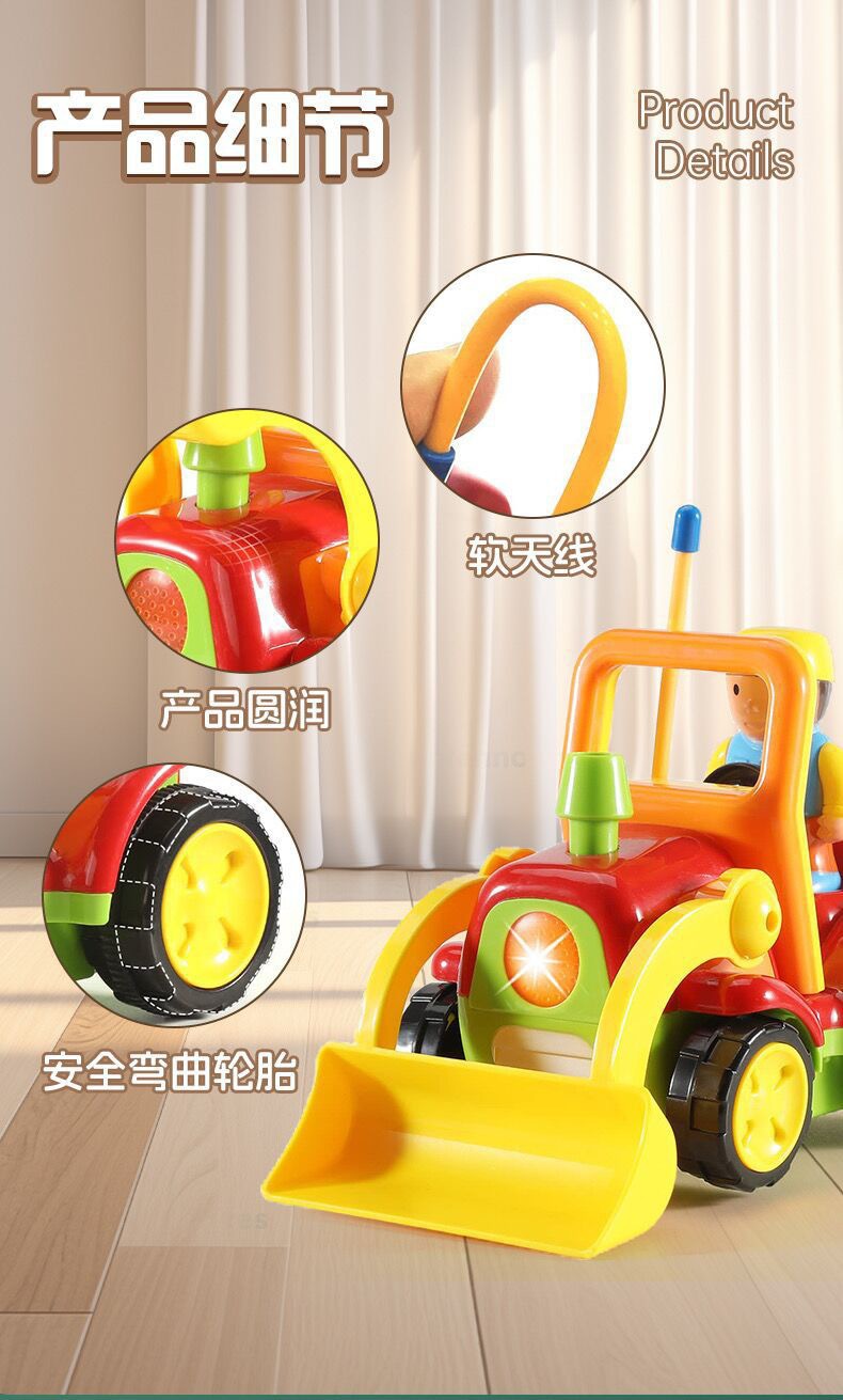 跨境新款卡通遥控工程车儿童灯光音乐电动男孩遥控车亲子互动玩具