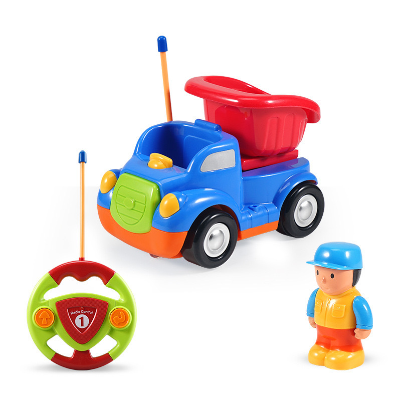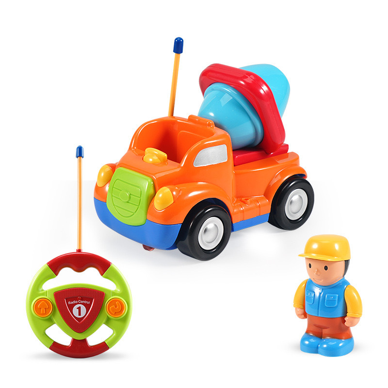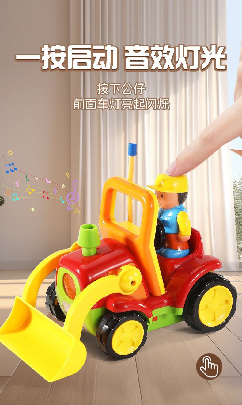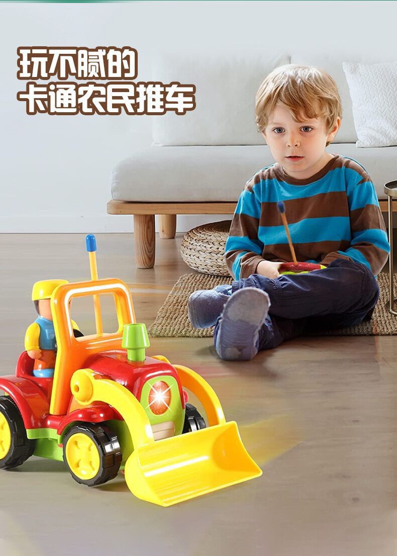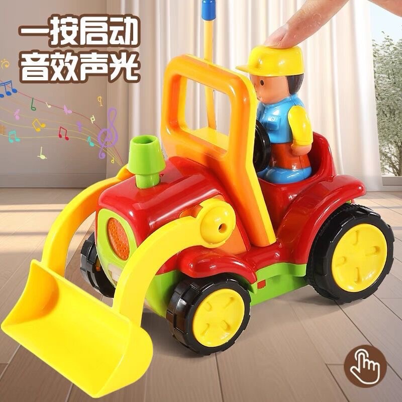 跨境新款卡通遥控工程车儿童灯光音乐电动男孩遥控车亲子互动玩具