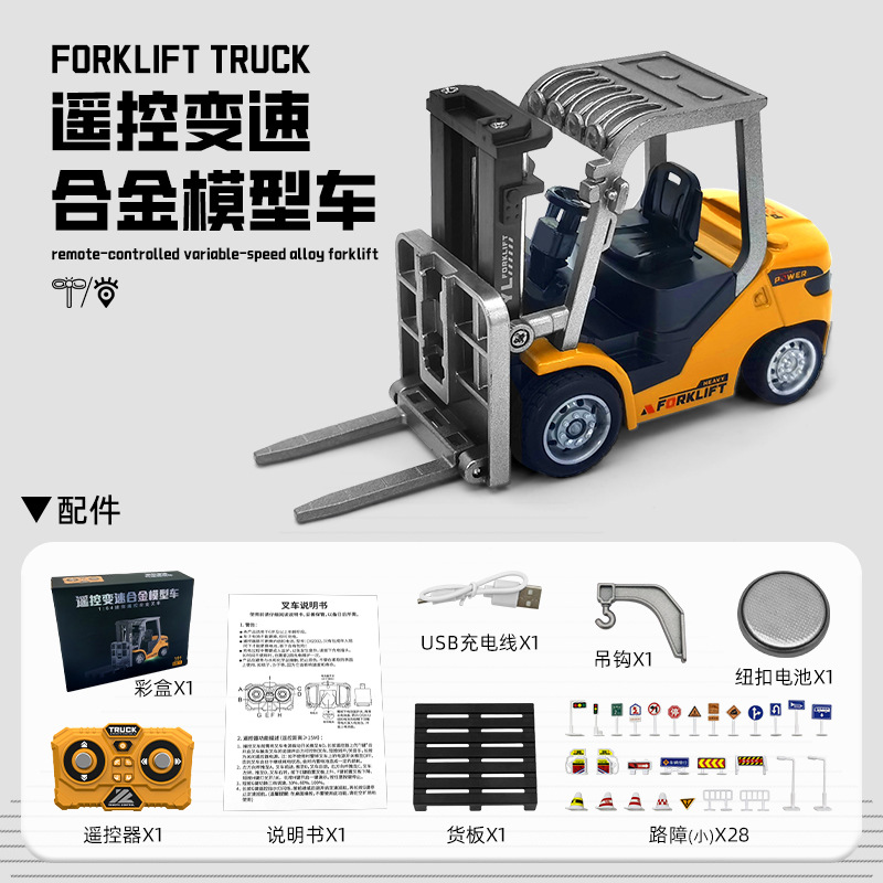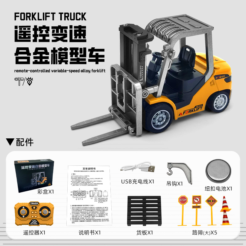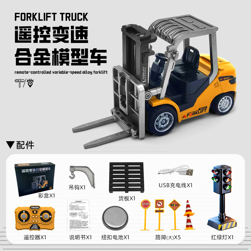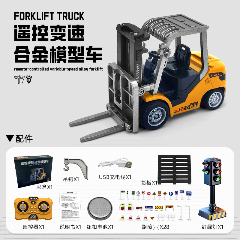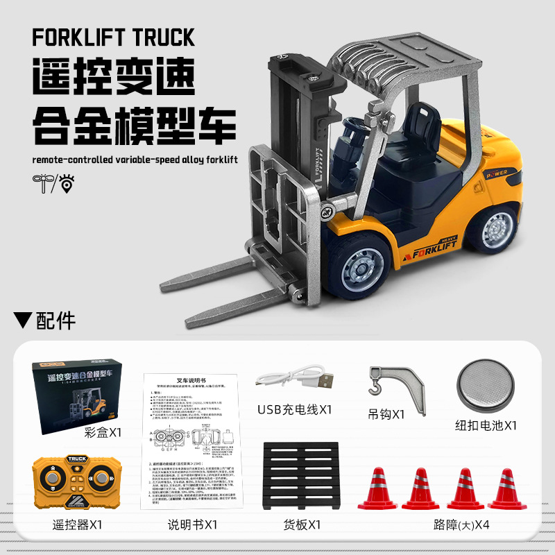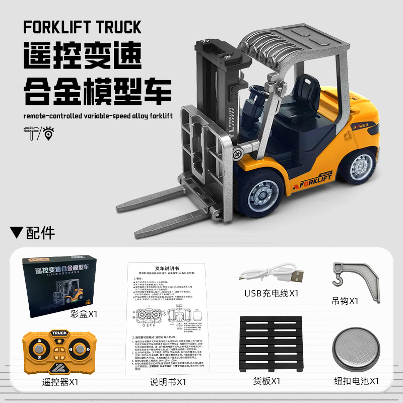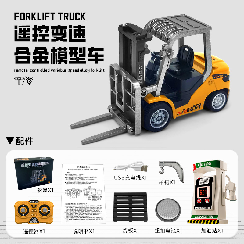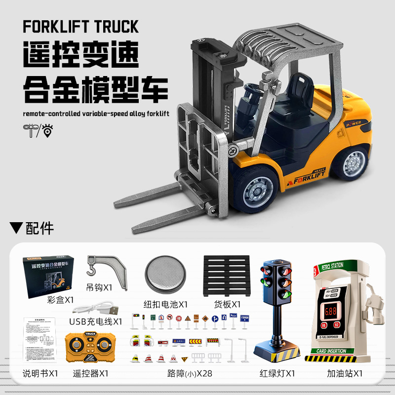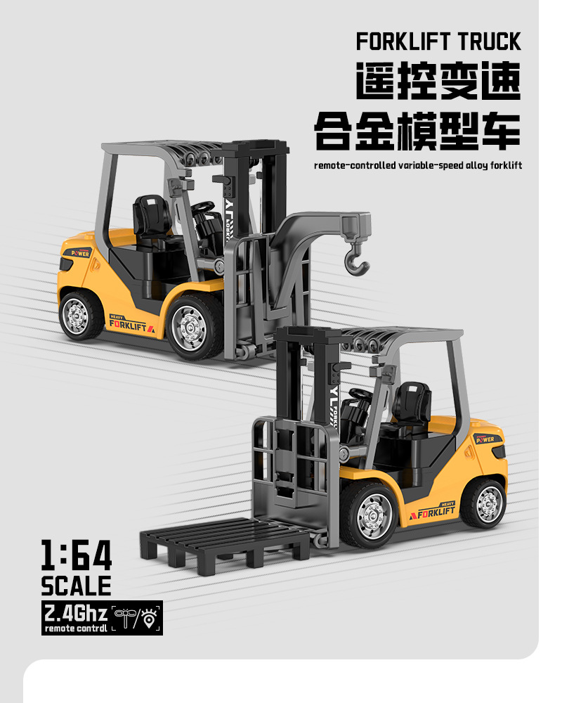 新款1:64蓝牙迷你合金叉车遥控工程车玩具可手机遥控儿童生日礼物