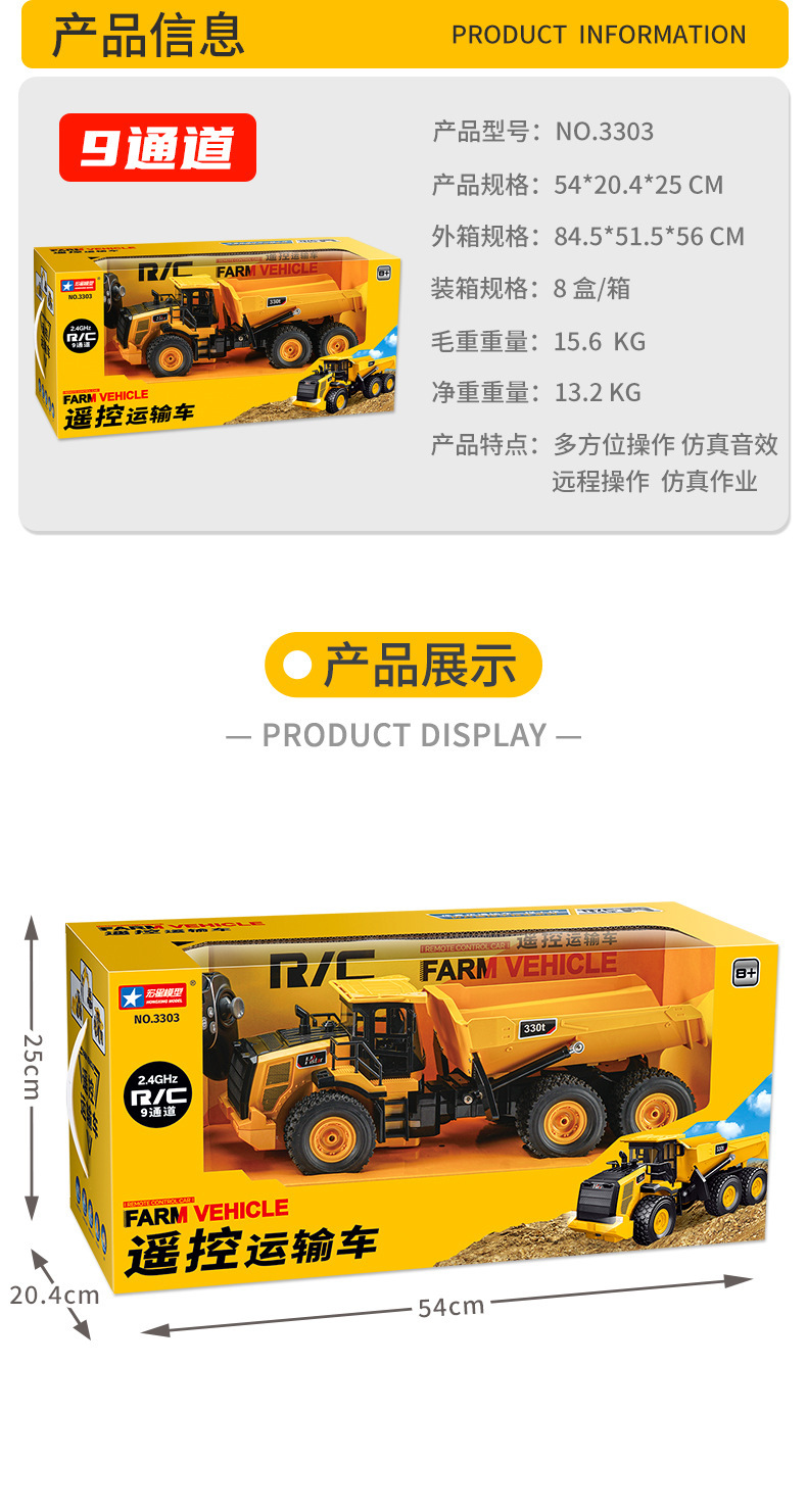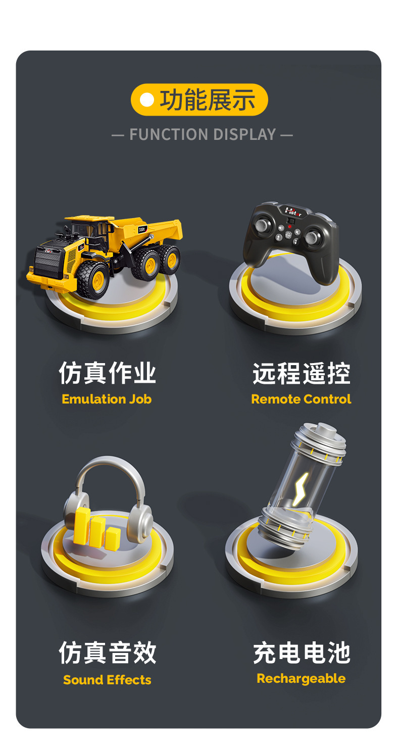 遥控挖掘机仿真工程车系列男孩运输车遥控车跨境工程车玩具