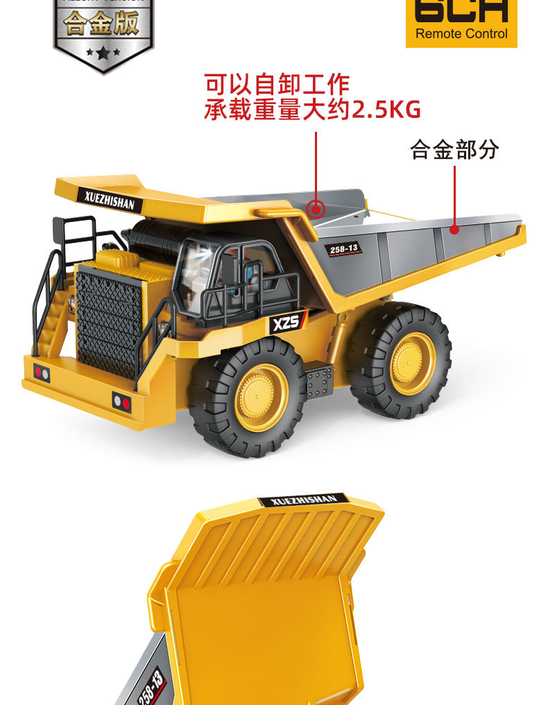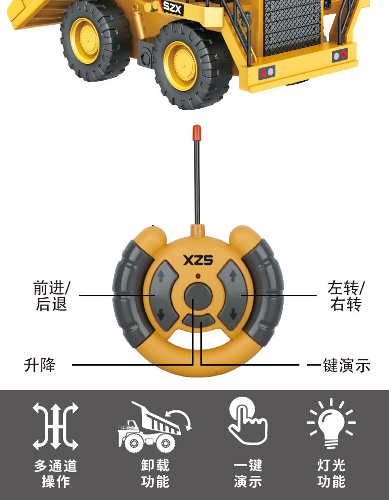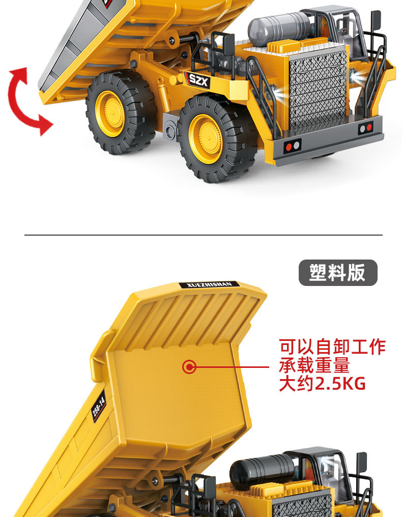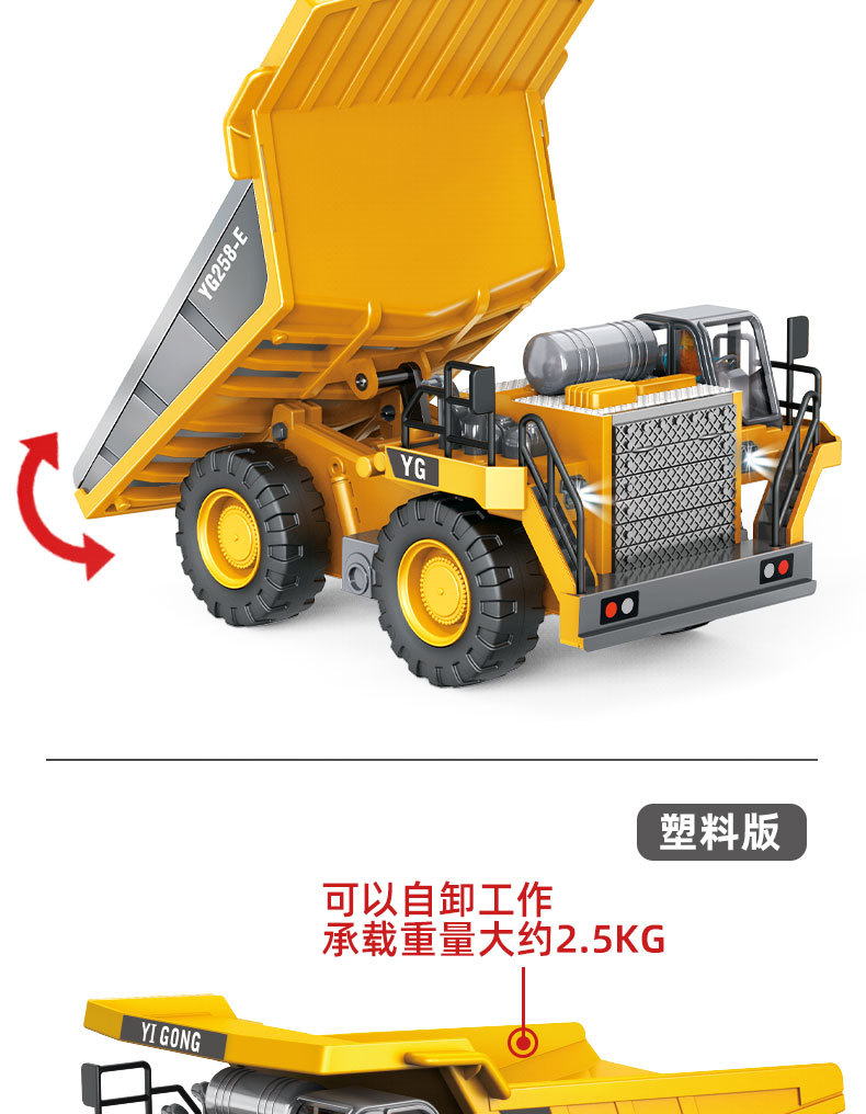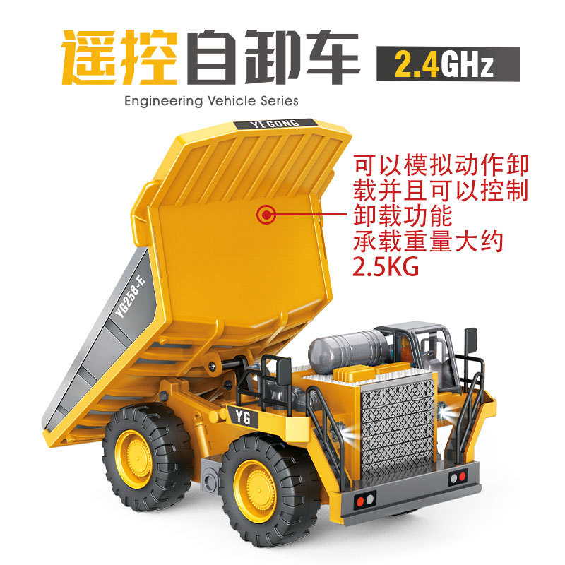 跨境1:24合金工程车遥控自卸车翻斗车仿真挖掘模型男孩儿童玩具