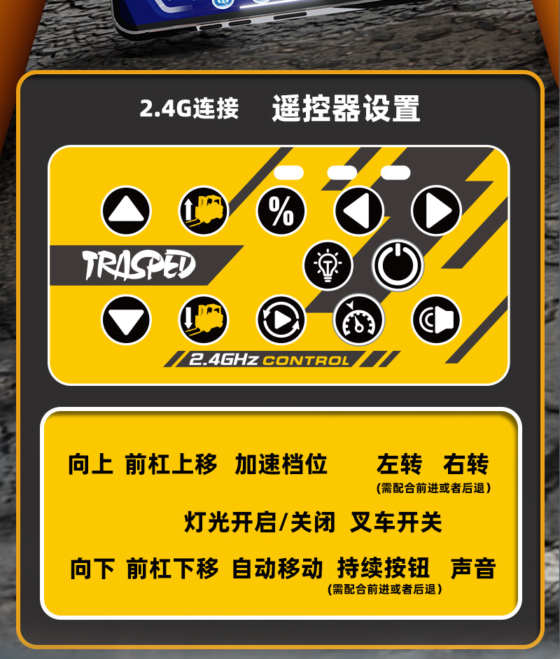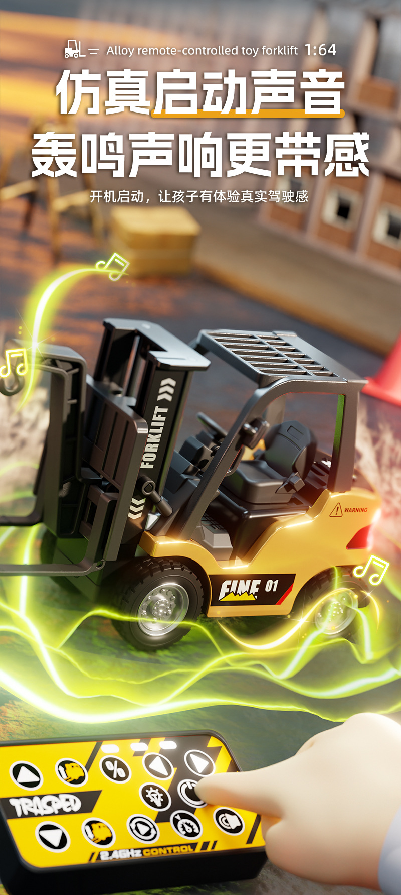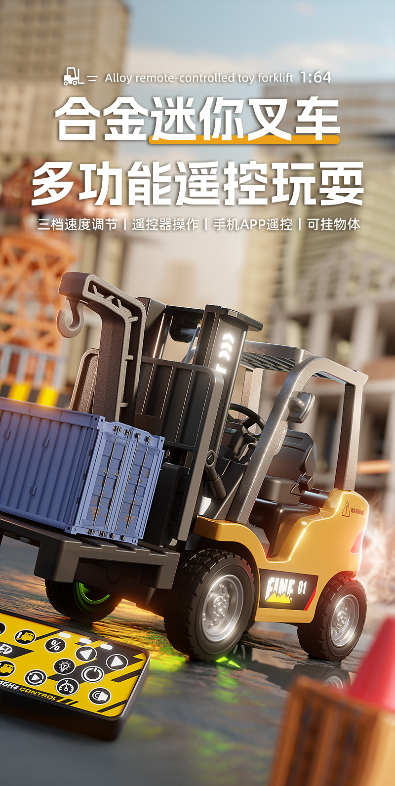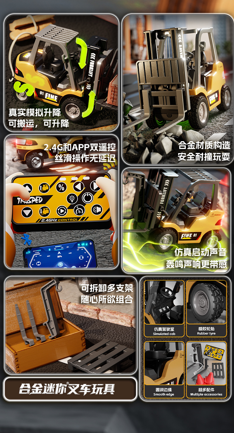 迷你桌面合金叉车遥控工程车蓝牙电动遥控车模型跨境遥控汽车