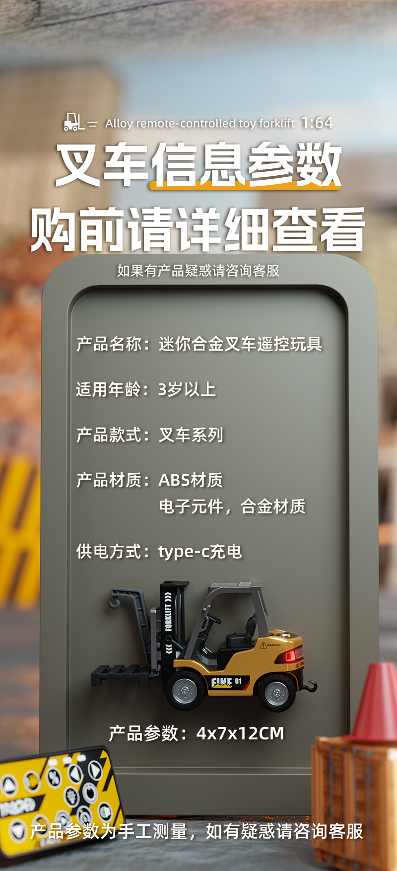 - 【中文】1:64迷你合金叉车-【送配件包+电池】