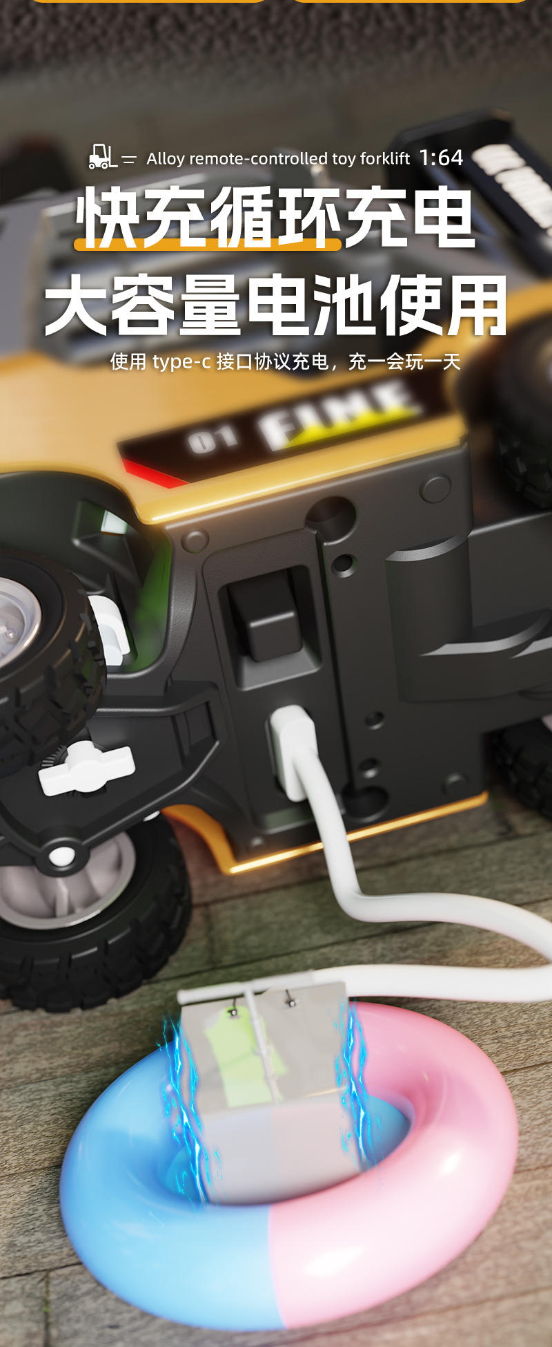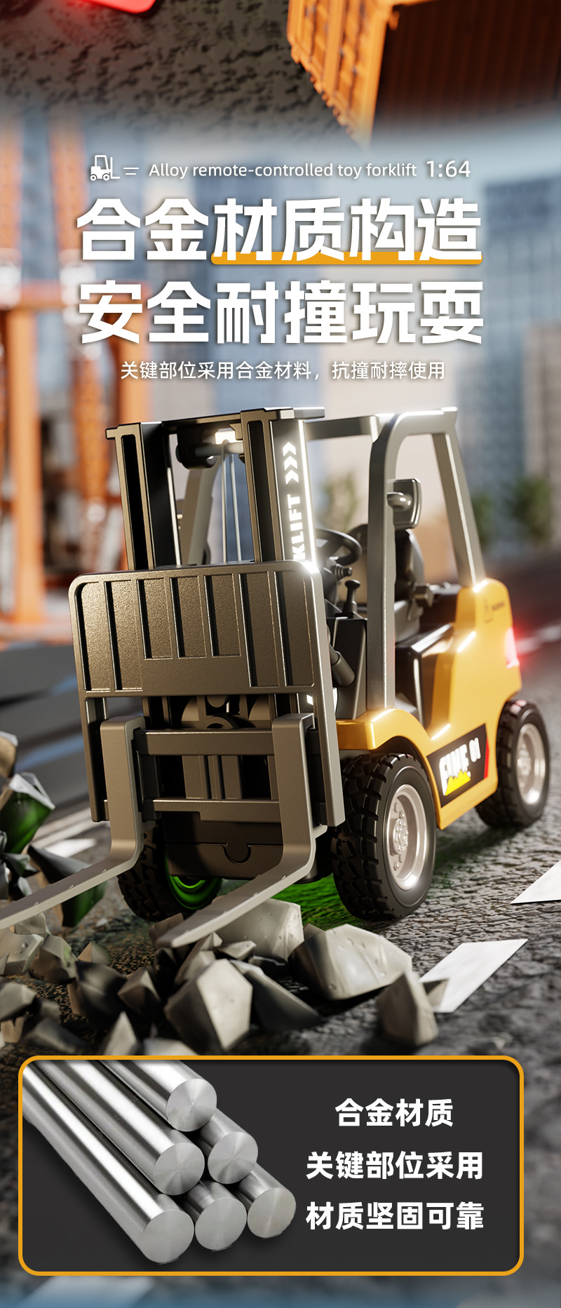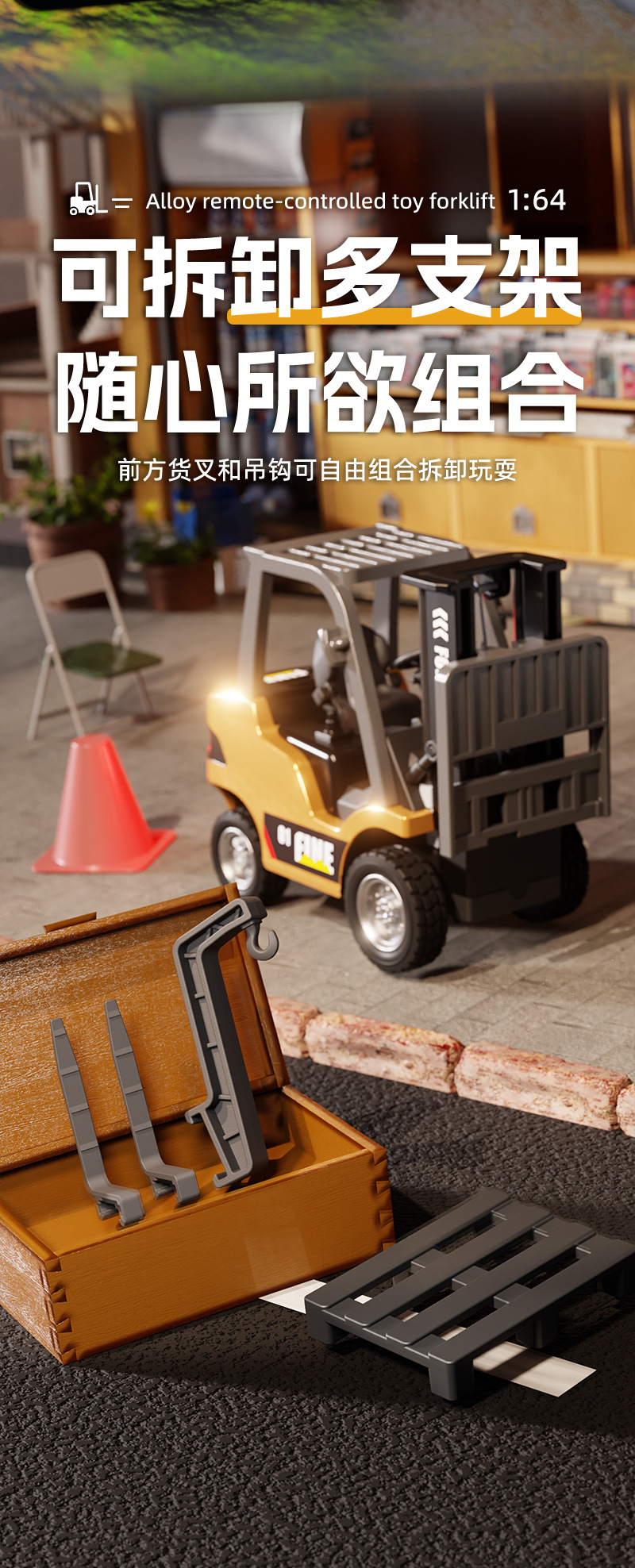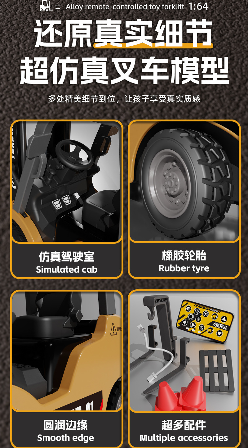 - 【英文】1:64迷你合金叉车-【送配件包+电池】