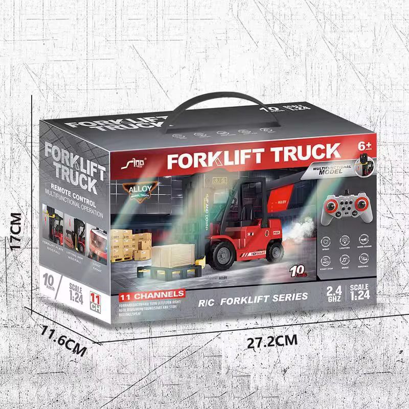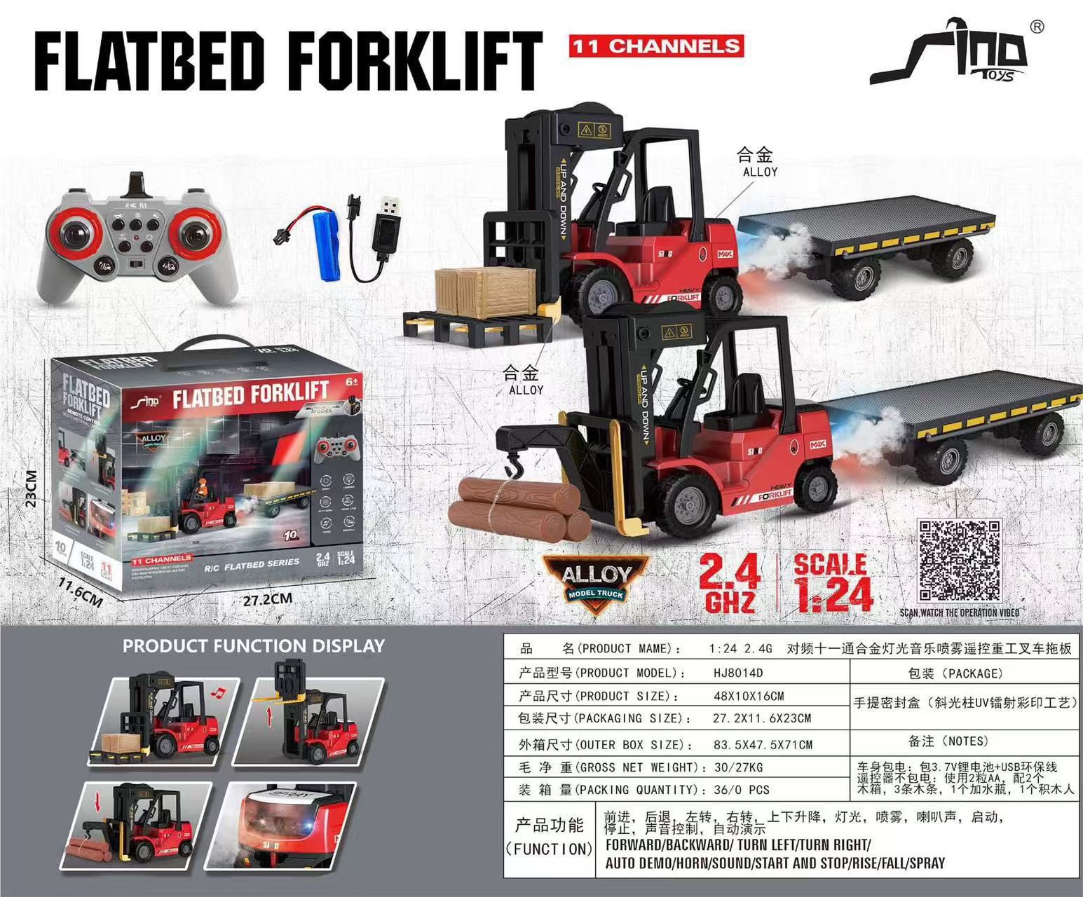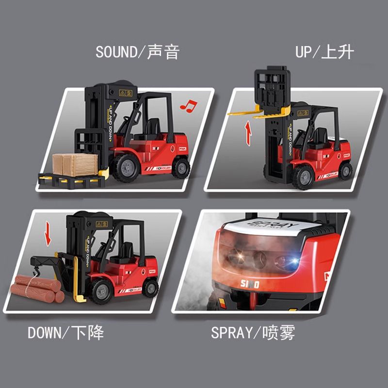 1:24 2.4G 对频十通合金灯光音乐喷雾遥控重工叉车拖板