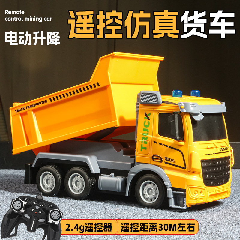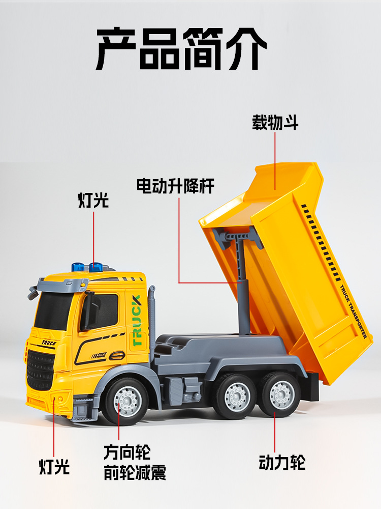 跨境仿真工程车可充电2.4G遥控车自卸车运输车模型大号儿童玩具车