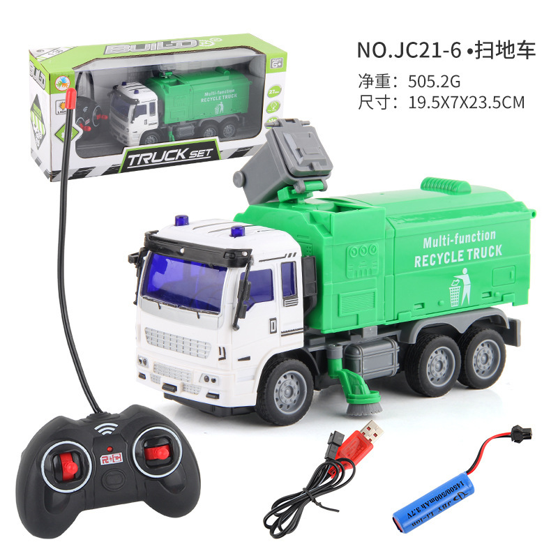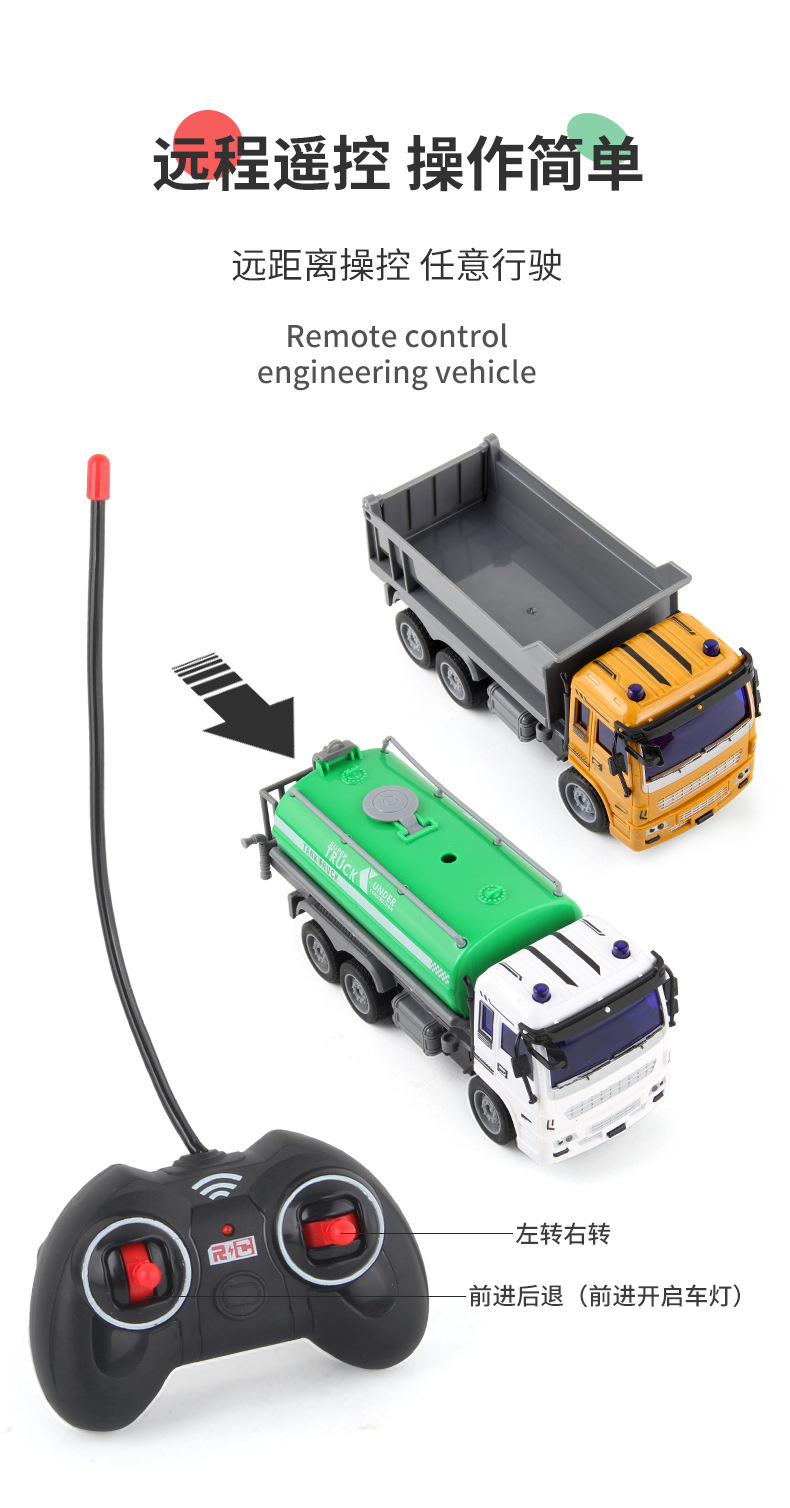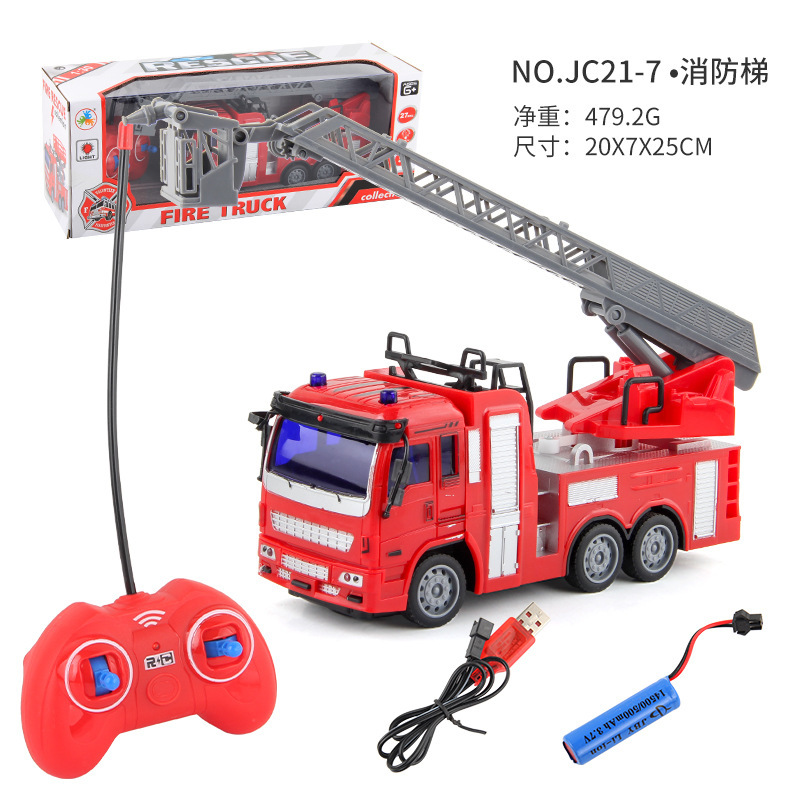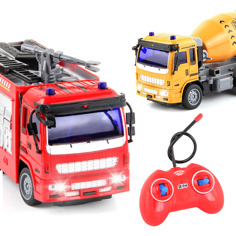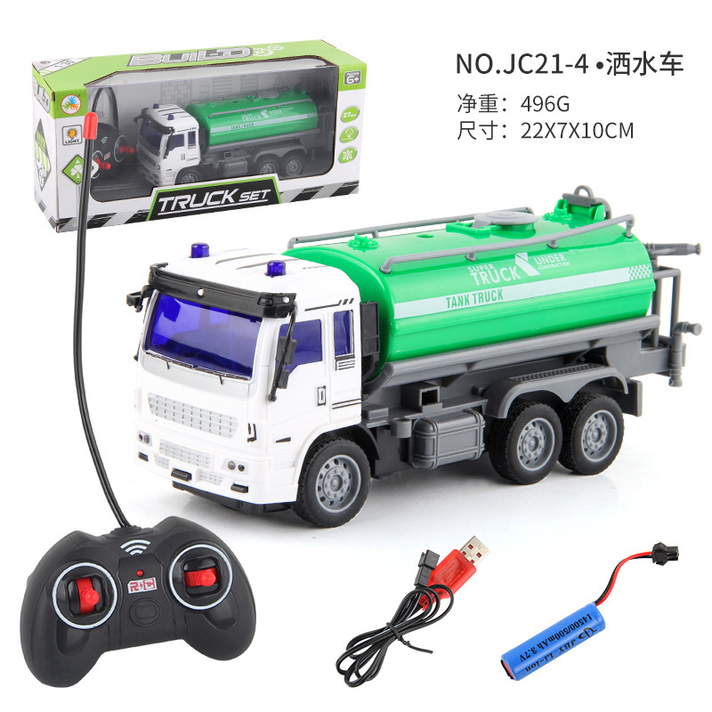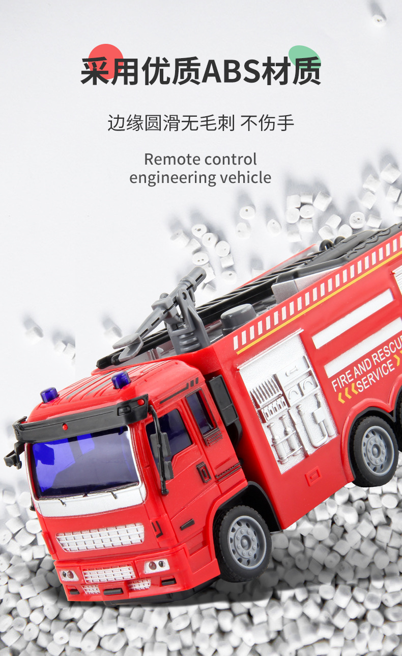 儿童新款1:30遥控工程车消防环卫车USB充电四通电动遥控车玩具
