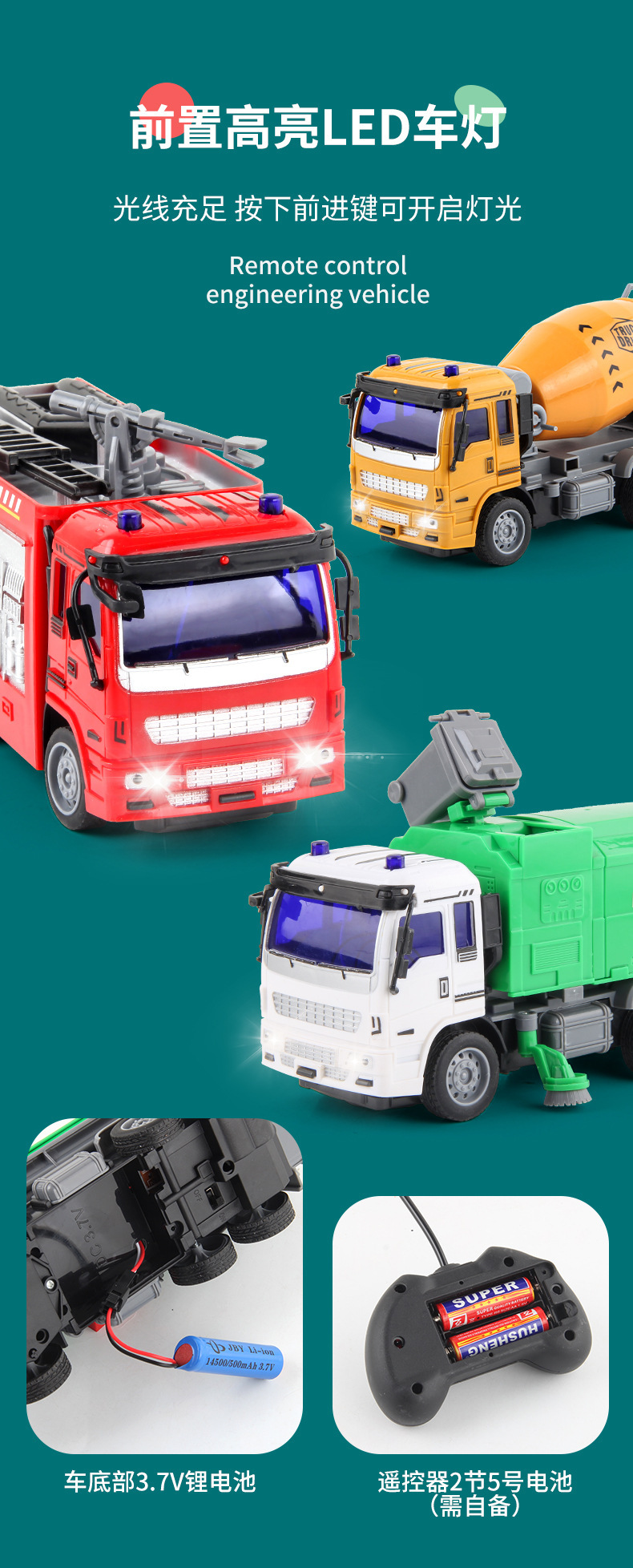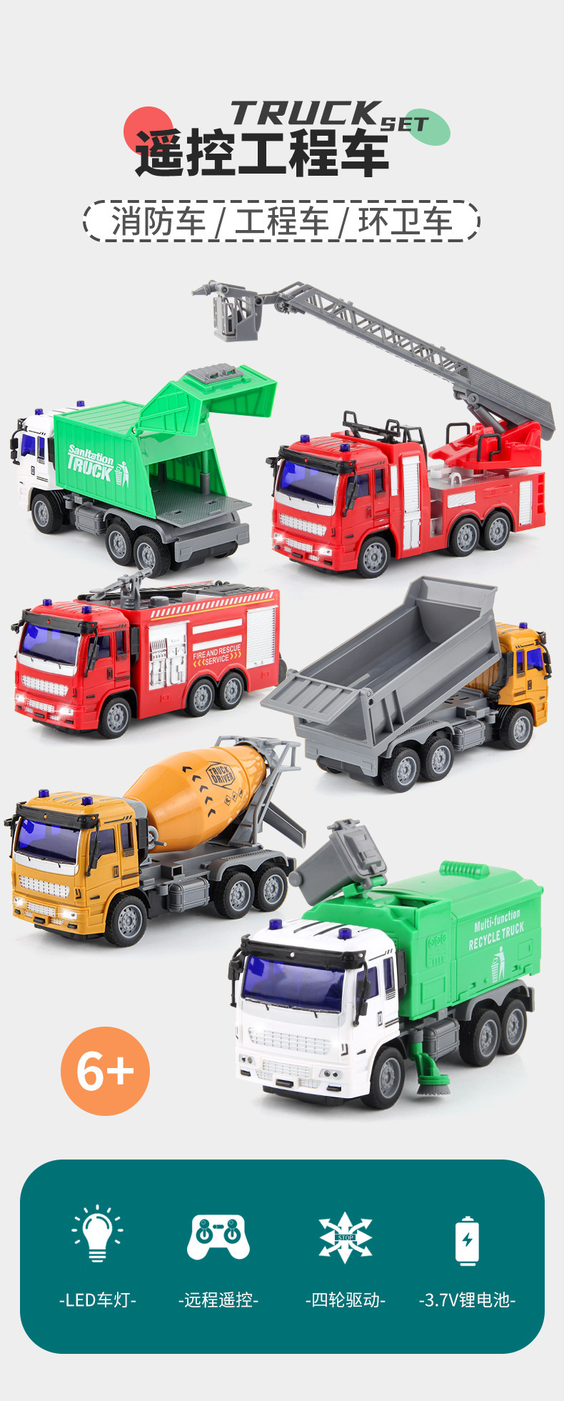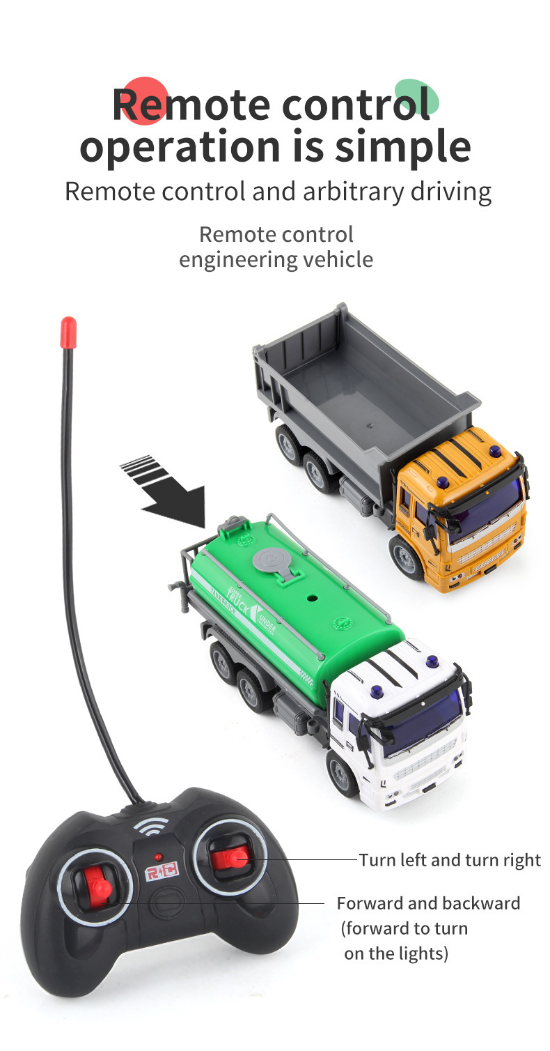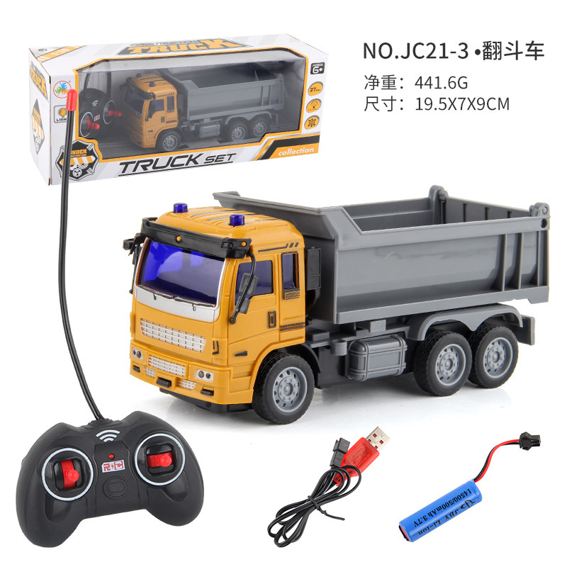 儿童新款1:30遥控工程车消防环卫车USB充电四通电动遥控车玩具