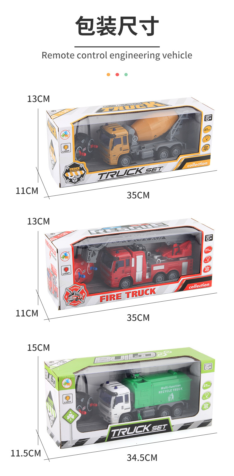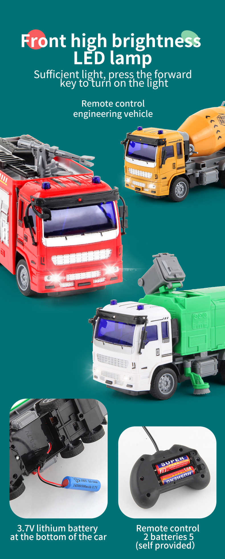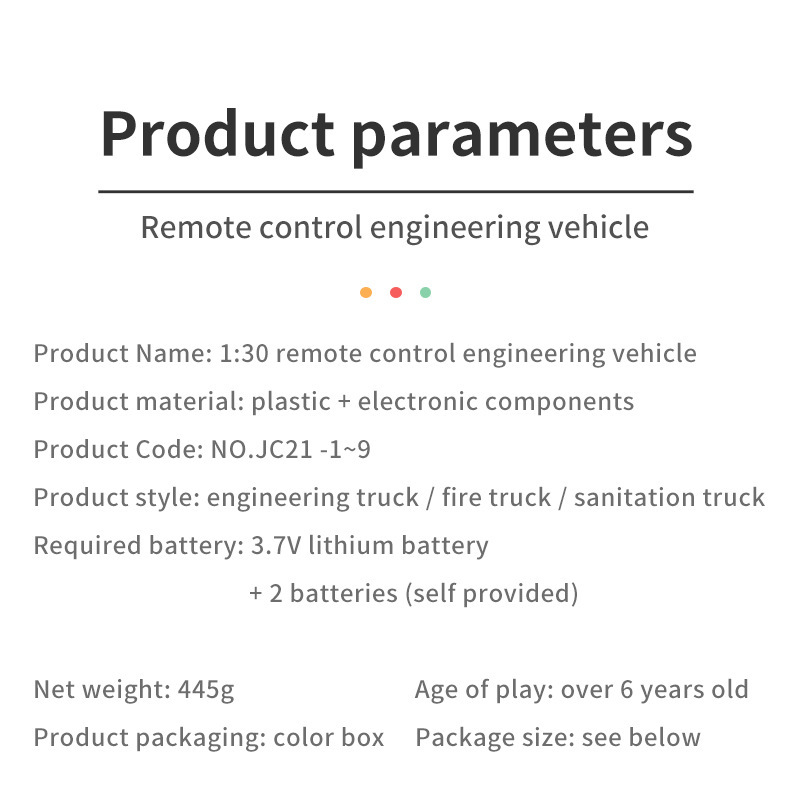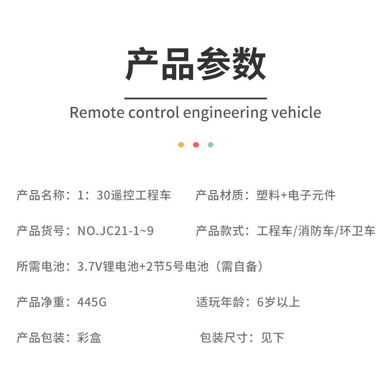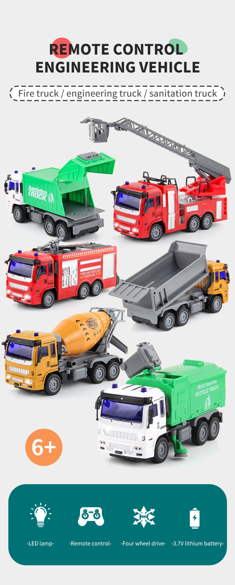 儿童新款1:30遥控工程车消防环卫车USB充电四通电动遥控车玩具