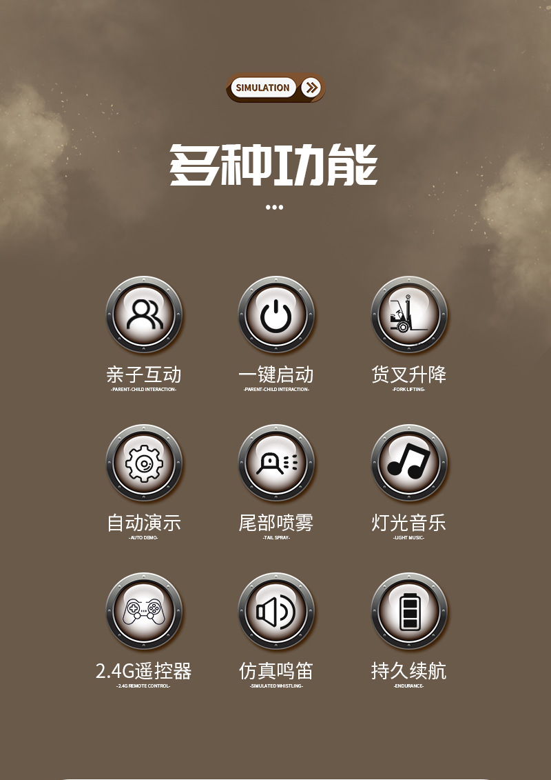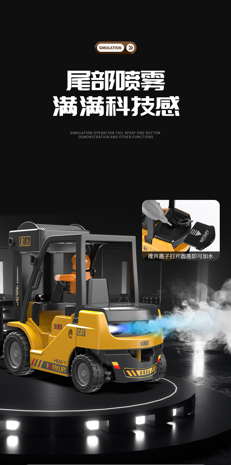 跨境2.4G遥控叉车电动仿真吊车声光喷雾工程车模型男孩玩具车