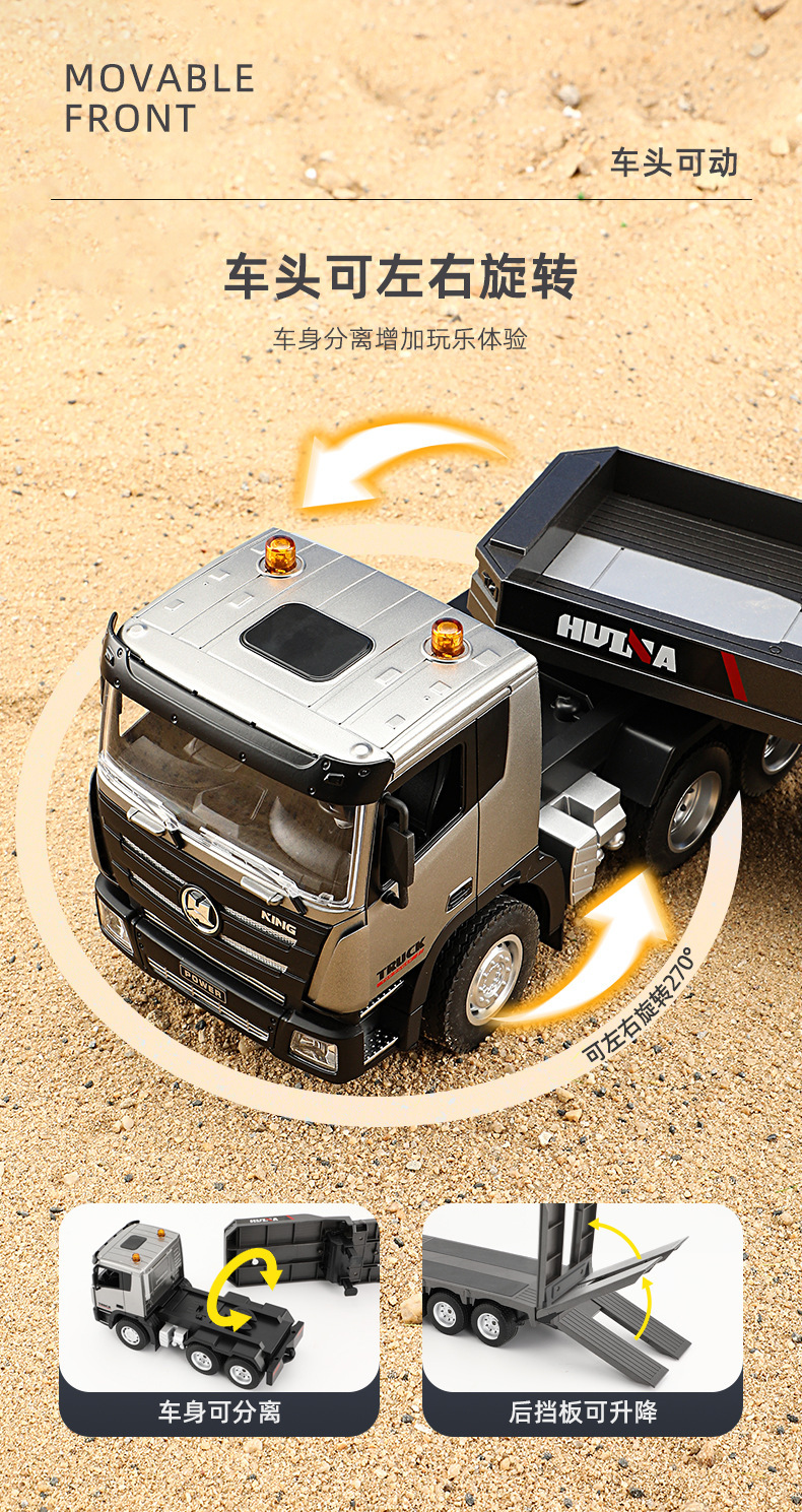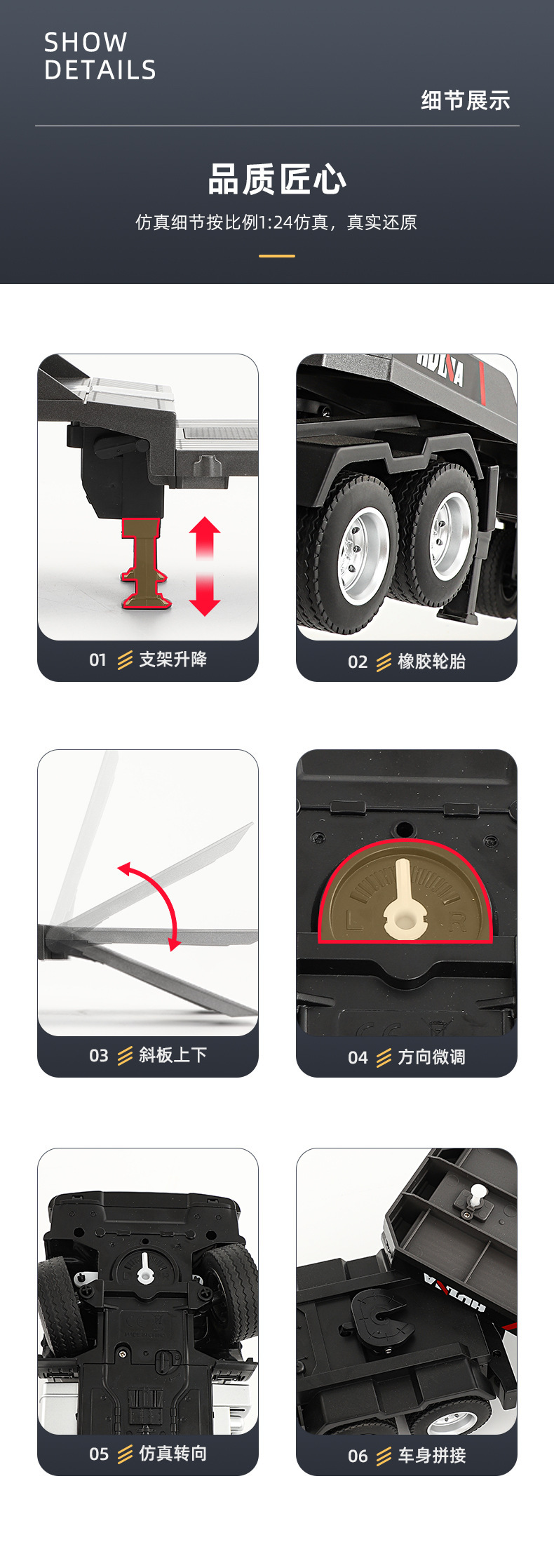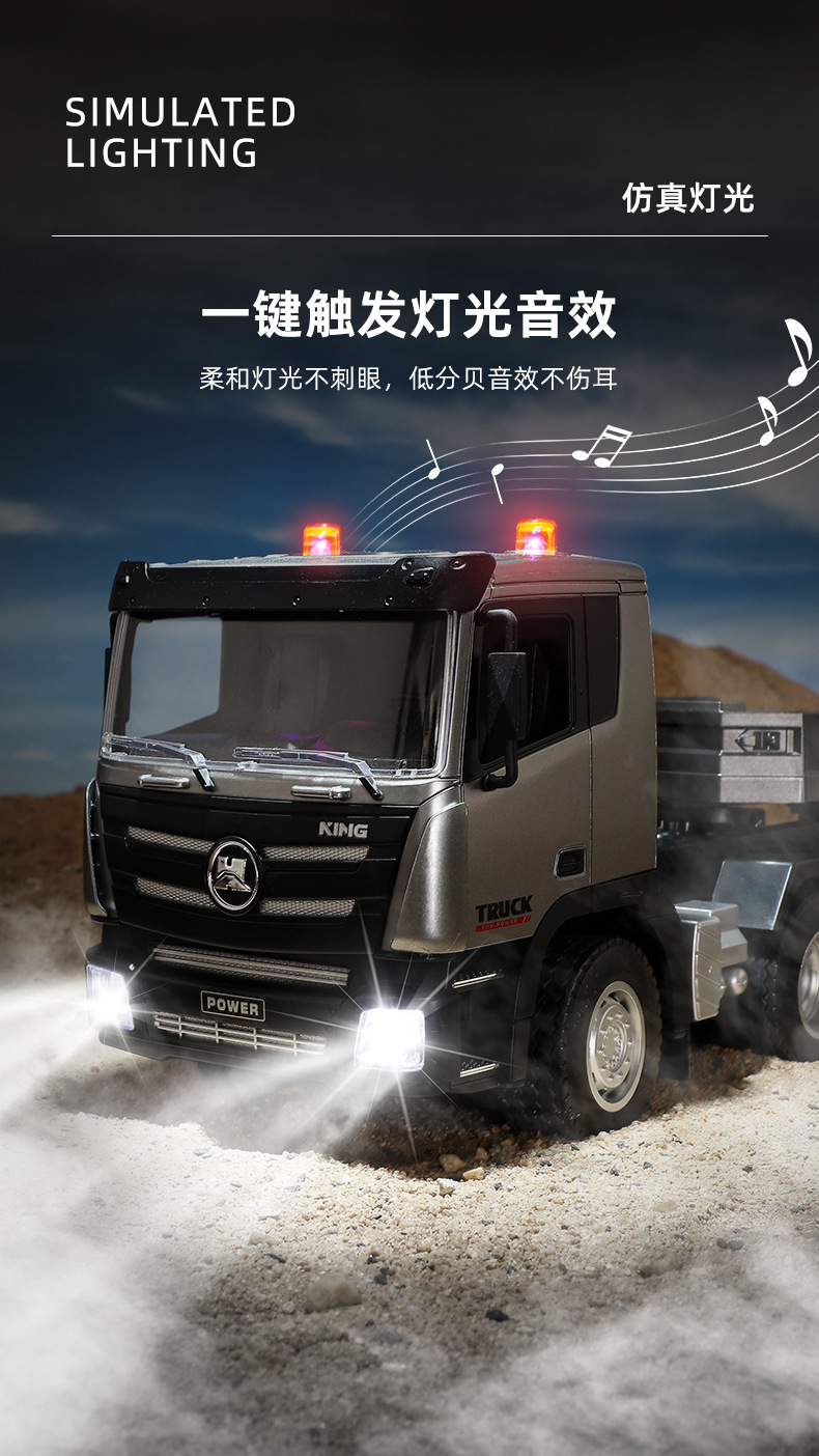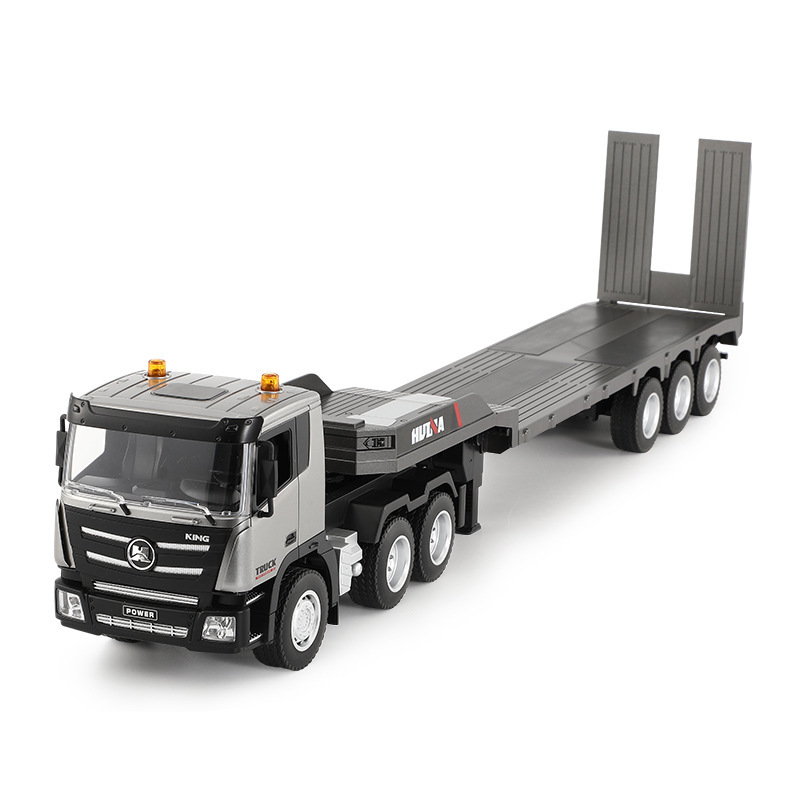 汇纳合金9通遥控半挂平板工程车仿真灯光音效1:24运输挖掘机玩具