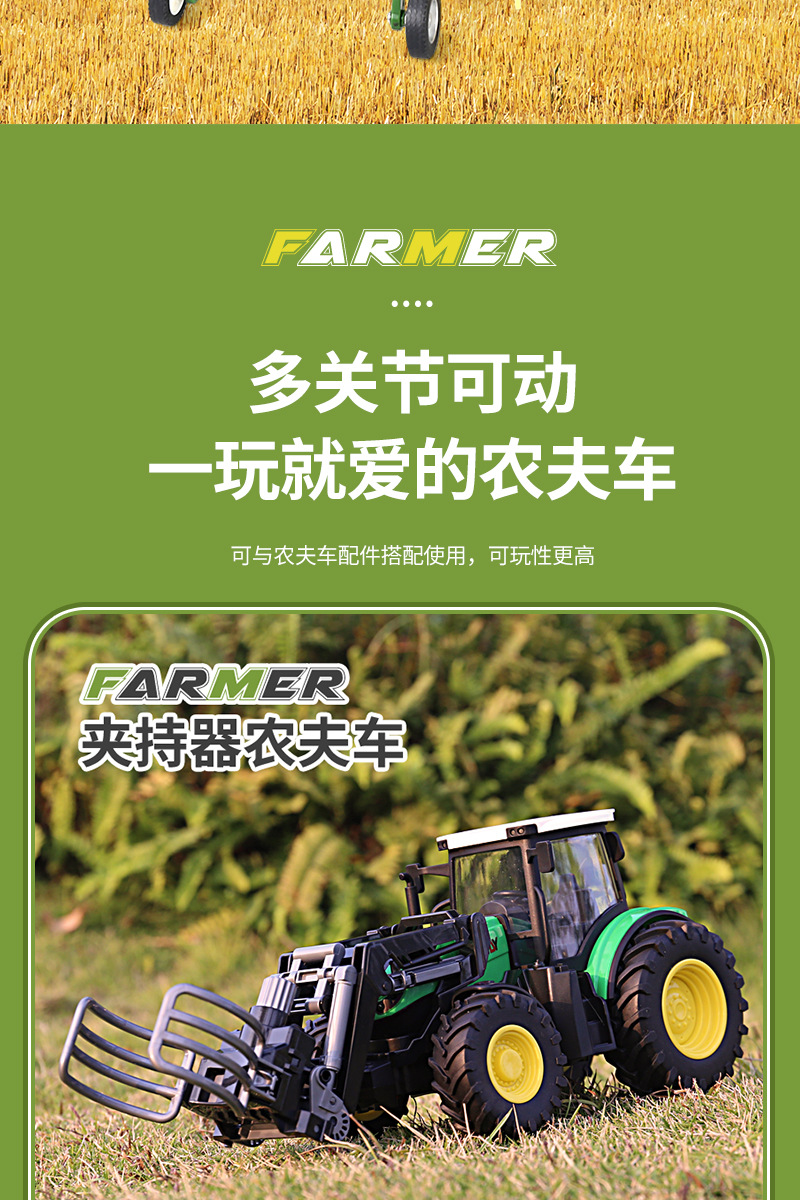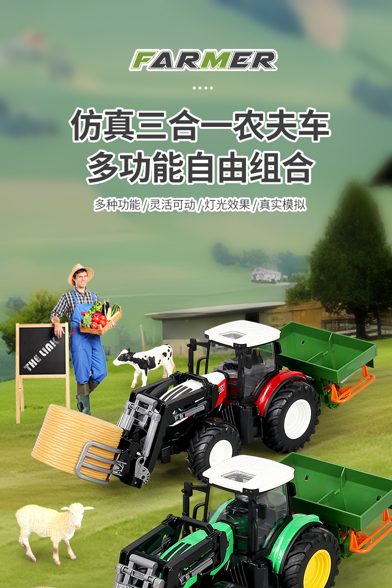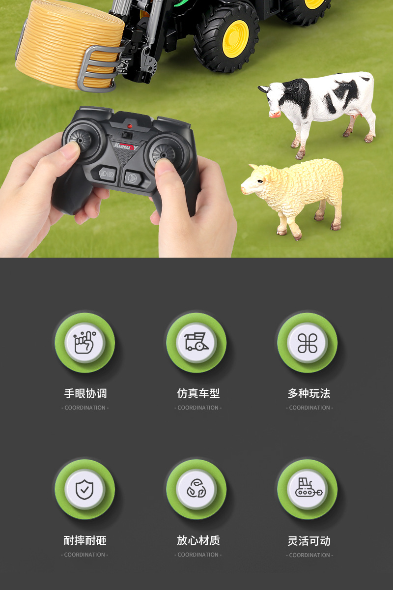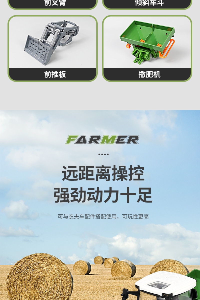 跨境热销遥控农夫车仿真农场工程车电动遥控农业车儿童男孩玩具