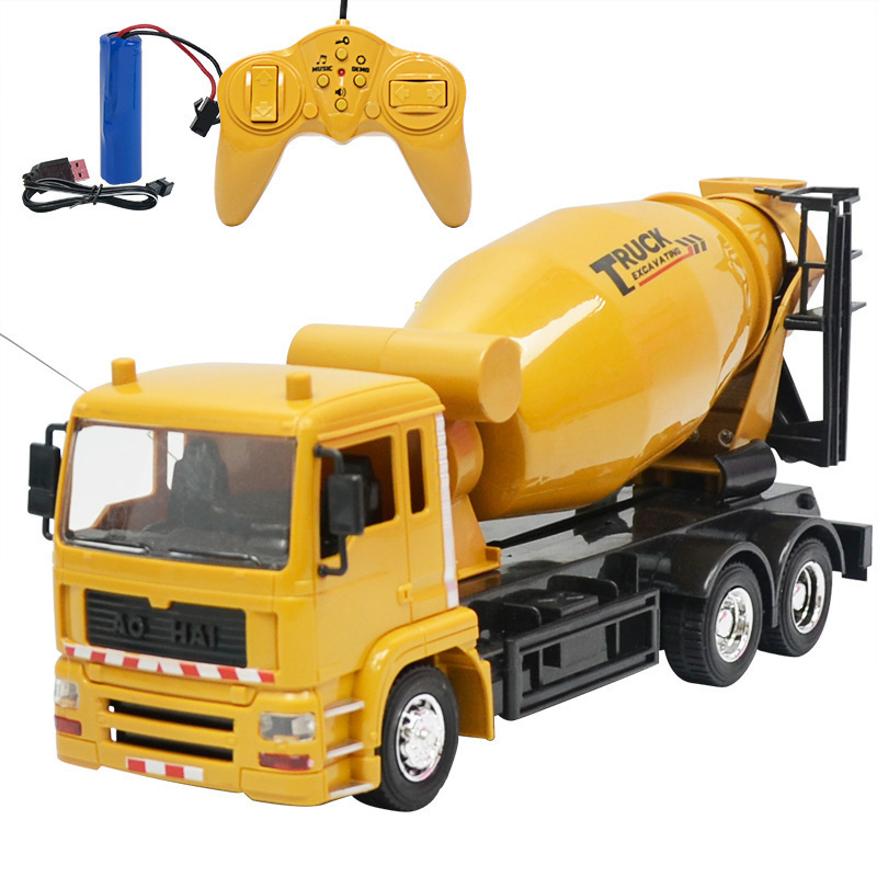 仿真遥控搅拌车水泥车模型电动灯光音乐1:24儿童玩具车工程车