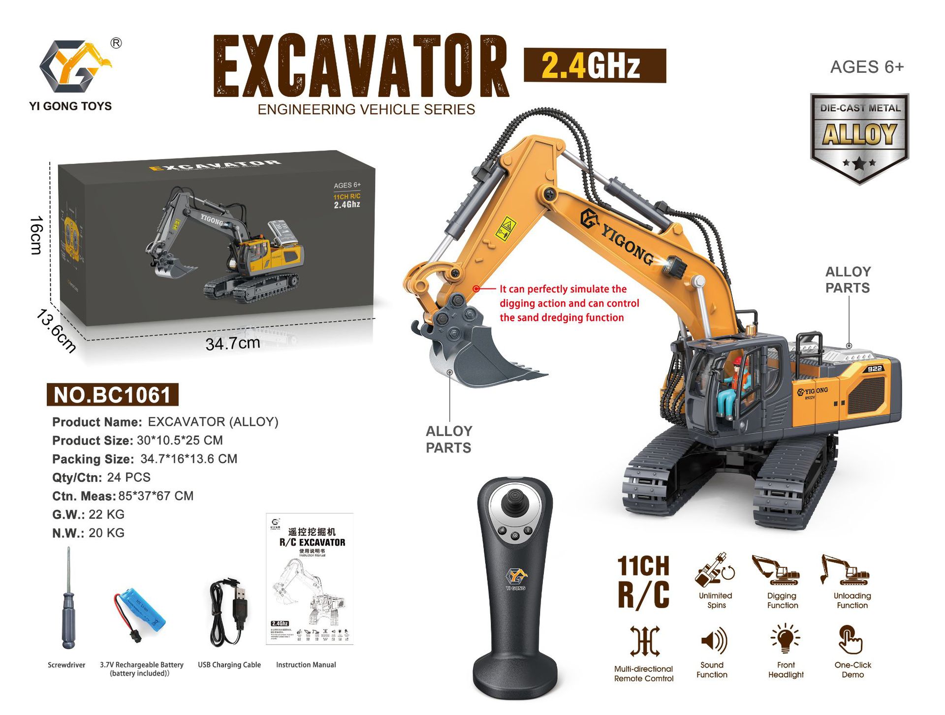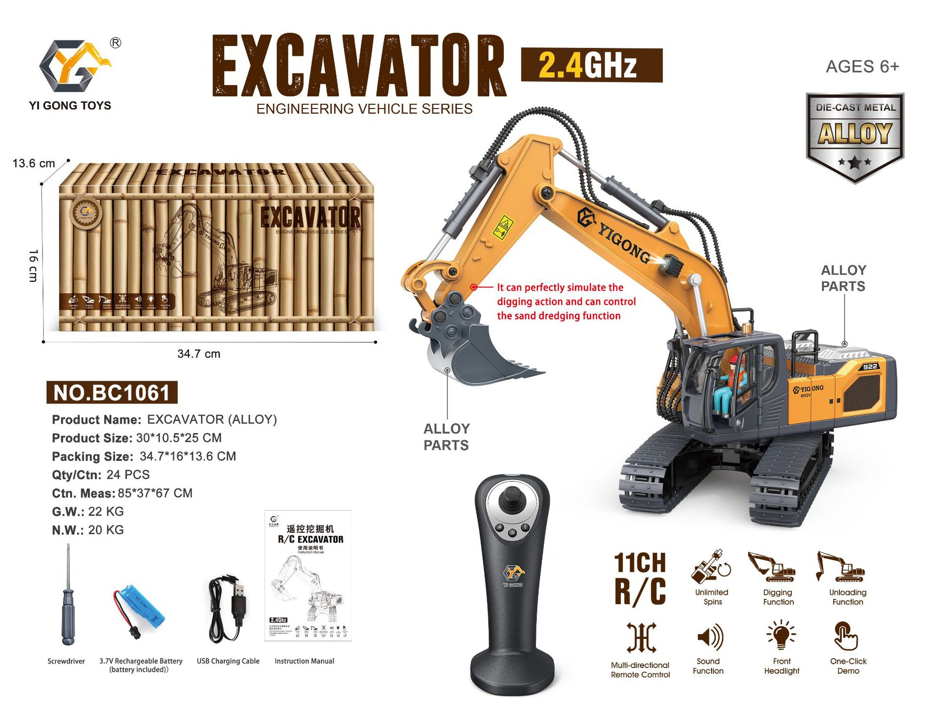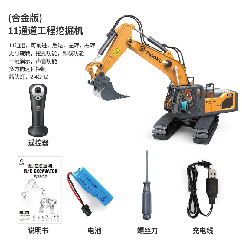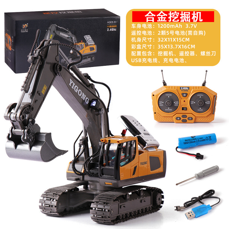 遥控挖掘机合金遥控车挖土机工程车玩具可充电儿童玩具车