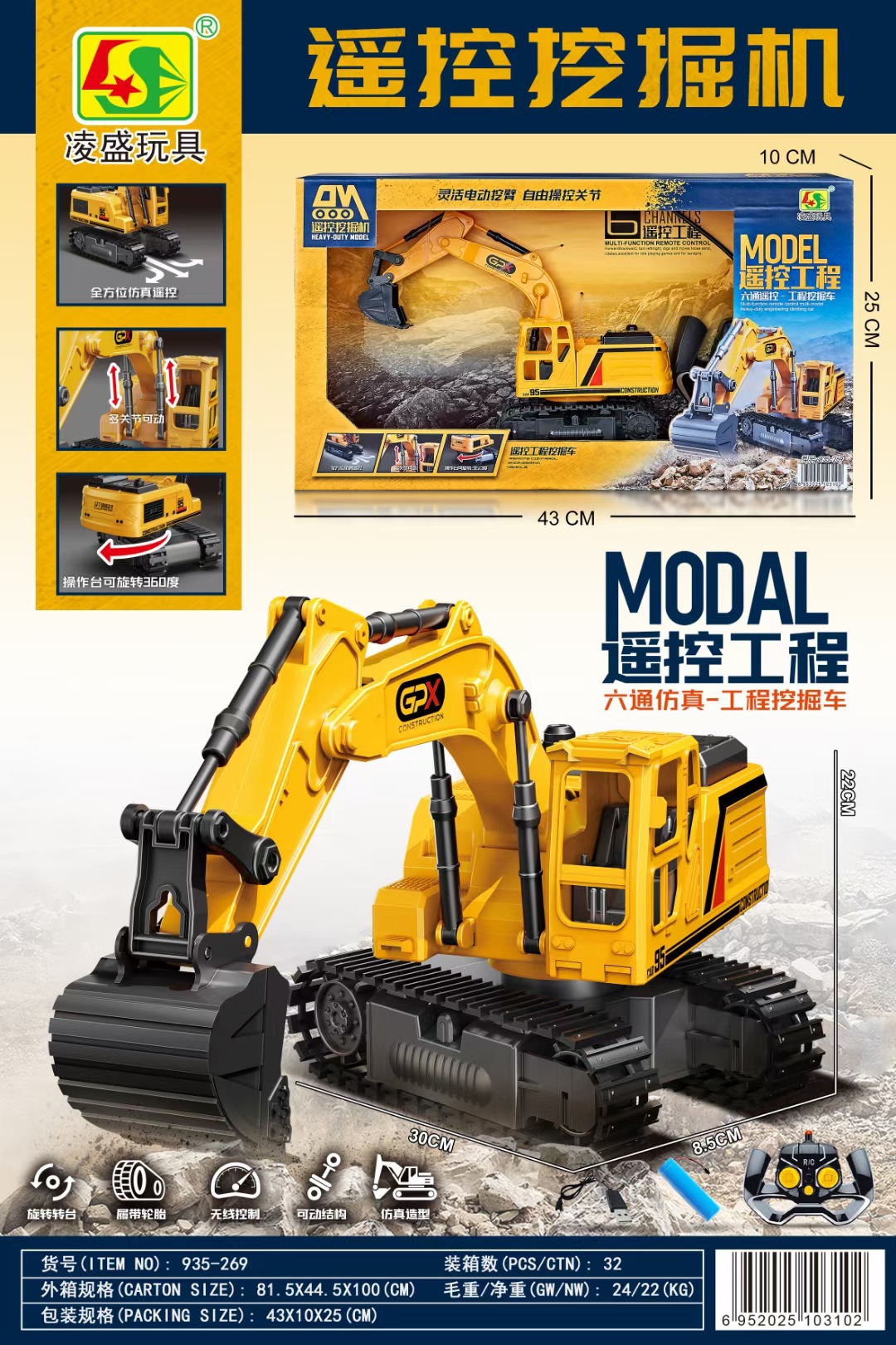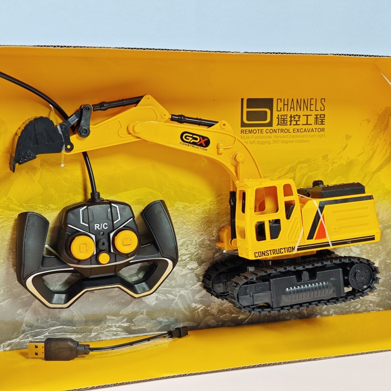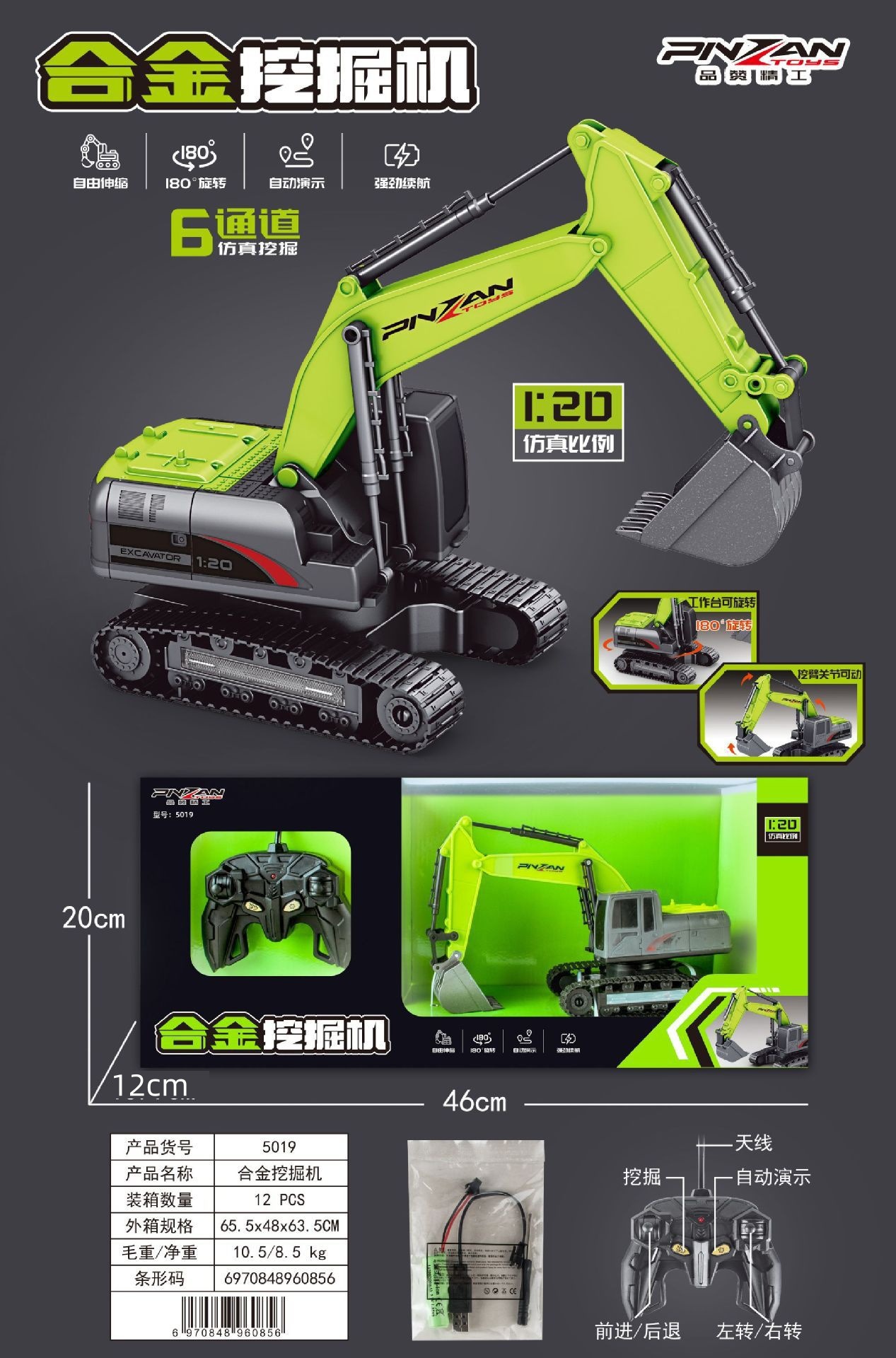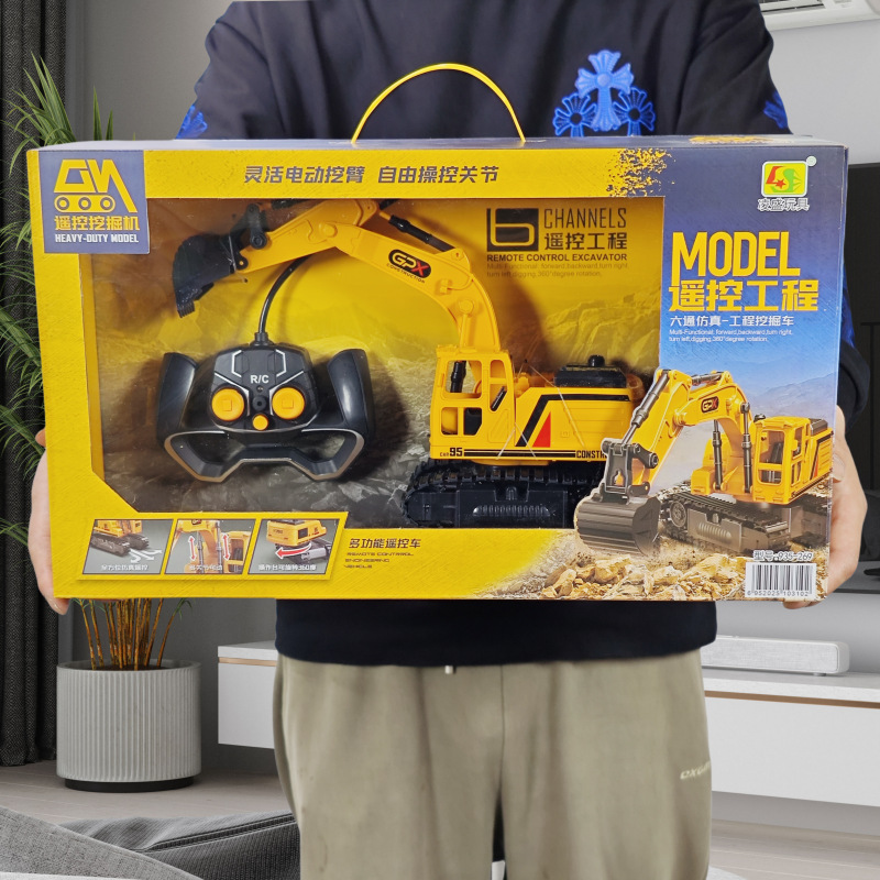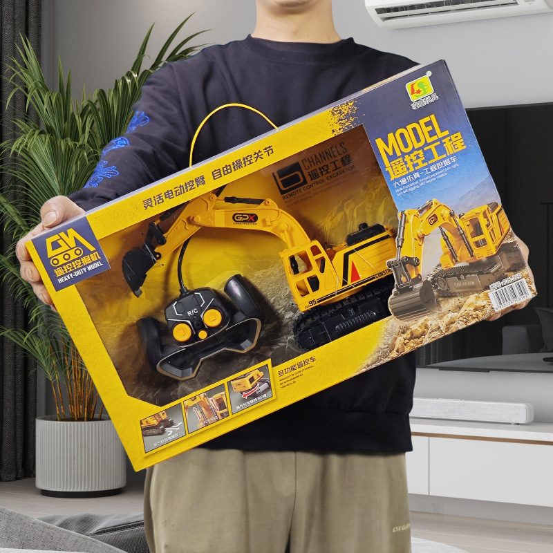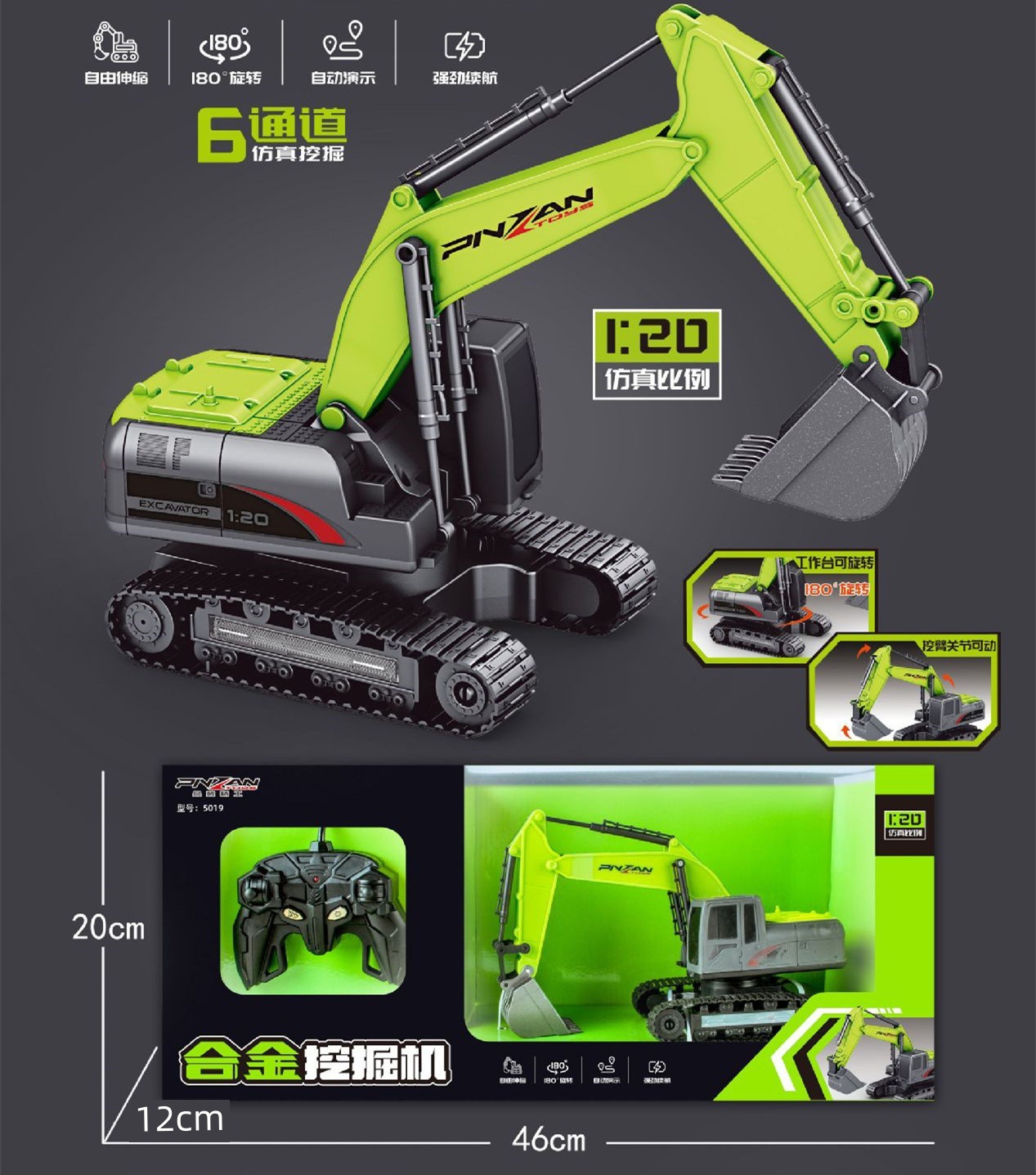 儿童1:20大号遥控挖掘机6通挖土机工程车模型玩具男孩