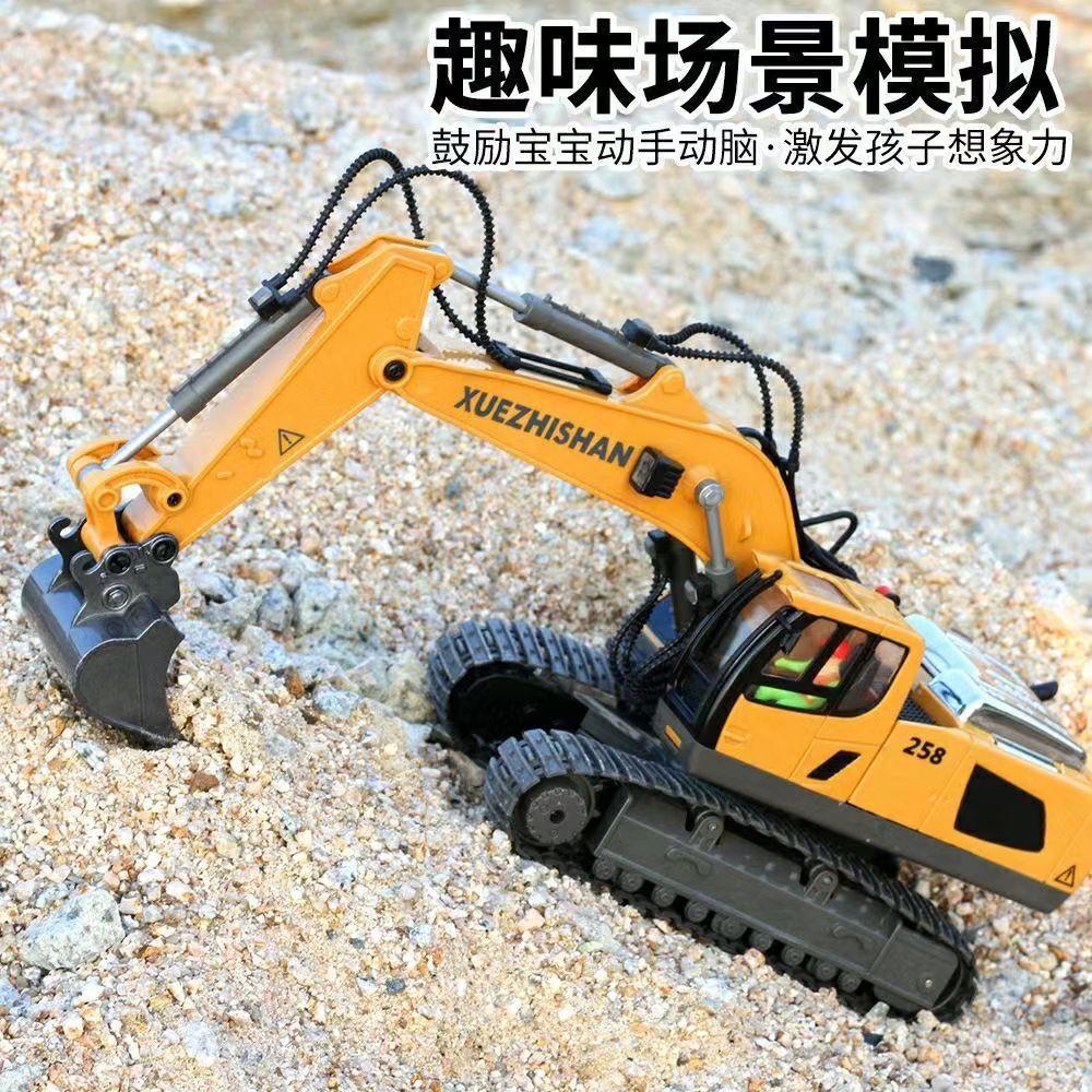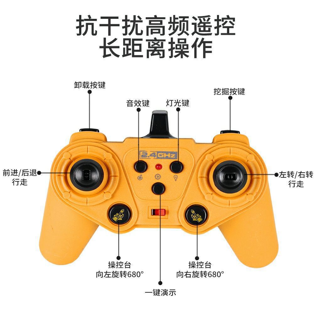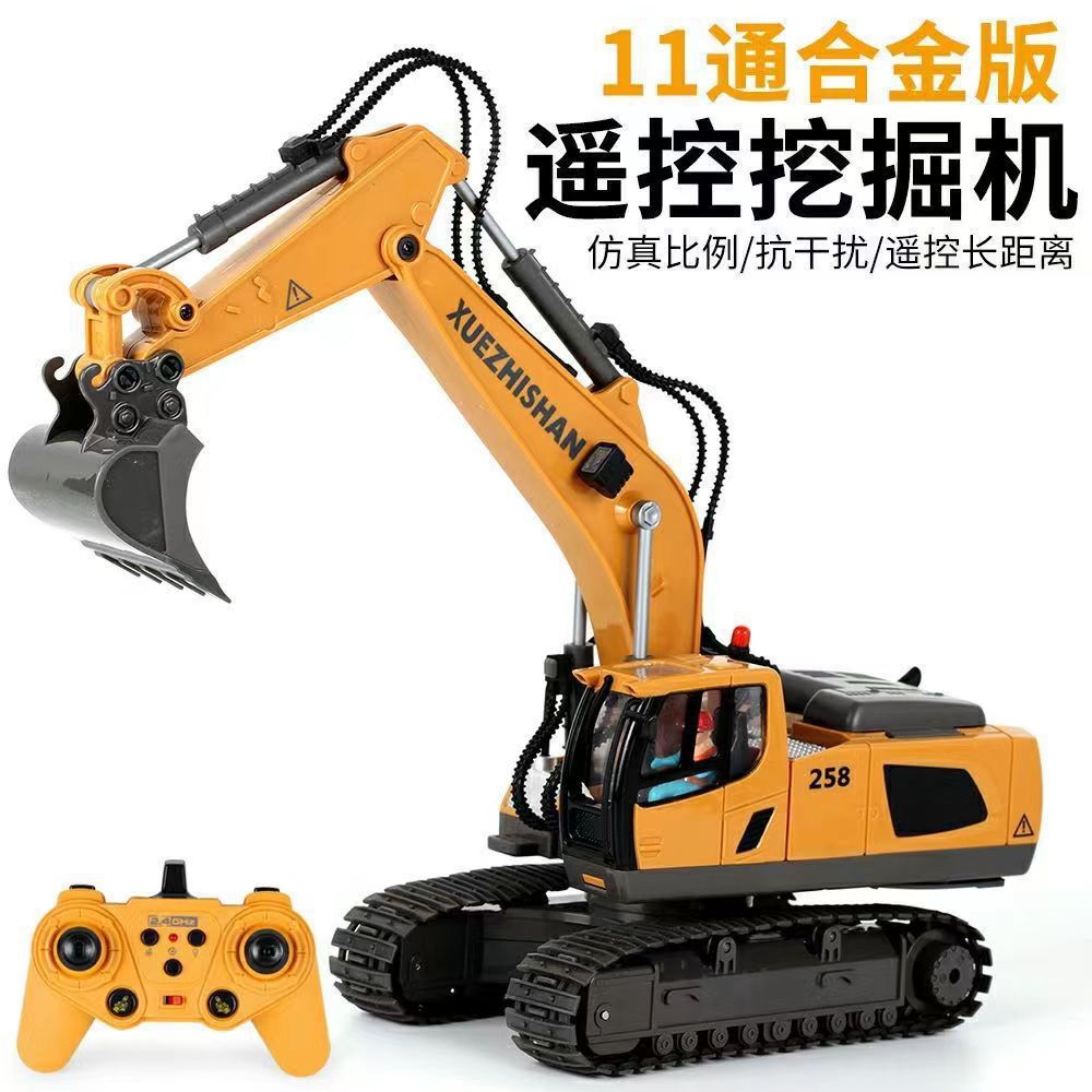 跨境11通道大号2.4G合金遥控挖掘机自卸推土翻斗工程车玩具中英文