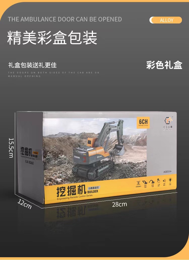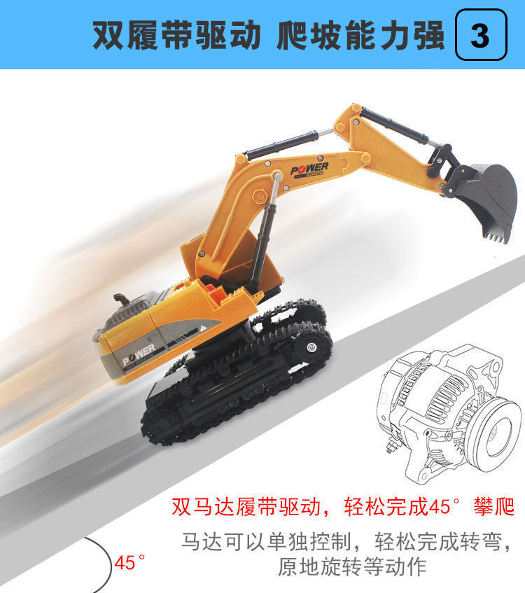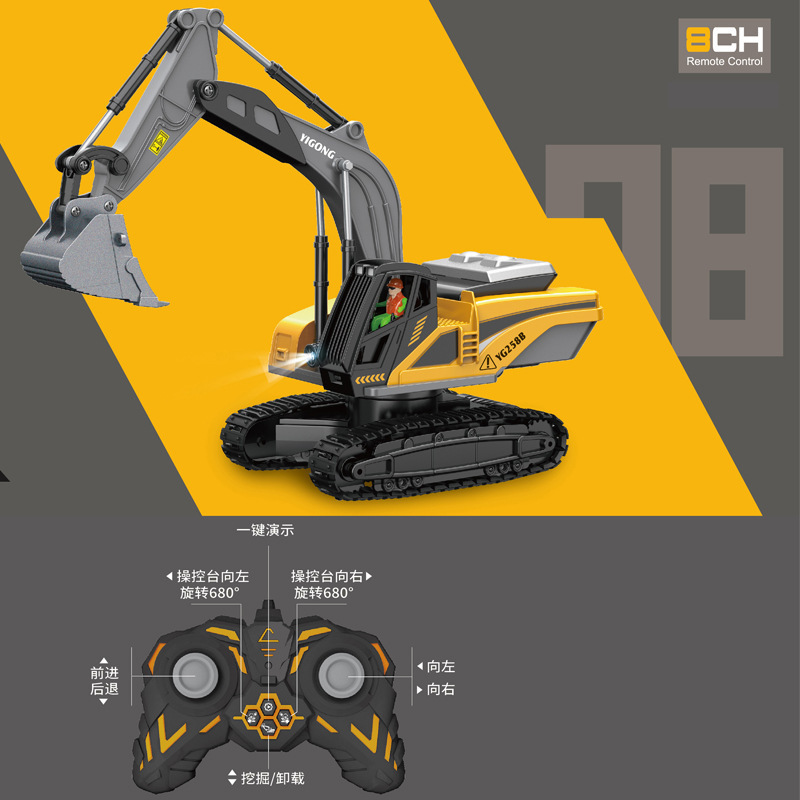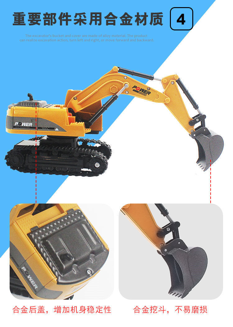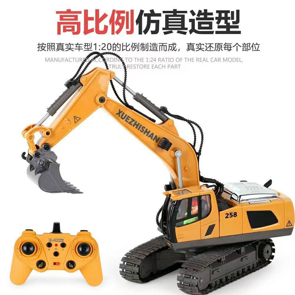 跨境11通道大号2.4G合金遥控挖掘机自卸推土翻斗工程车玩具中英文