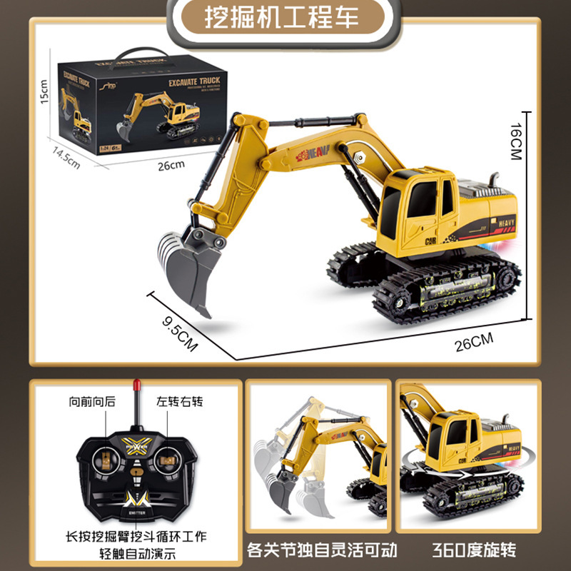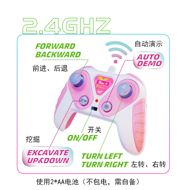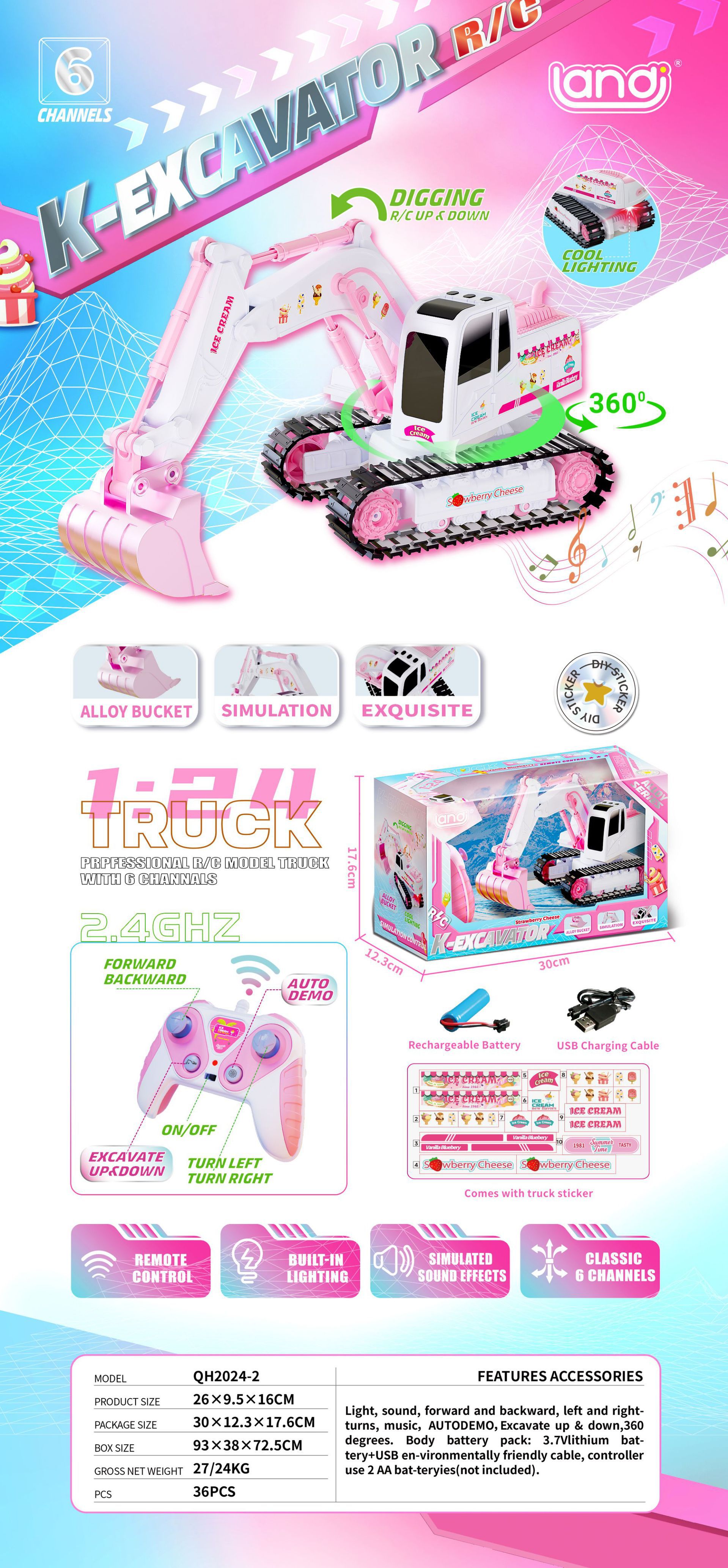 2024-2合金挖掘机6通遥控粉红色2.4G