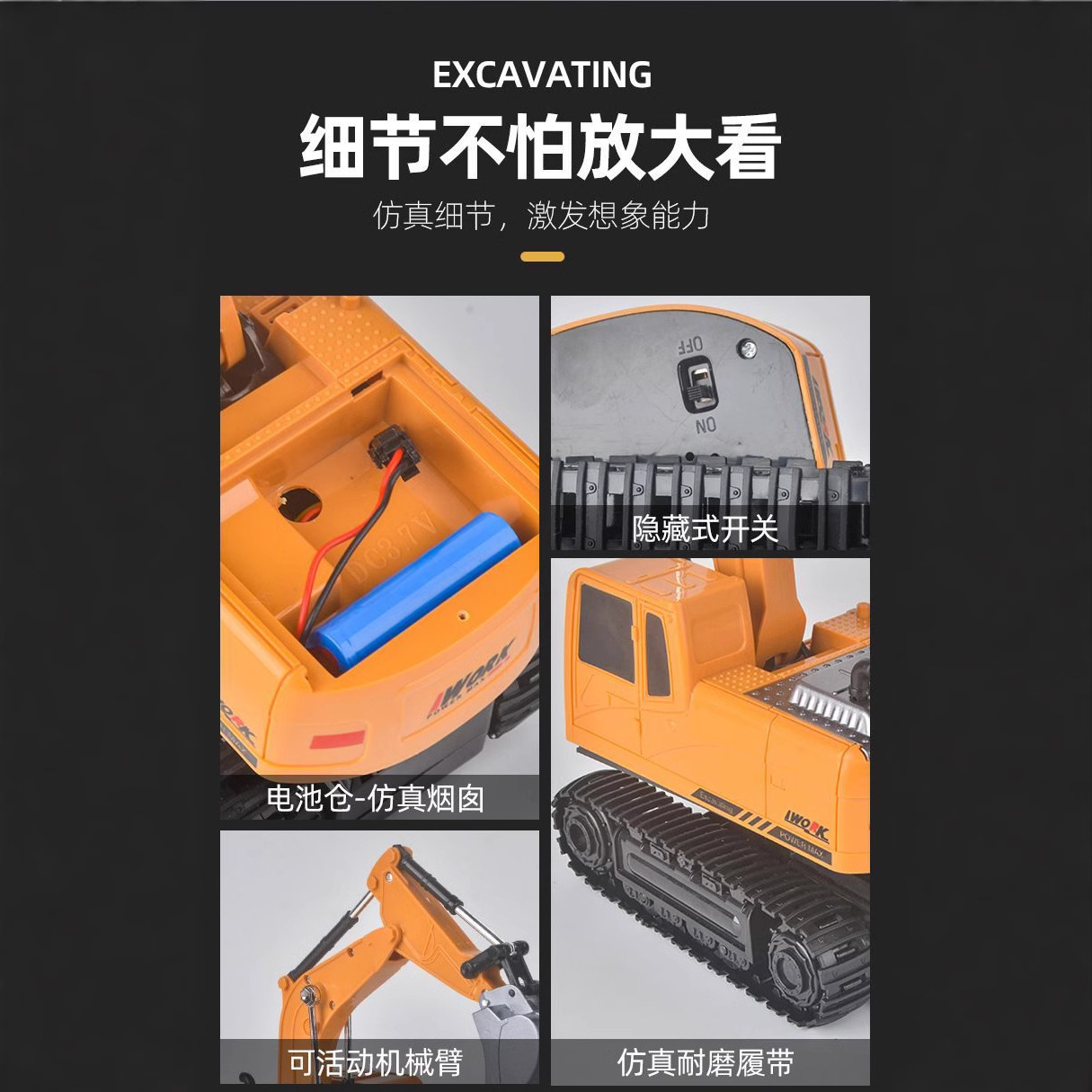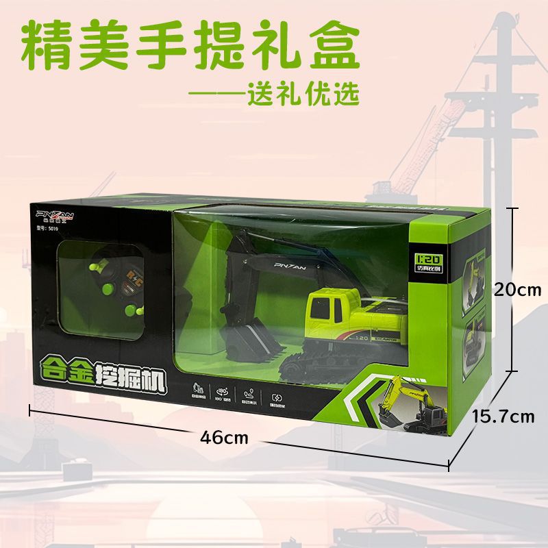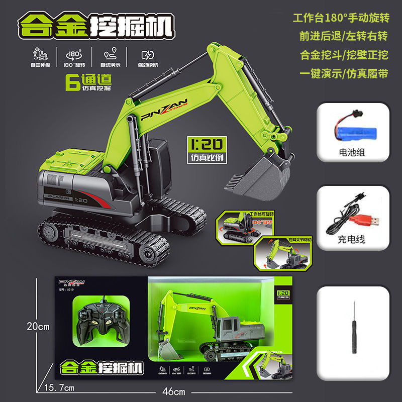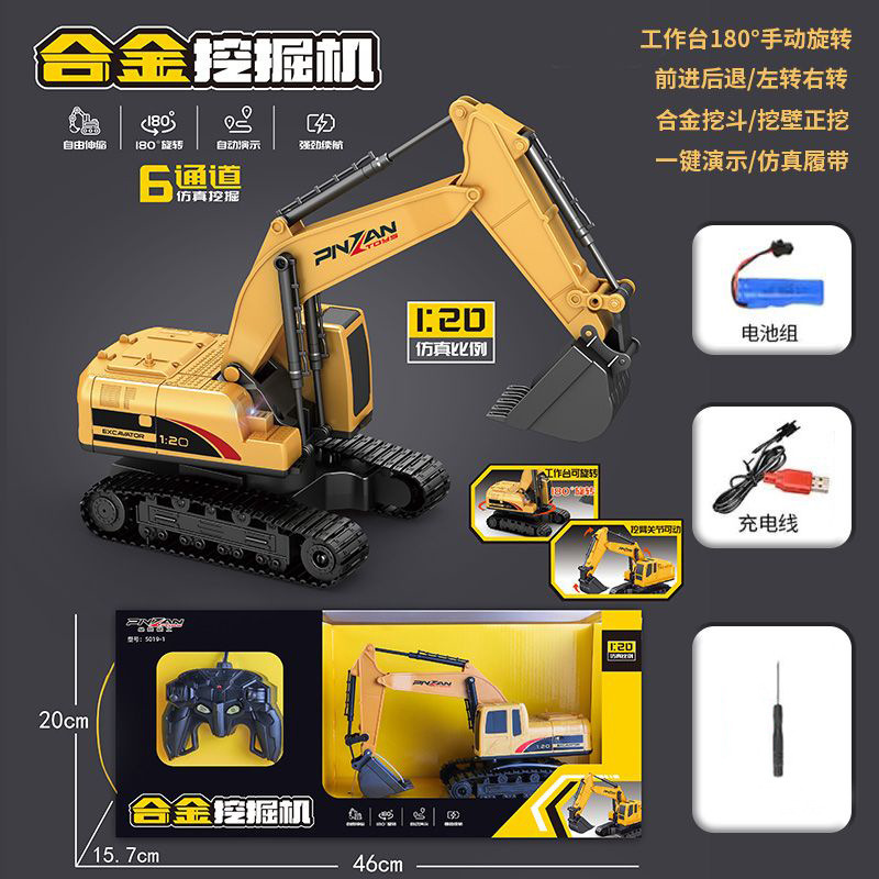 儿童无线遥控挖掘机合金玩具6通道仿真1:20 大礼盒挖土机男孩礼物