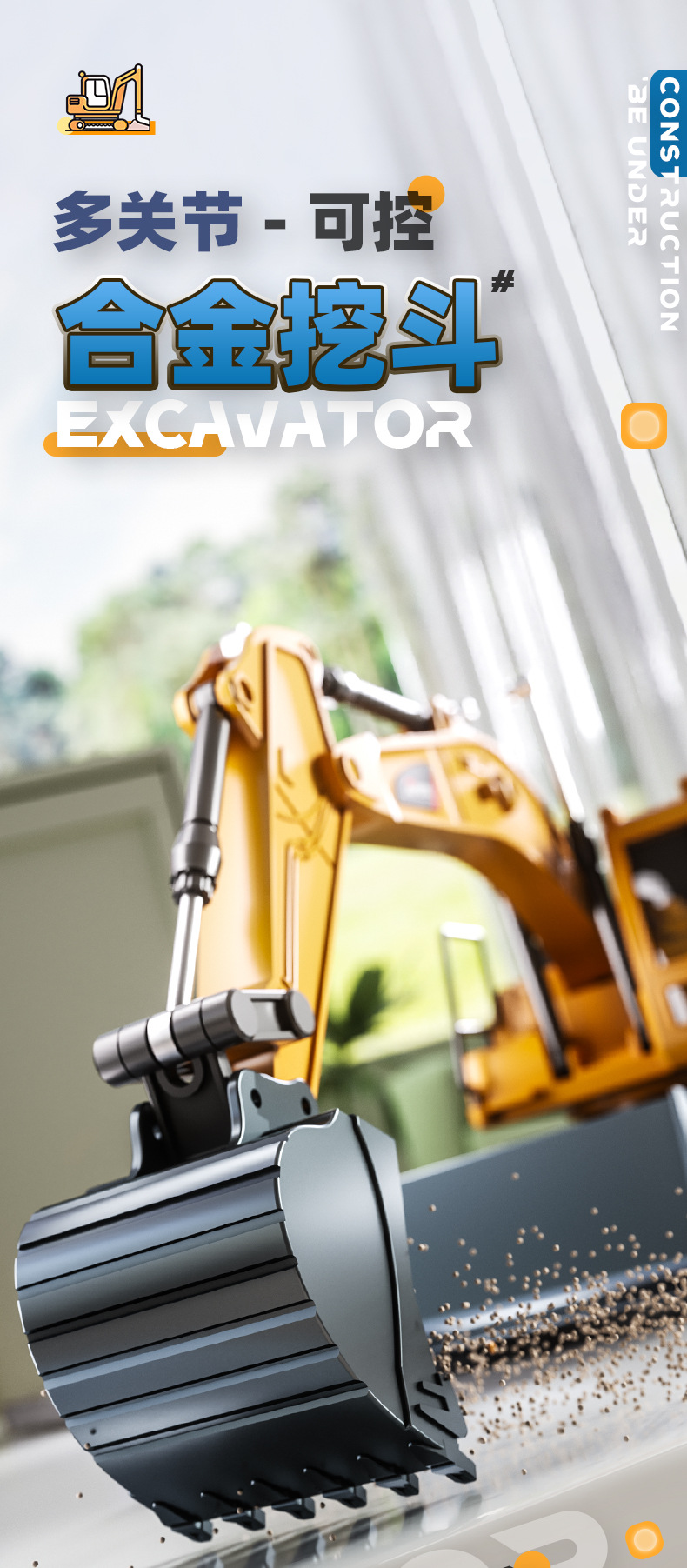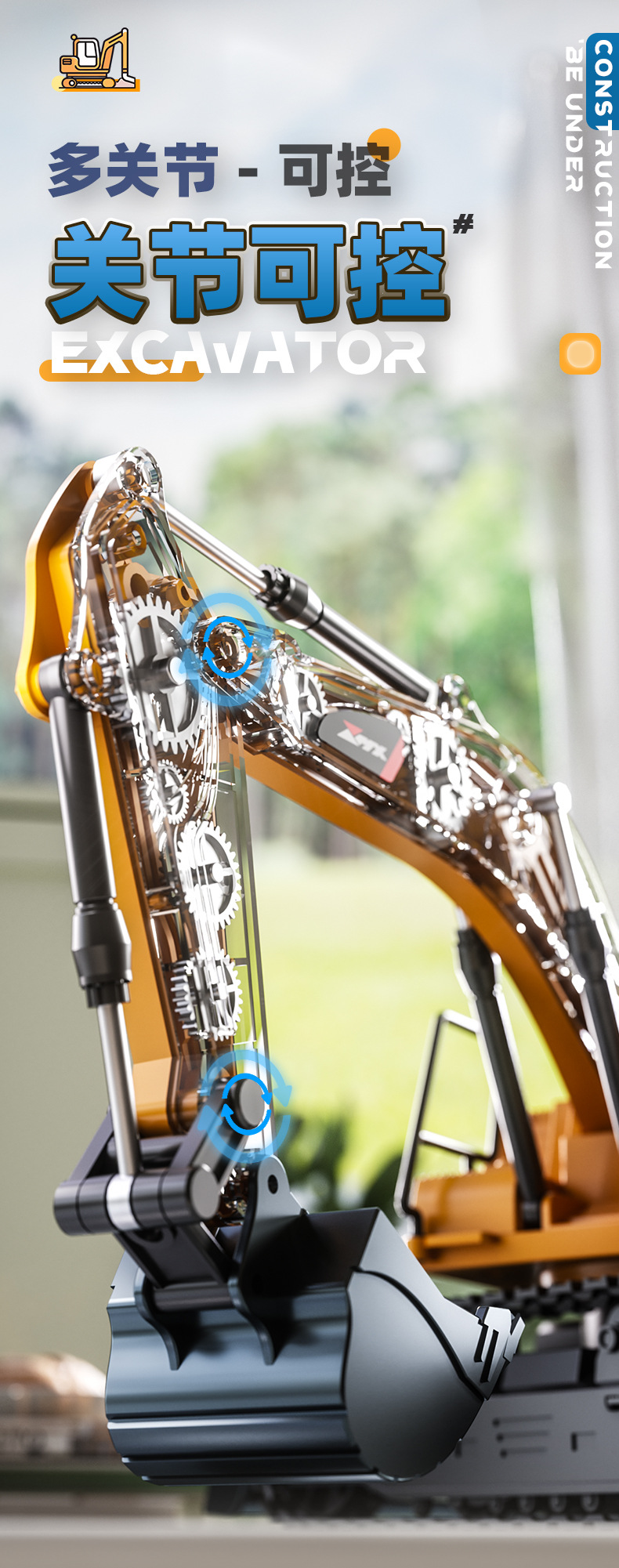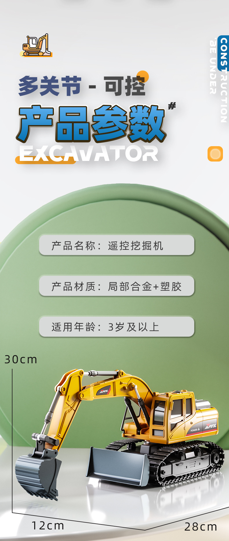 合金遥控挖掘机【11通】黄色【邮购盒】