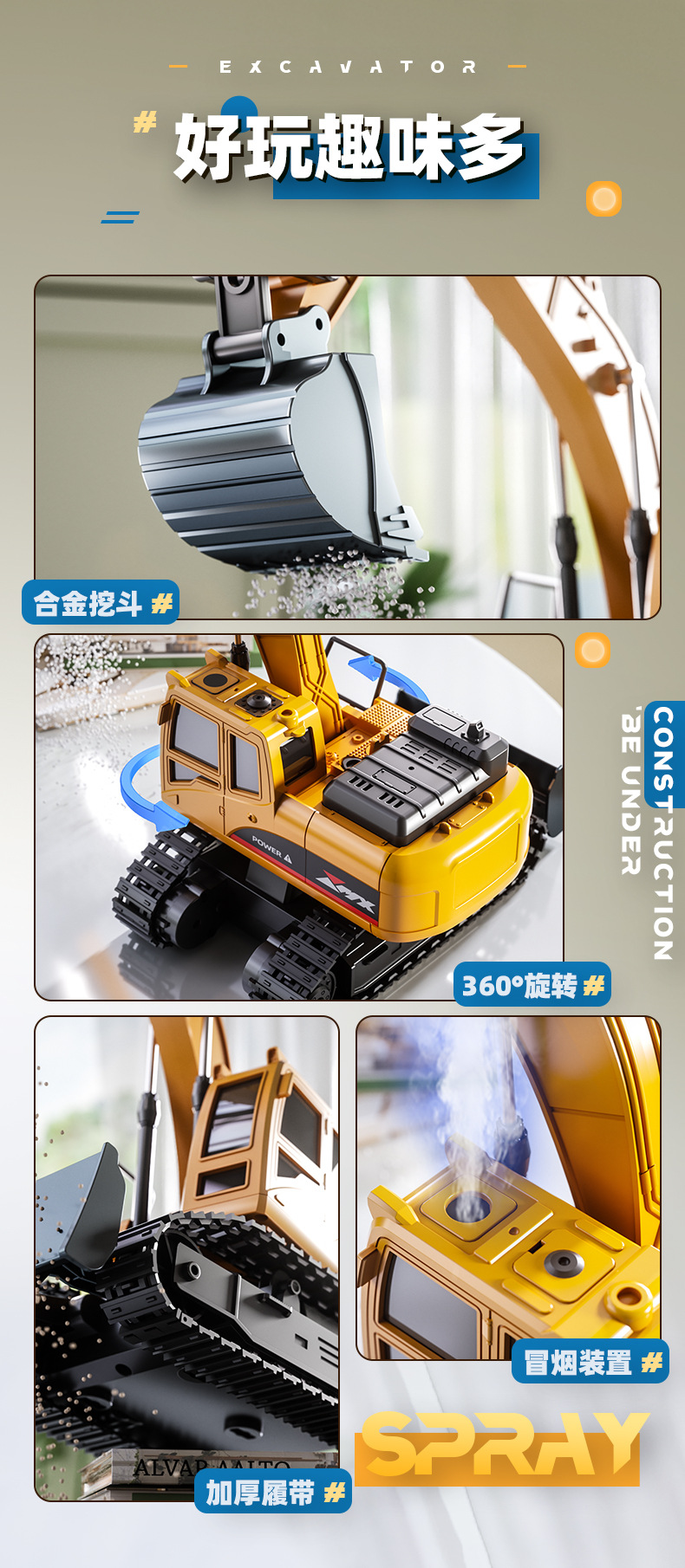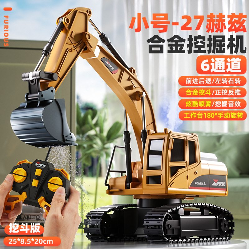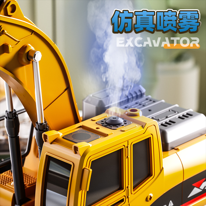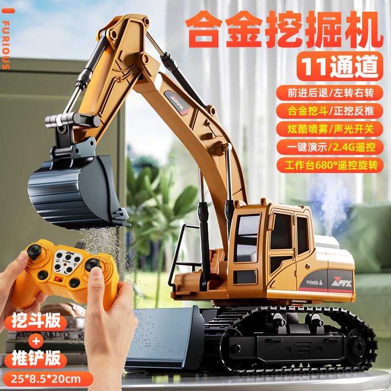 合金遥控挖掘机推土装卸翻斗车11通道充电动喷雾仿真工程儿童玩具