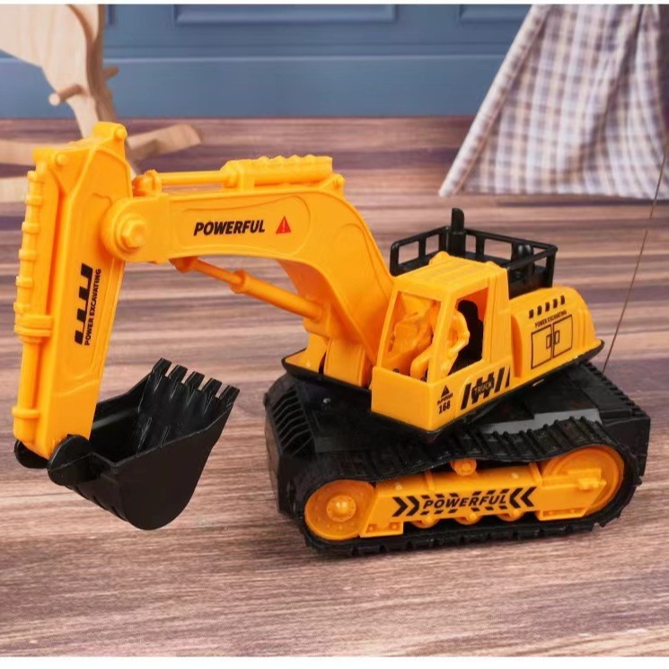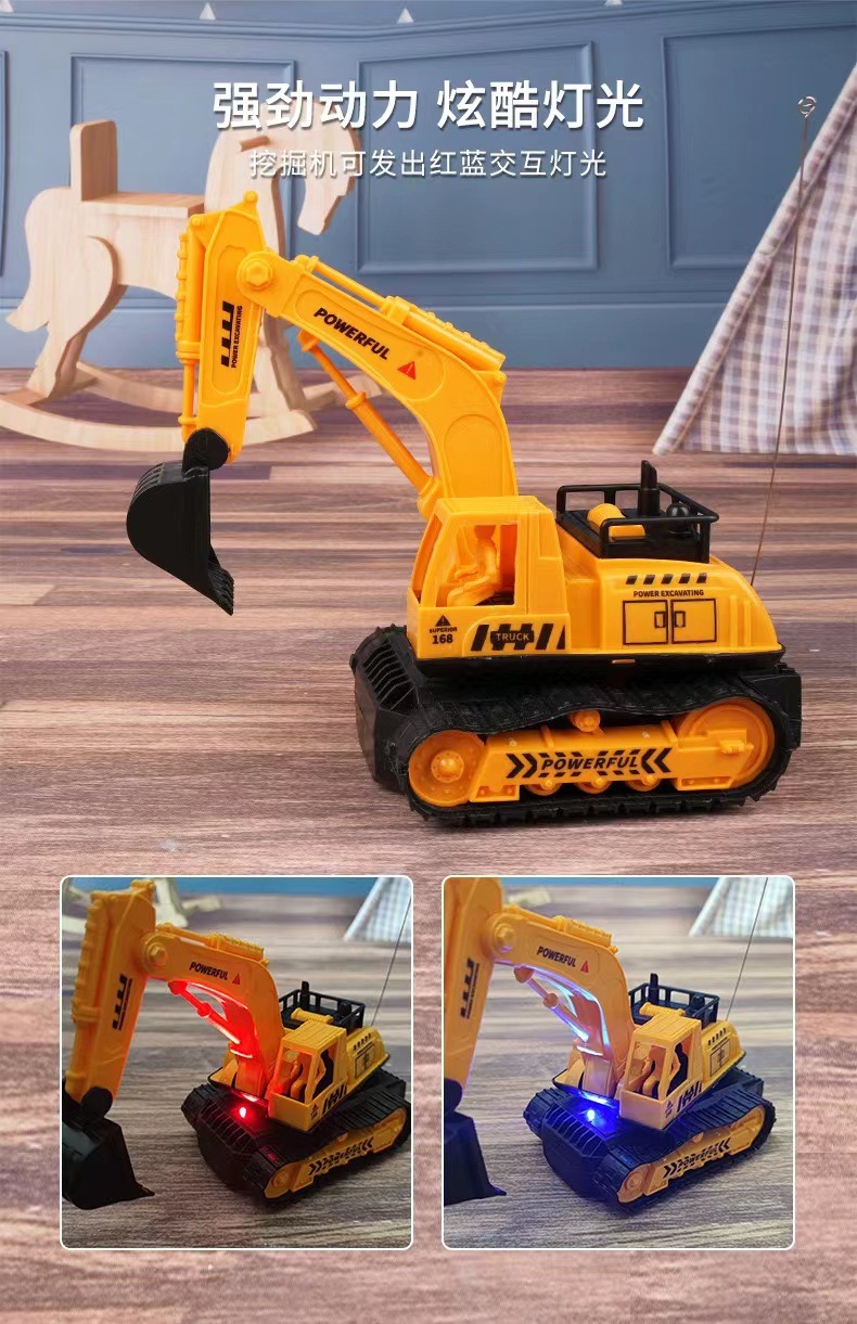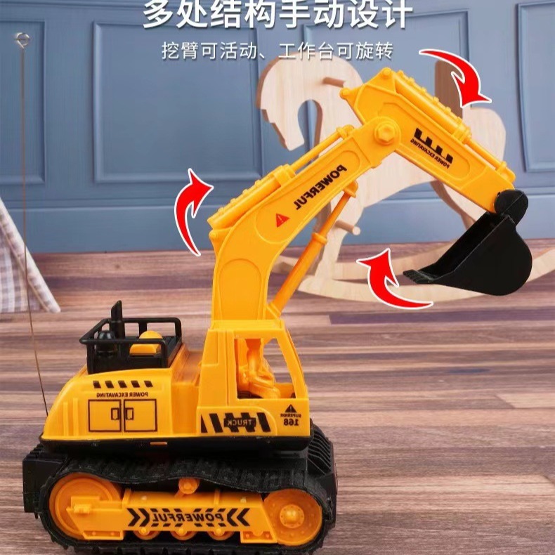 男孩玩具二通遥控挖掘机工程车玩具电动遥控挖土耐摔儿童玩具地摊