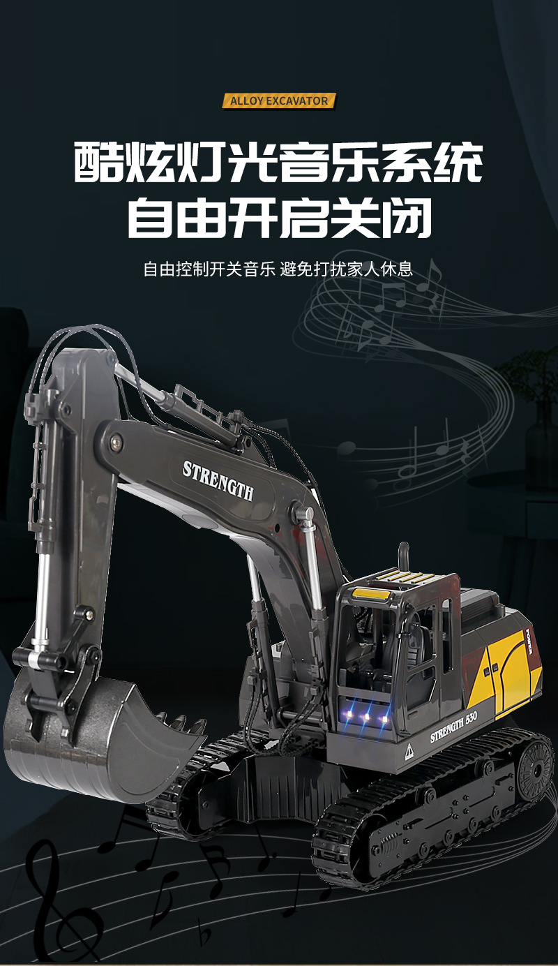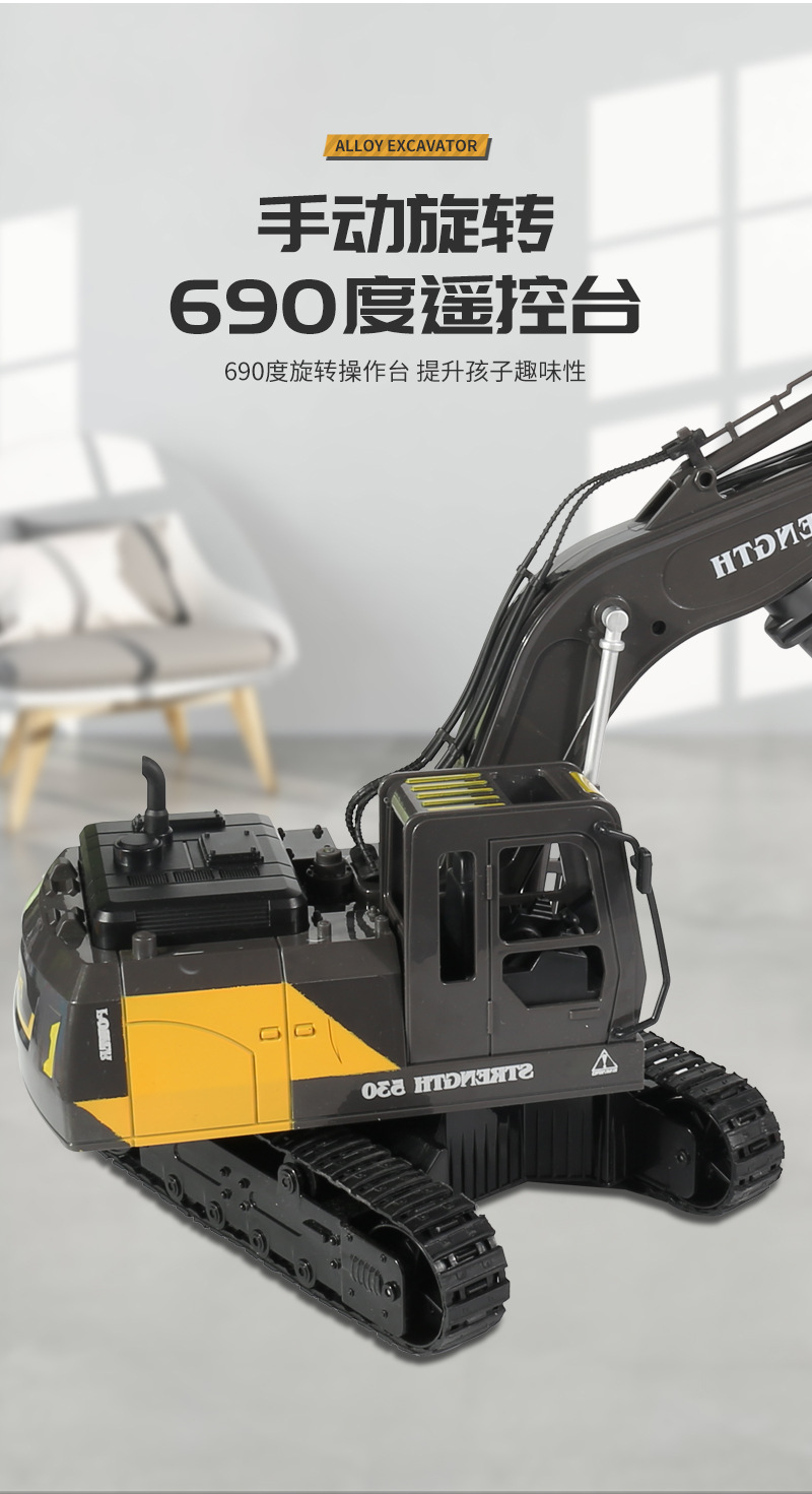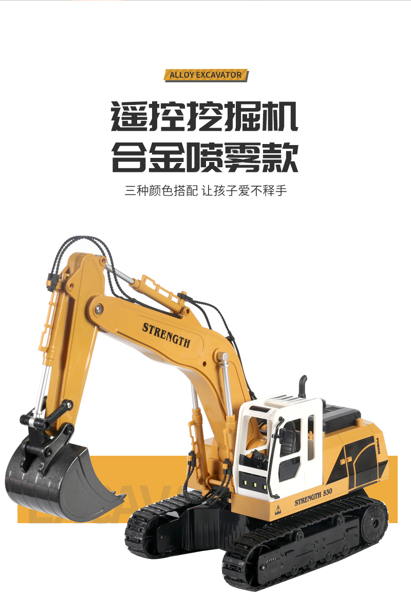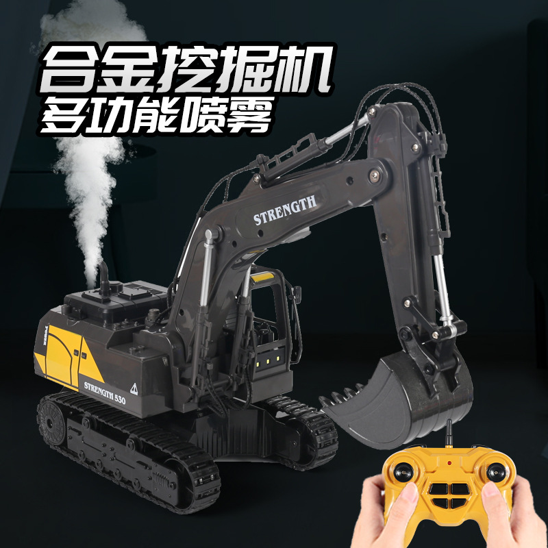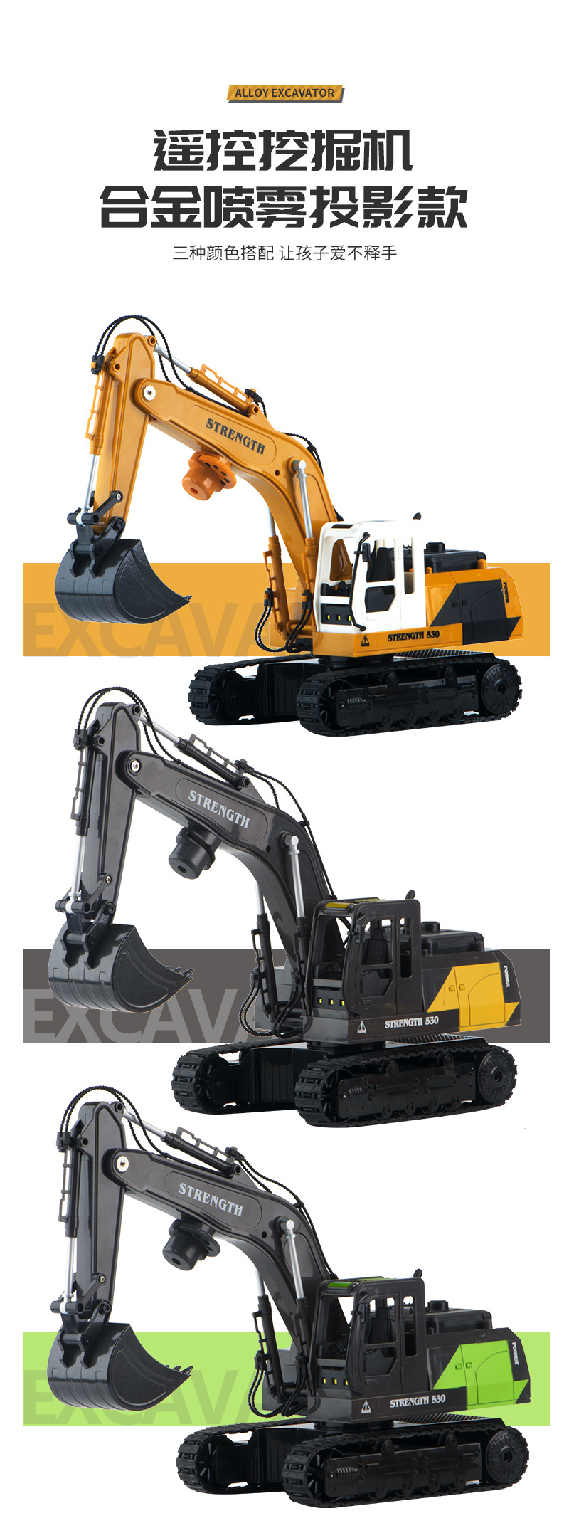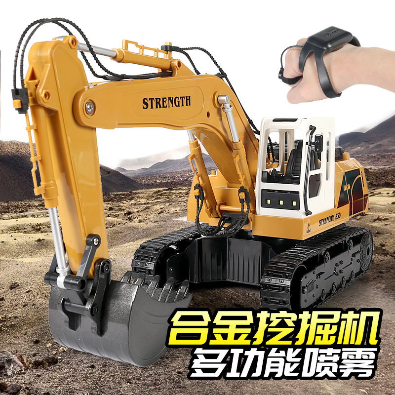 超大号儿童通合金挖掘机灯光音乐喷雾投影玩具手势感应电动遥控车