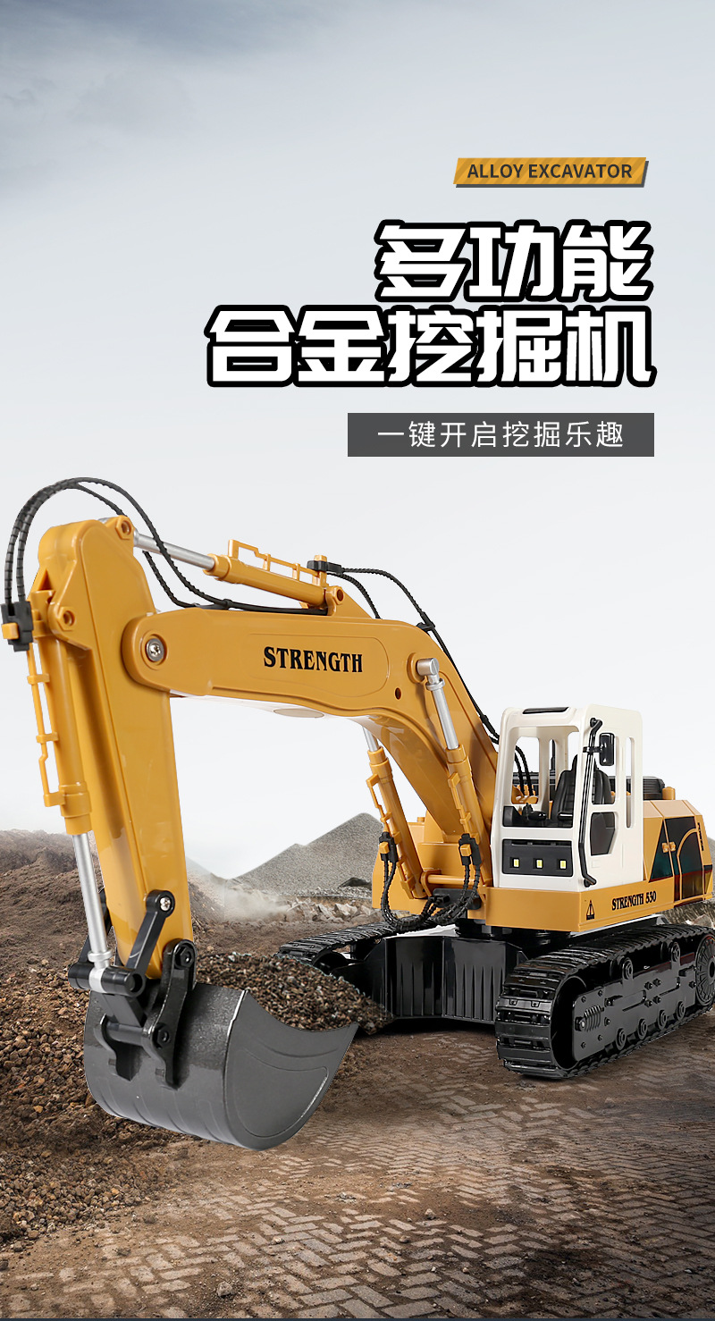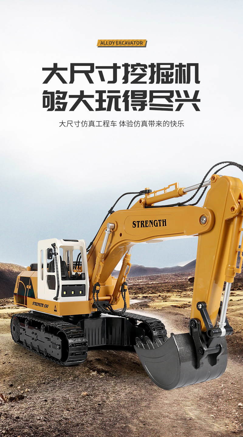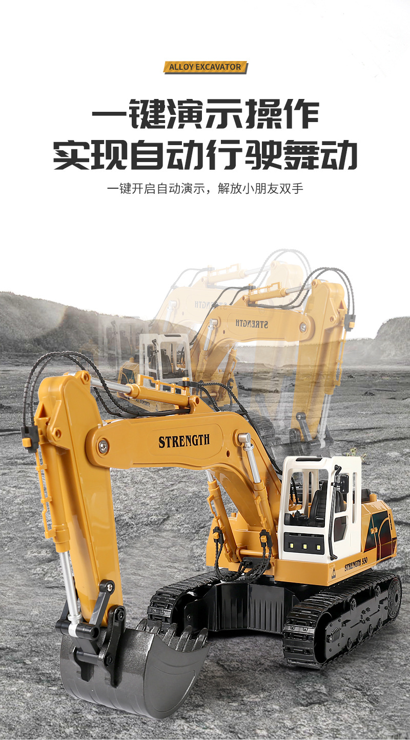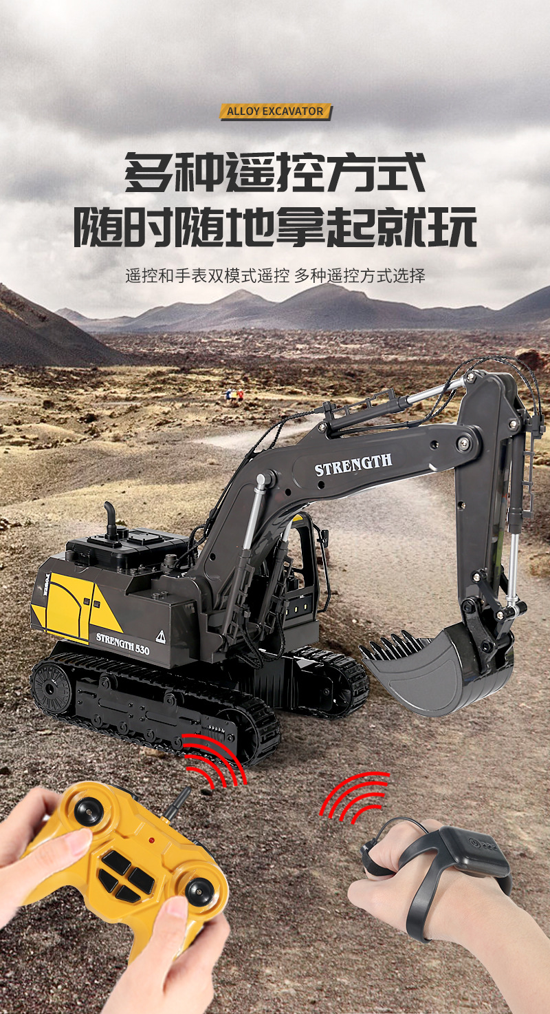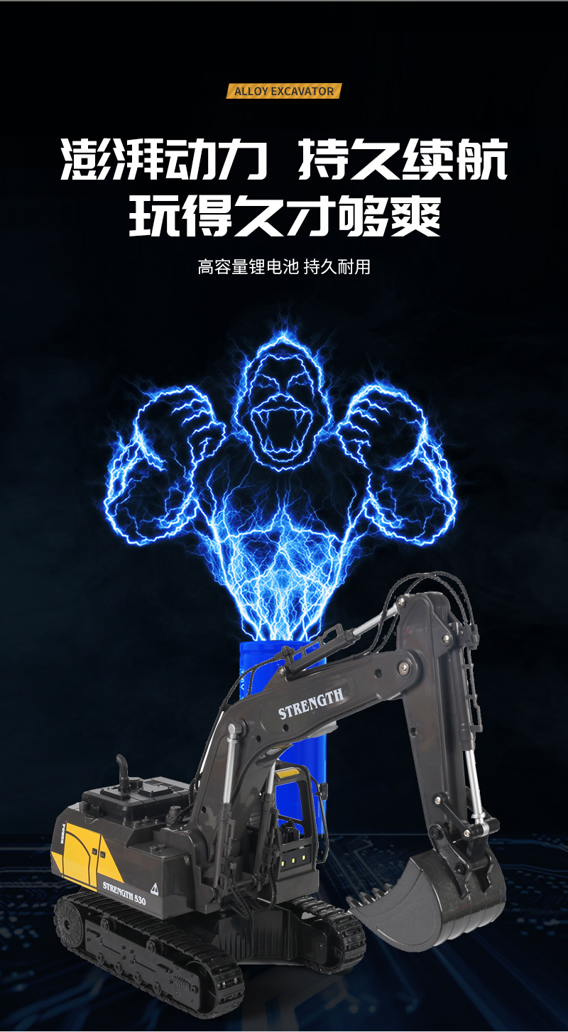 超大号儿童通合金挖掘机灯光音乐喷雾投影玩具手势感应电动遥控车