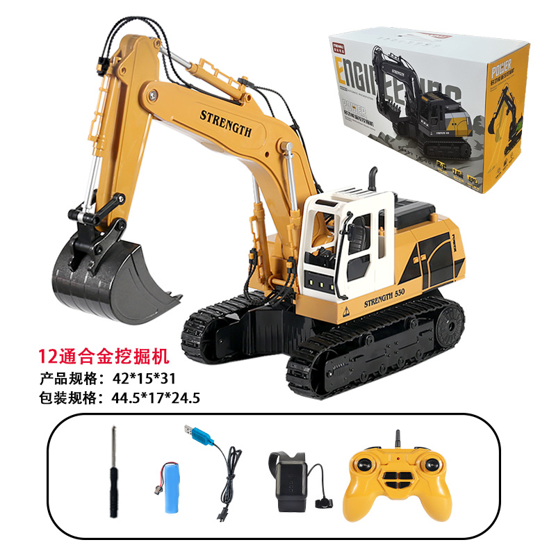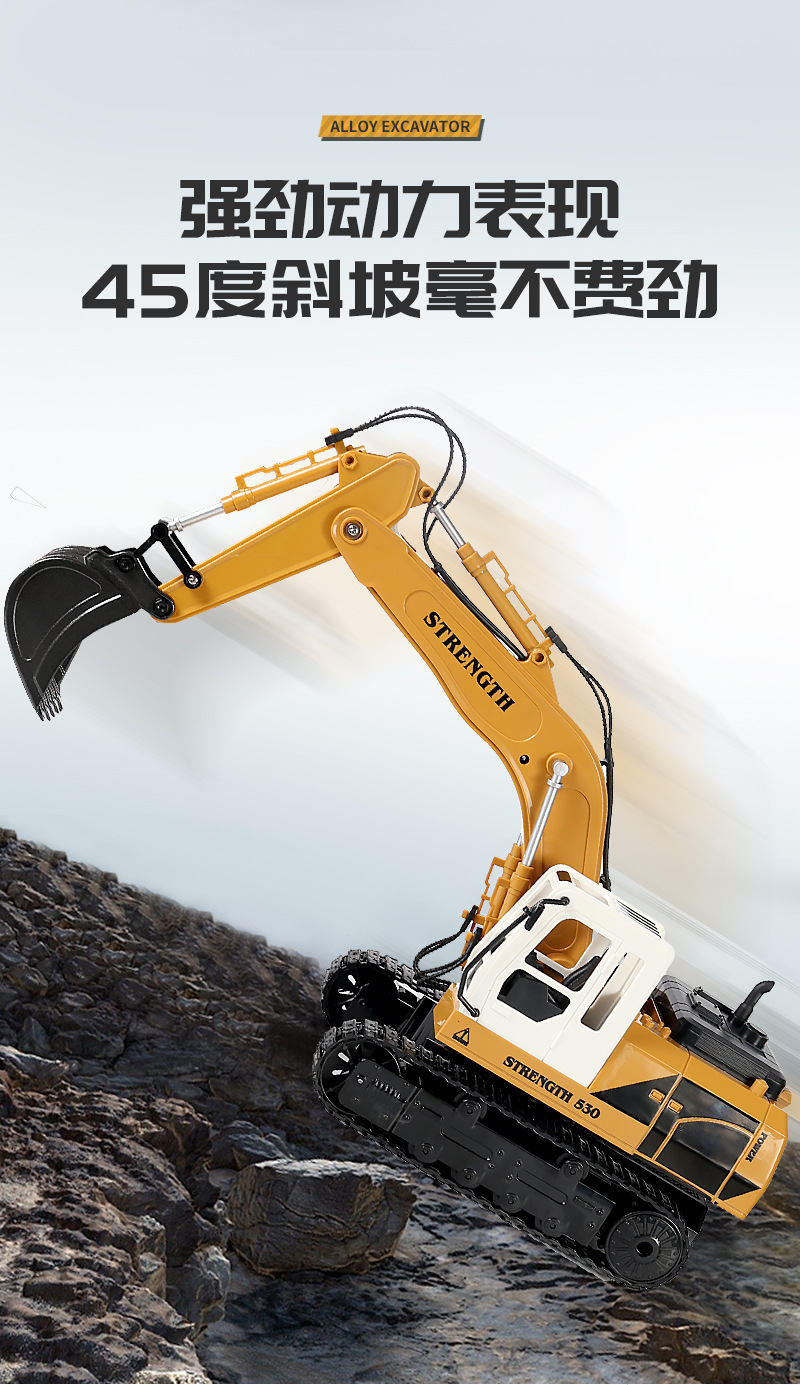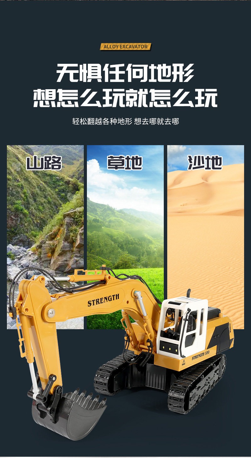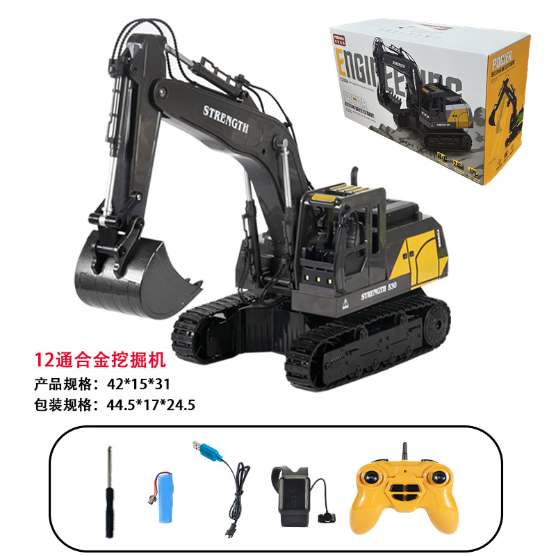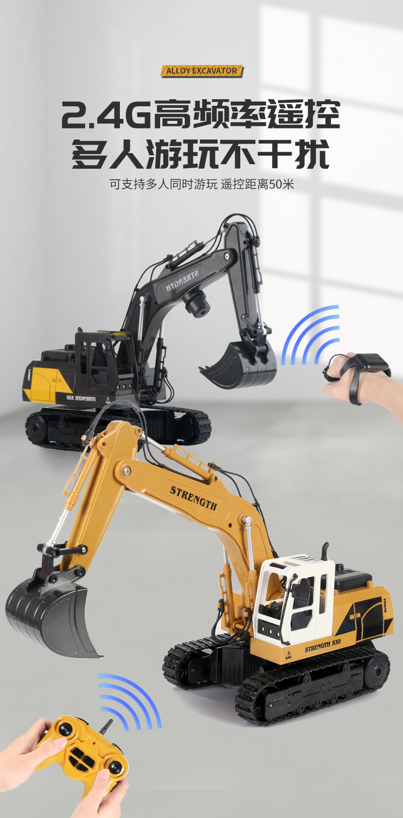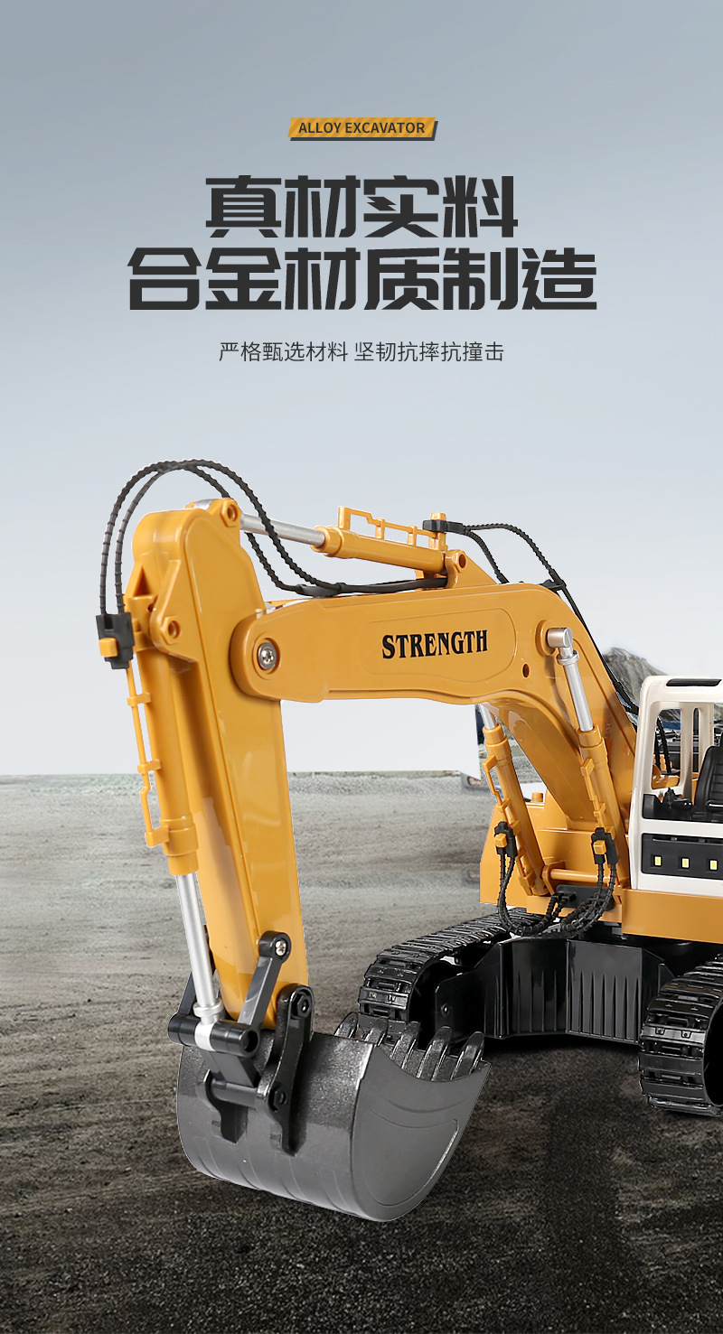 超大号儿童通合金挖掘机灯光音乐喷雾投影玩具手势感应电动遥控车