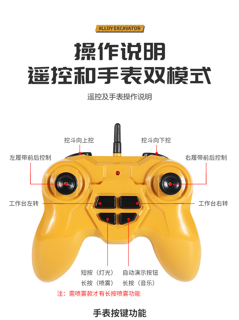 14通挖掘机【投影喷雾款】灰黄色+手表