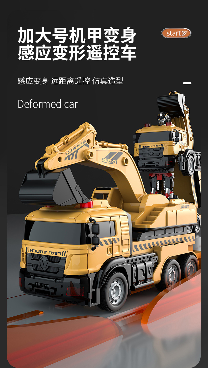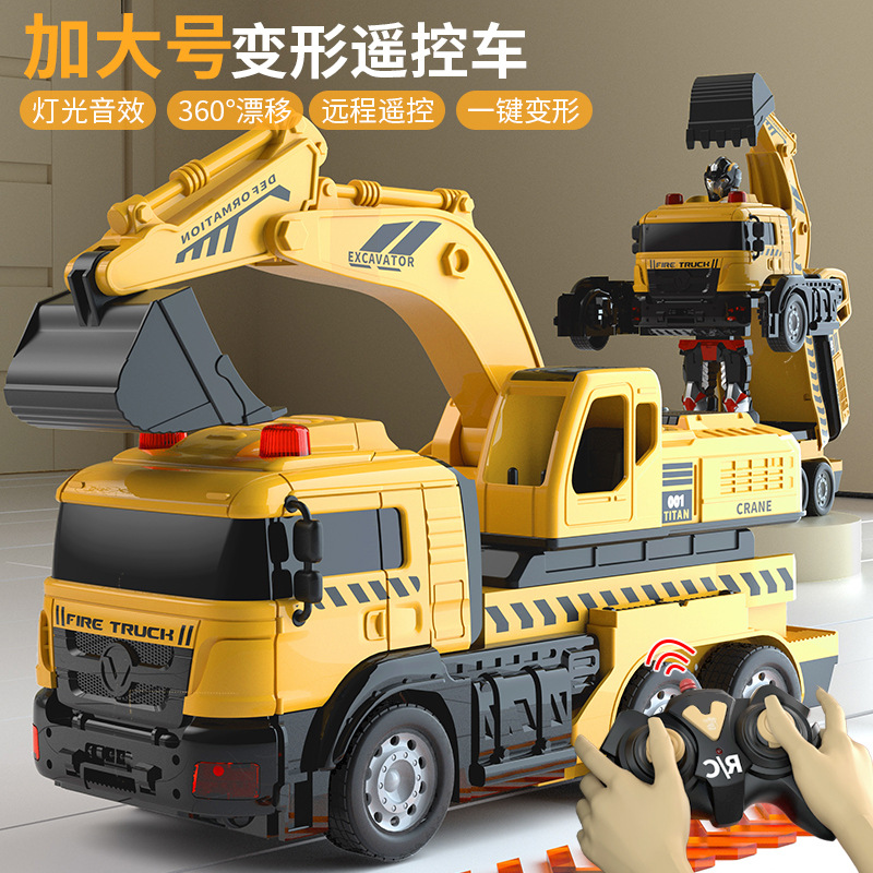 儿童挖掘机玩具车男孩遥控感应变形遥控汽车金刚机器人电动挖土机