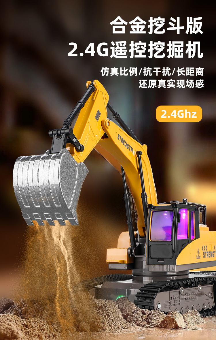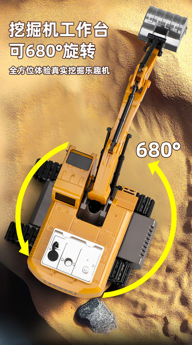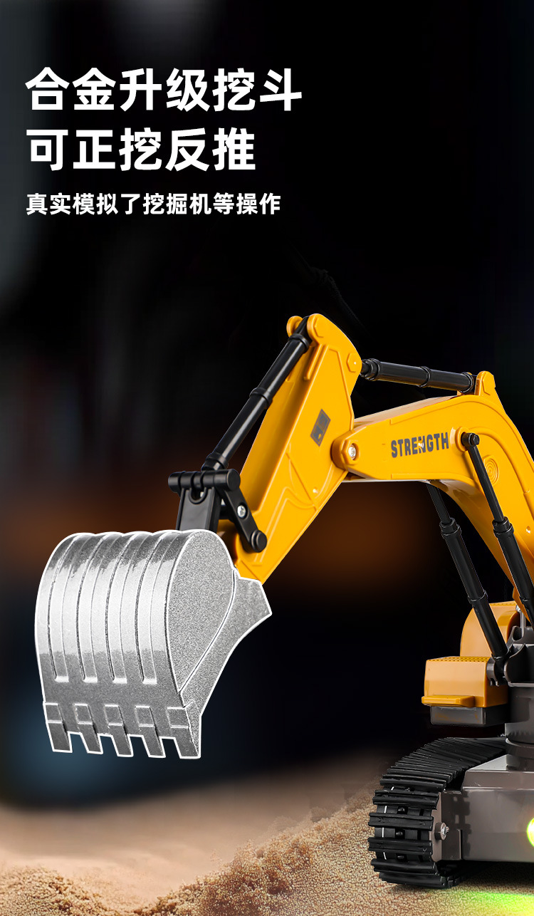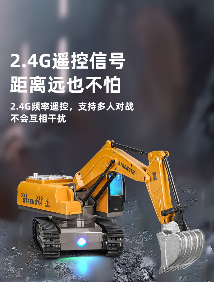 跨境2.4g遥控挖掘机男孩大号电动工程车12通道合金挖土机儿童玩具