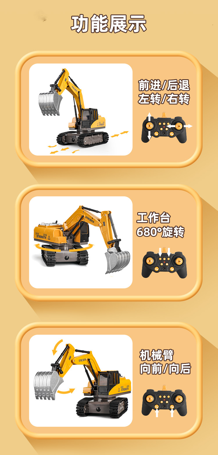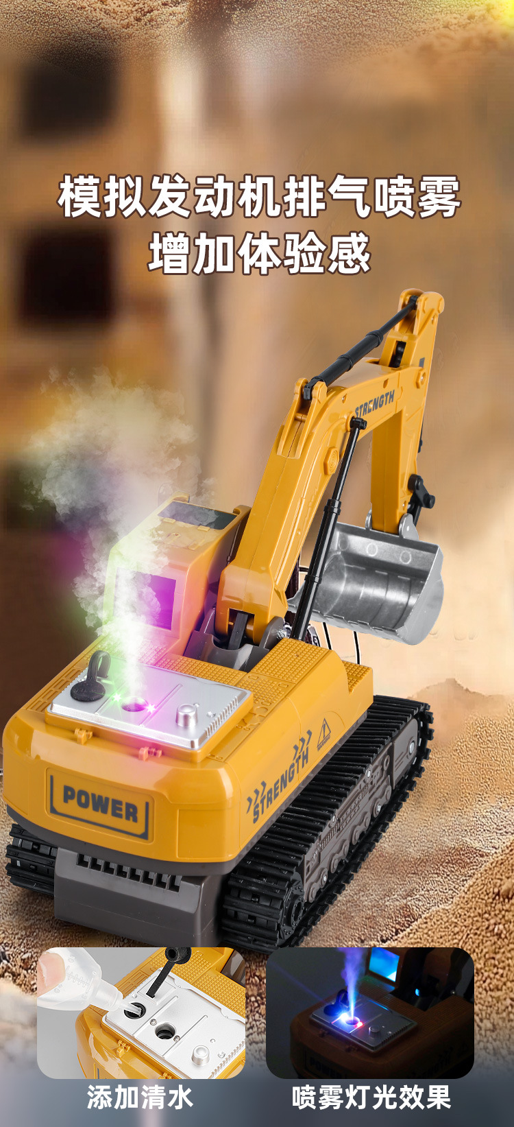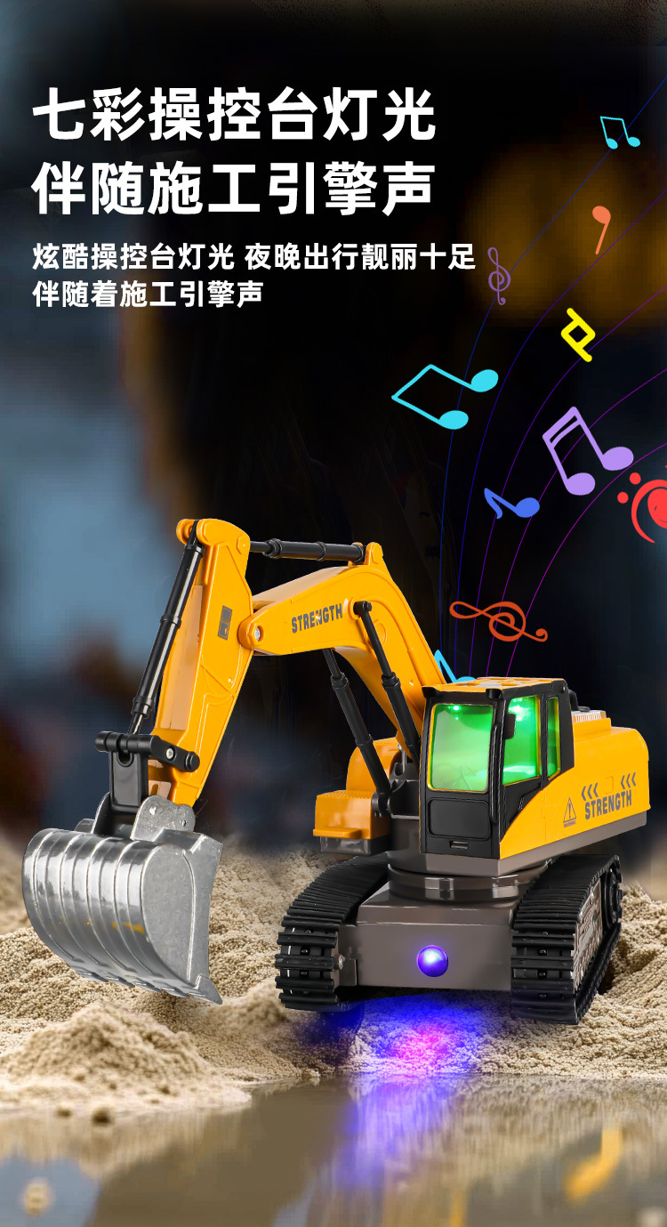 跨境2.4g遥控挖掘机男孩大号电动工程车12通道合金挖土机儿童玩具
