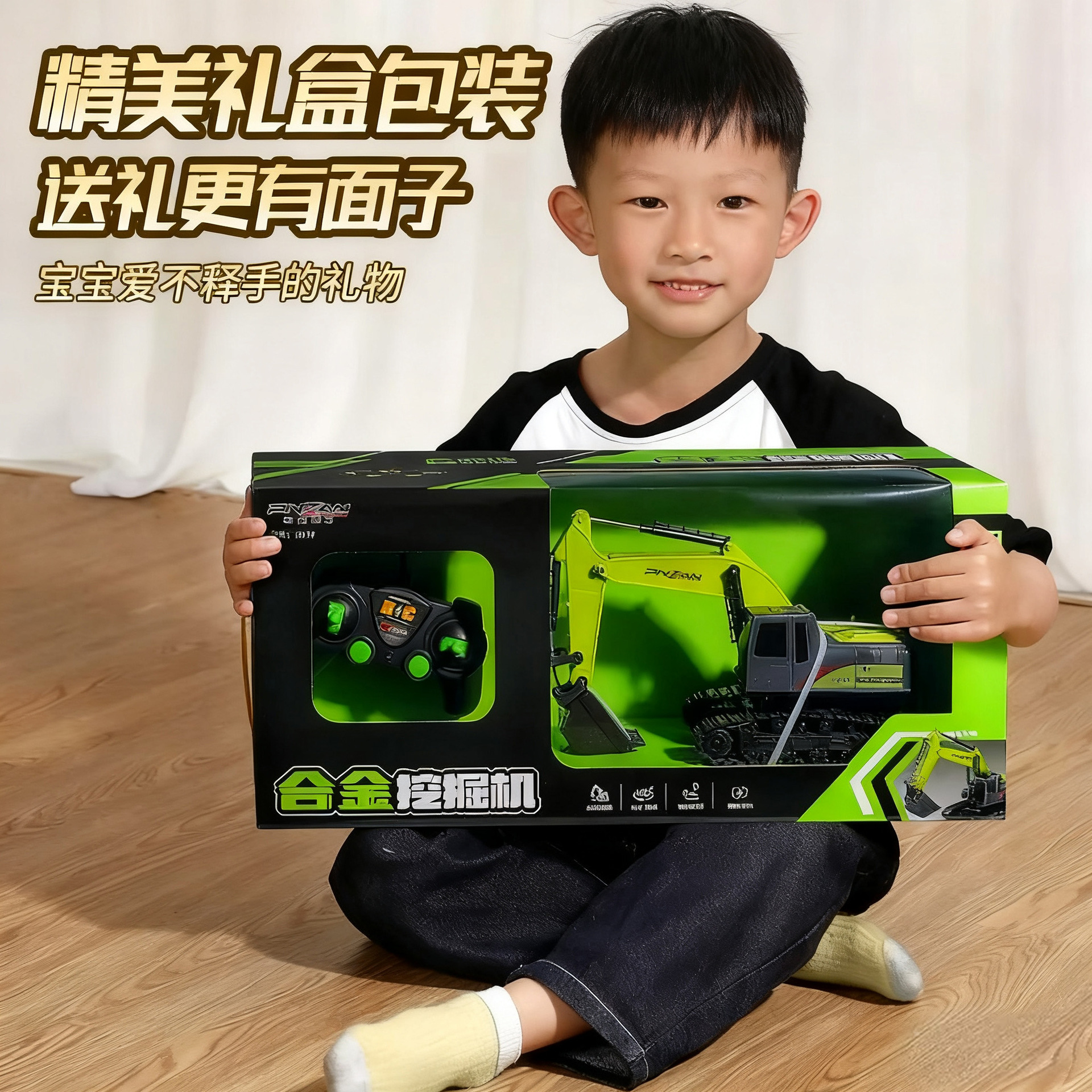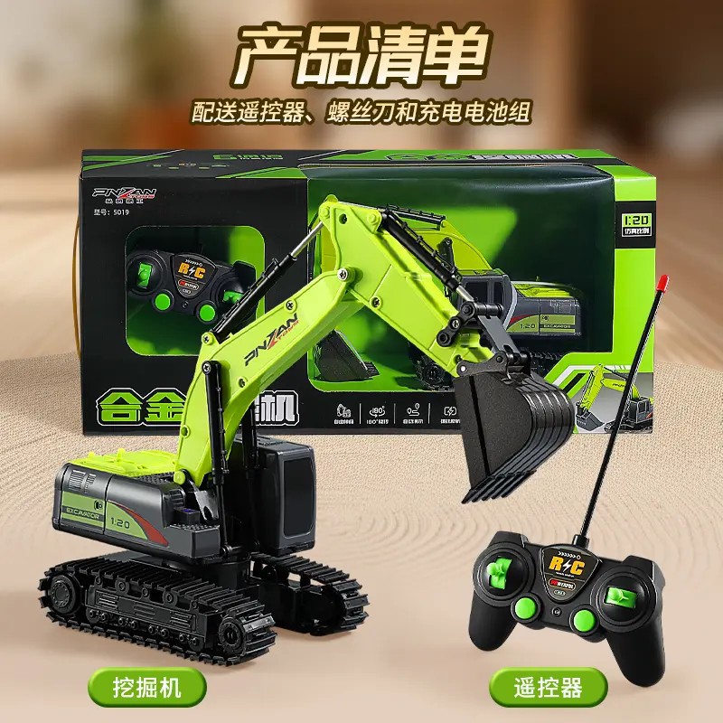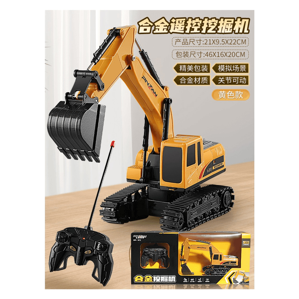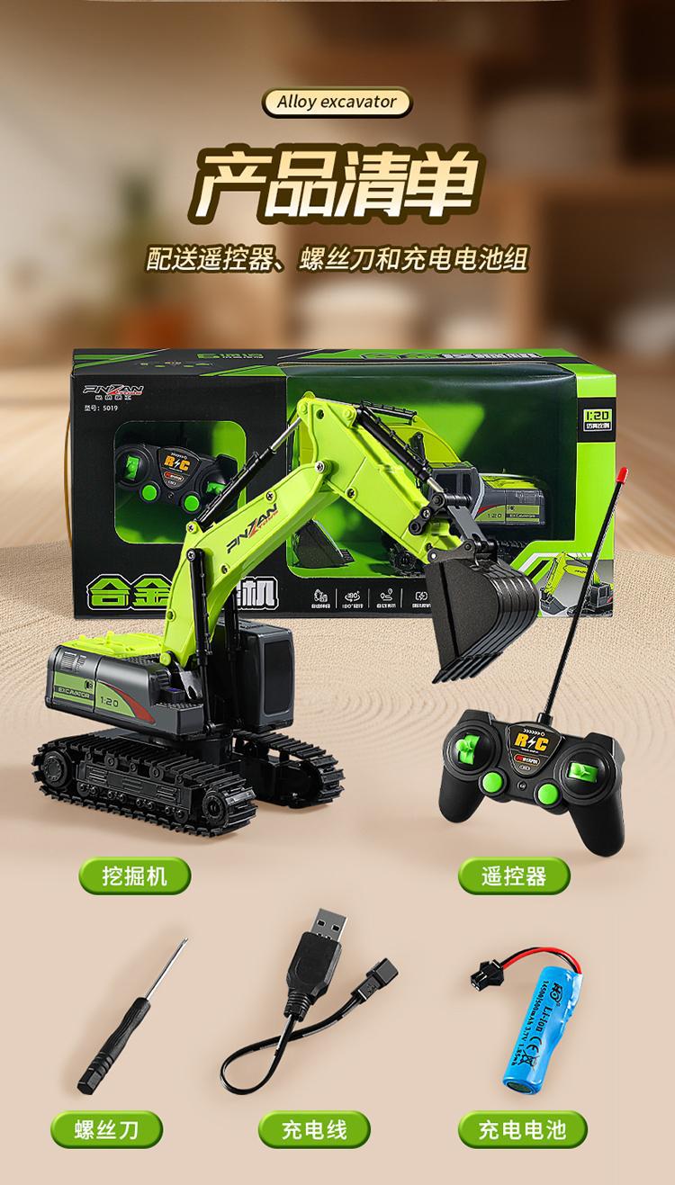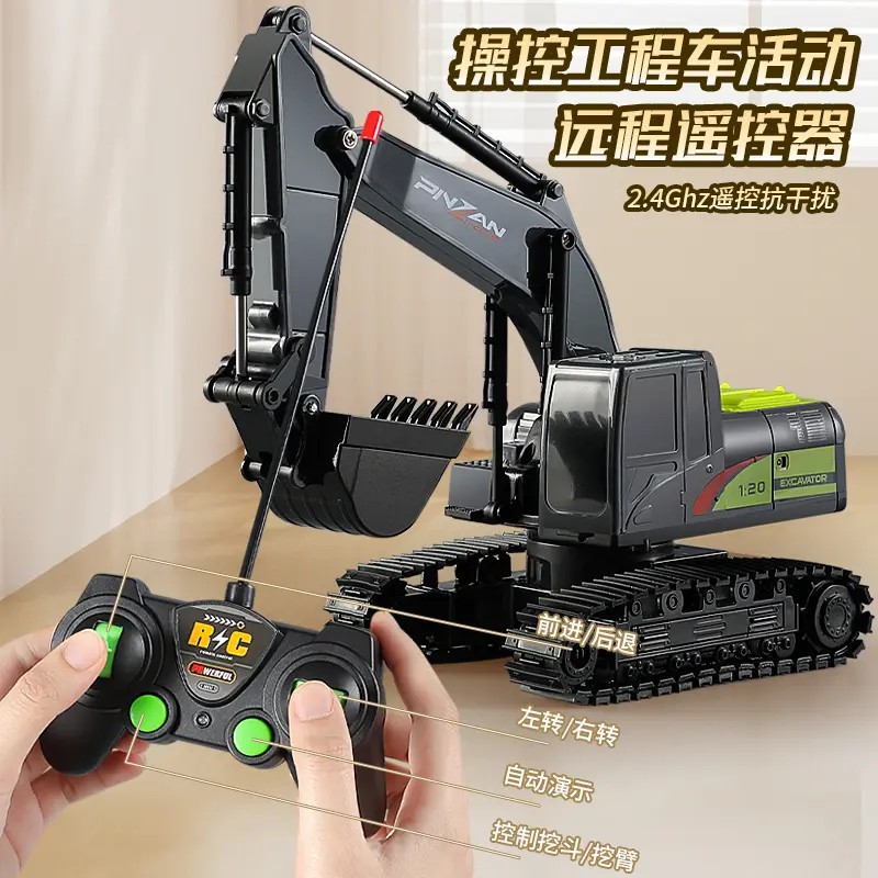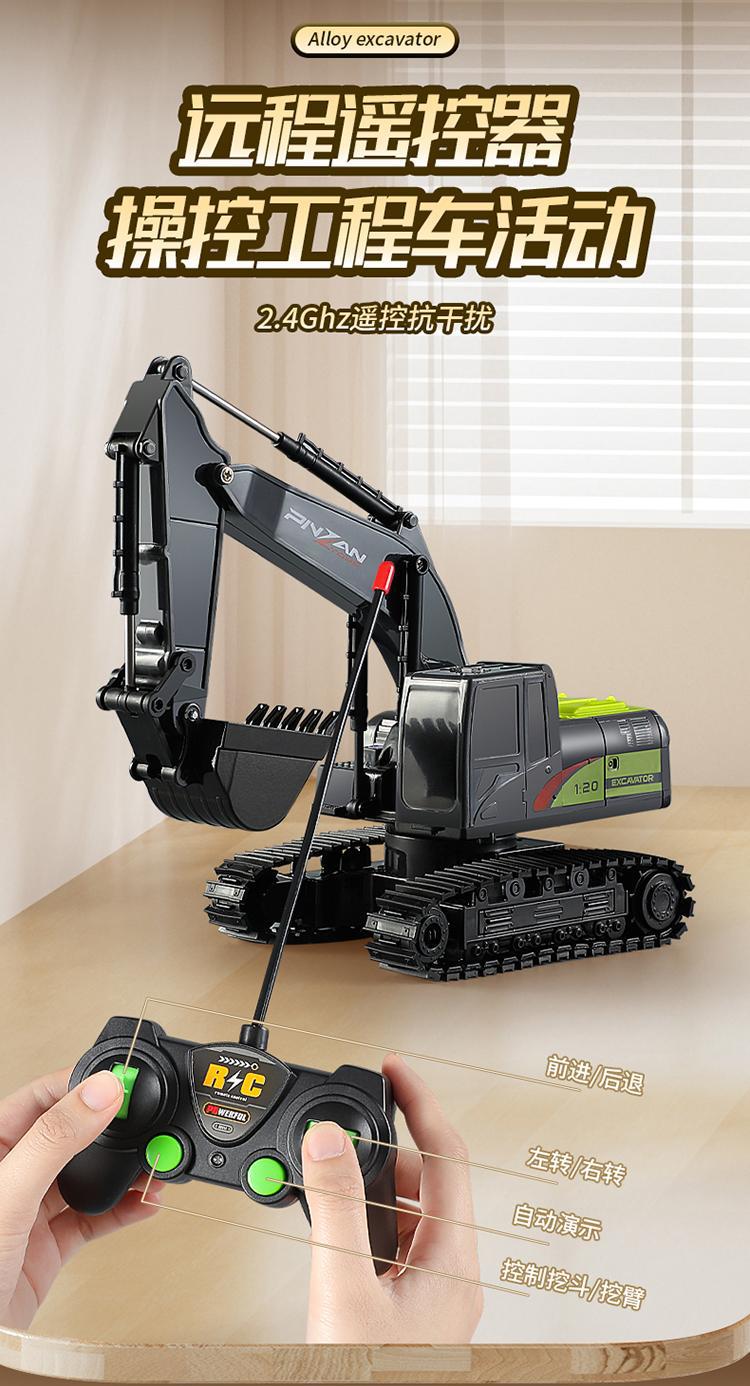 六通电动挖掘机玩具车男孩合金遥控挖土机汽车工程车儿童生日礼物