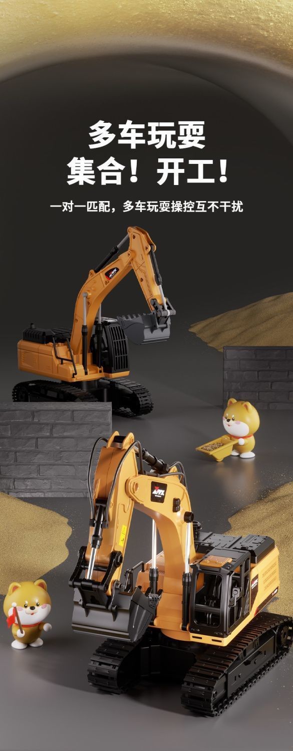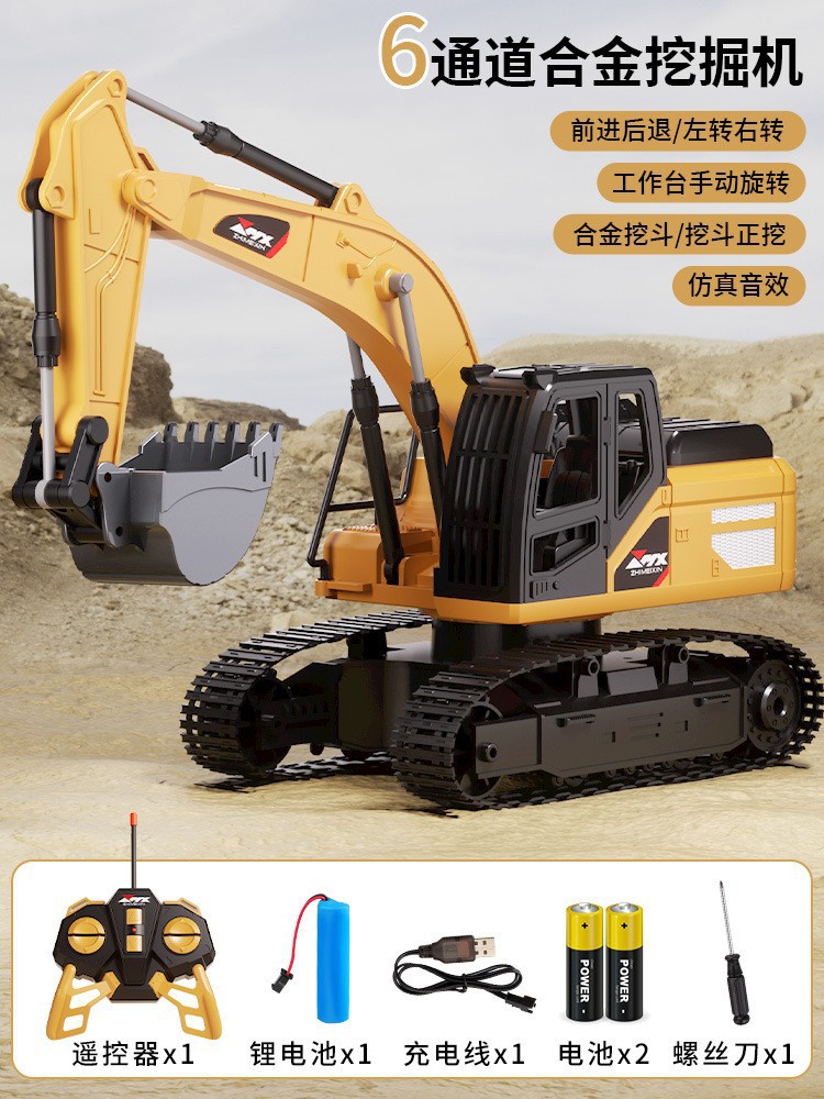 儿童合金遥控挖掘机玩具车6通电动工程车挖机玩具地摊遥控车