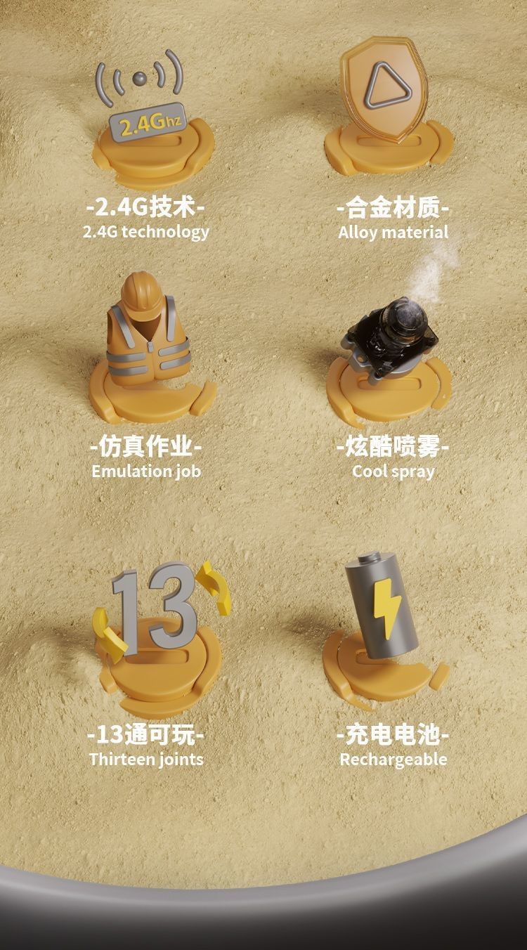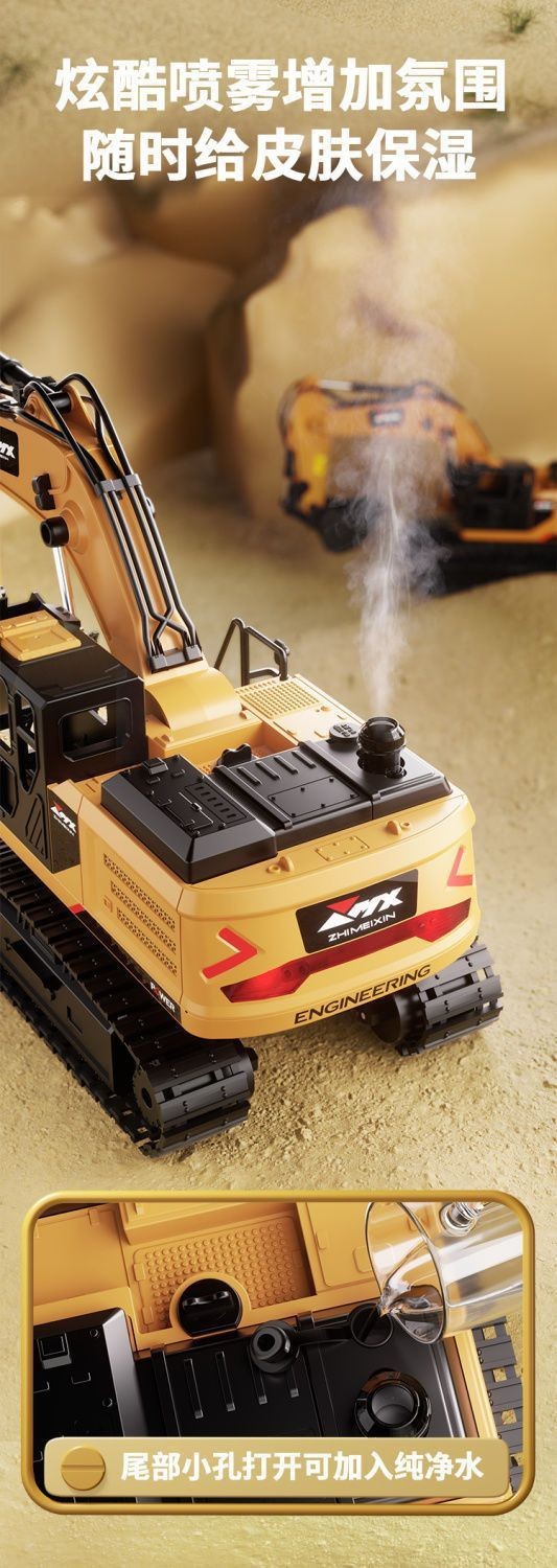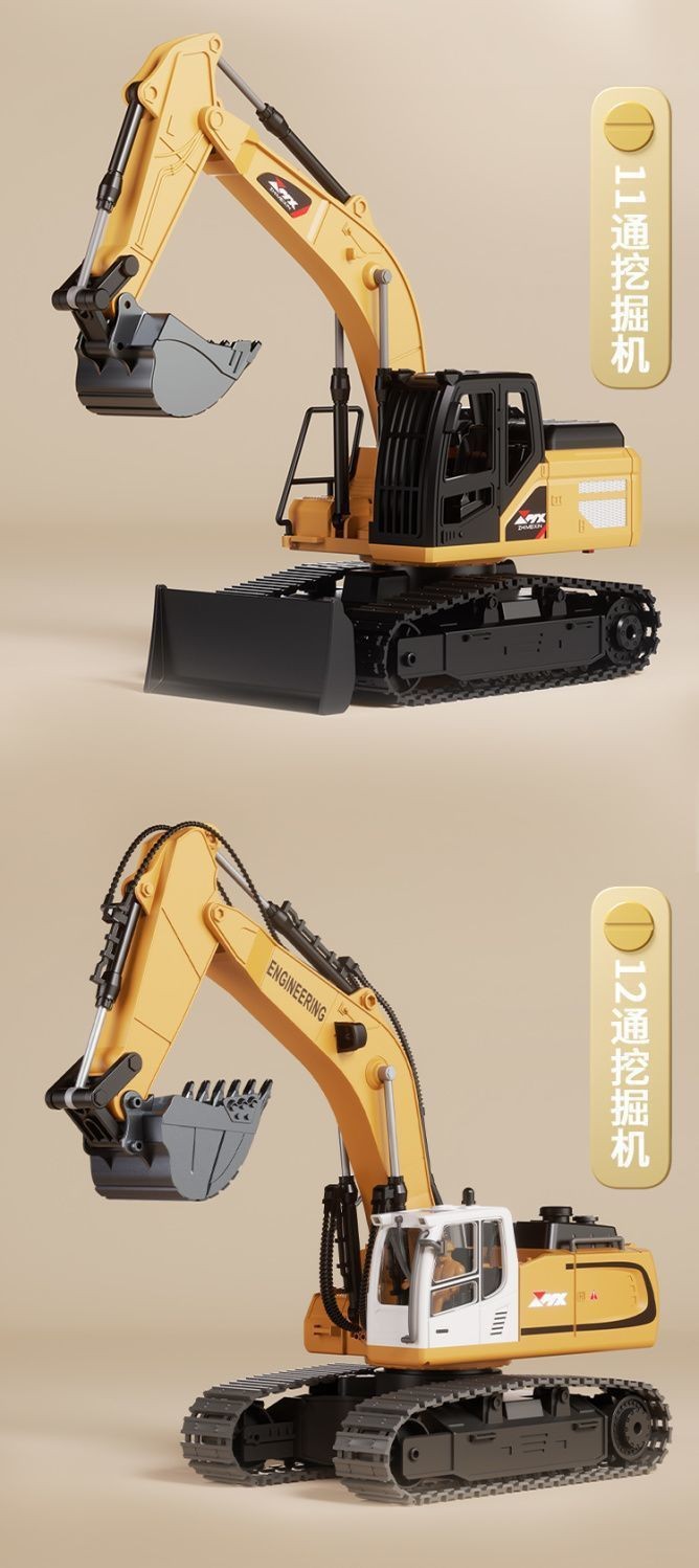 【黄色】合金挖掘机【12通道】彩盒带喷雾