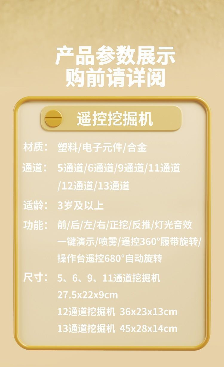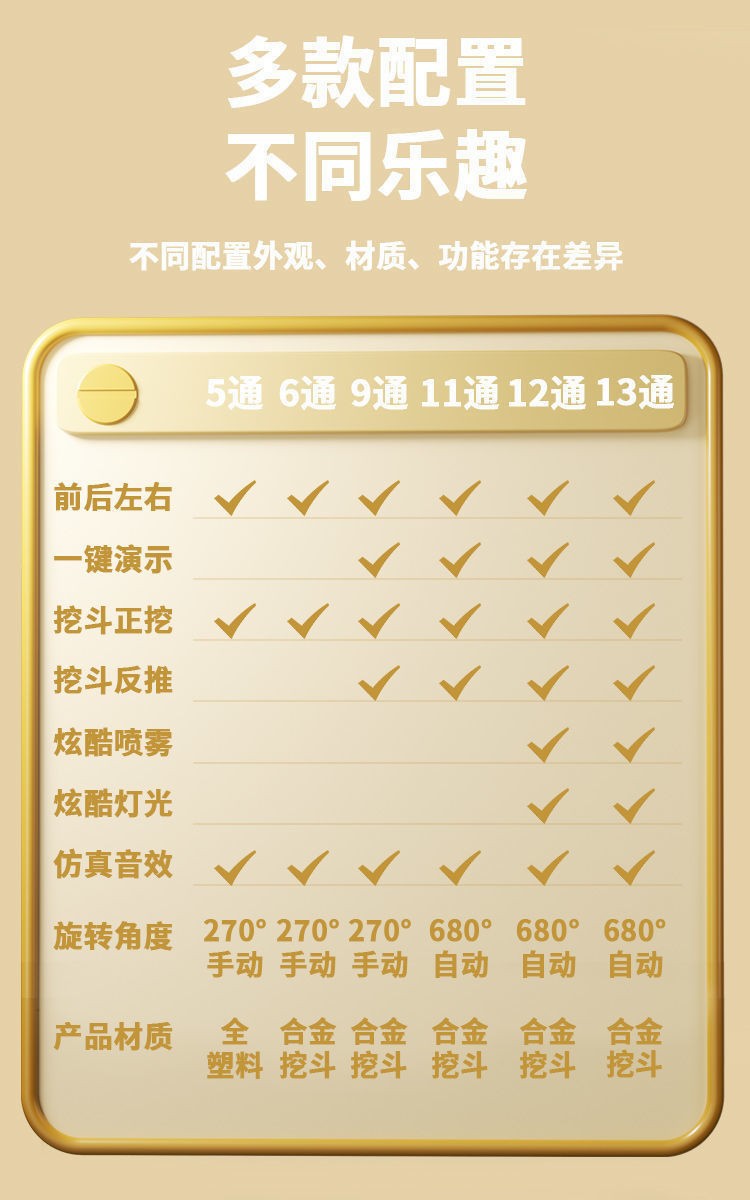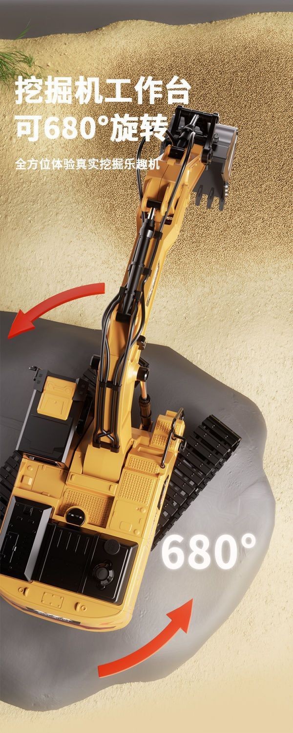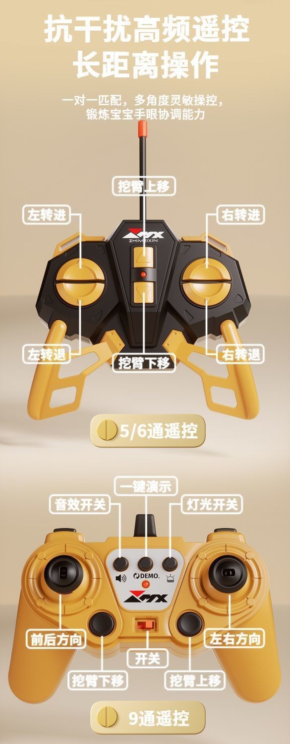 【黄色】合金挖掘机【12通道】彩盒带喷雾