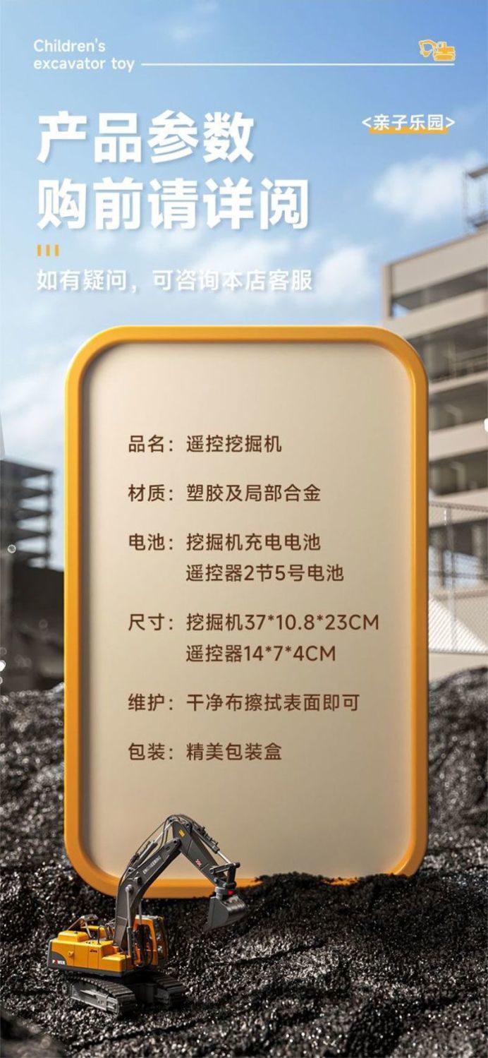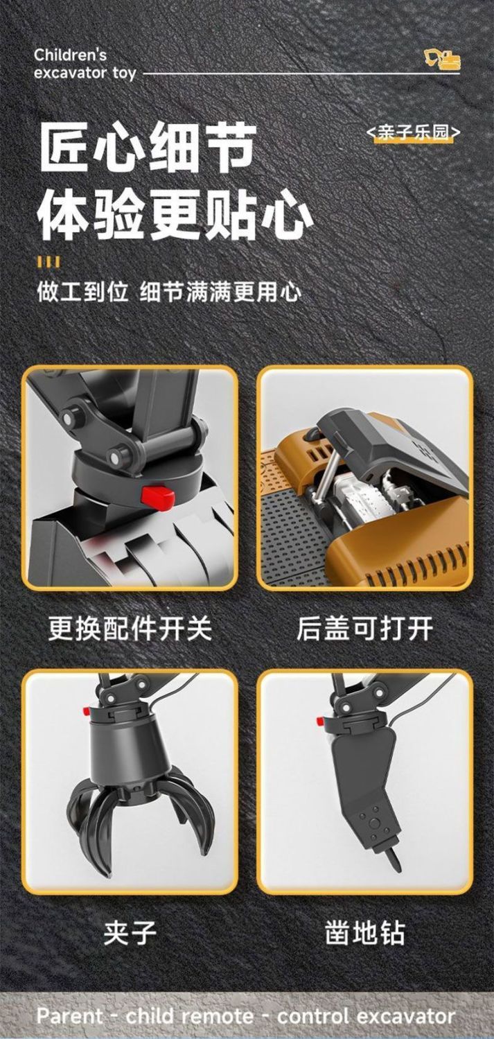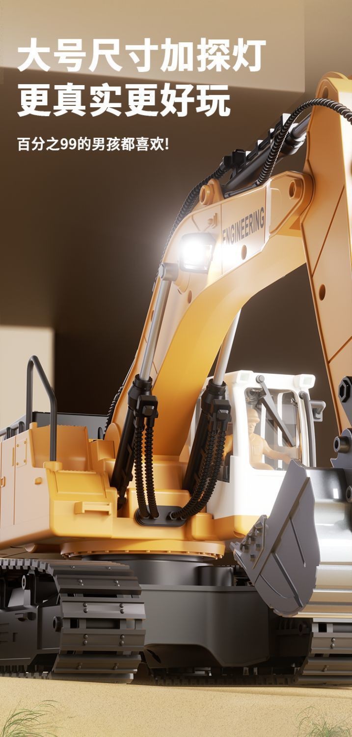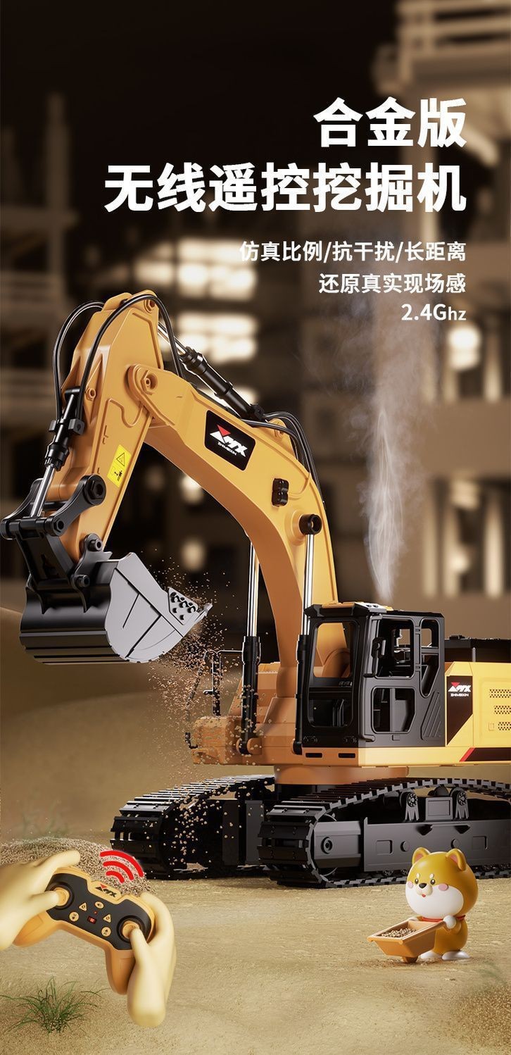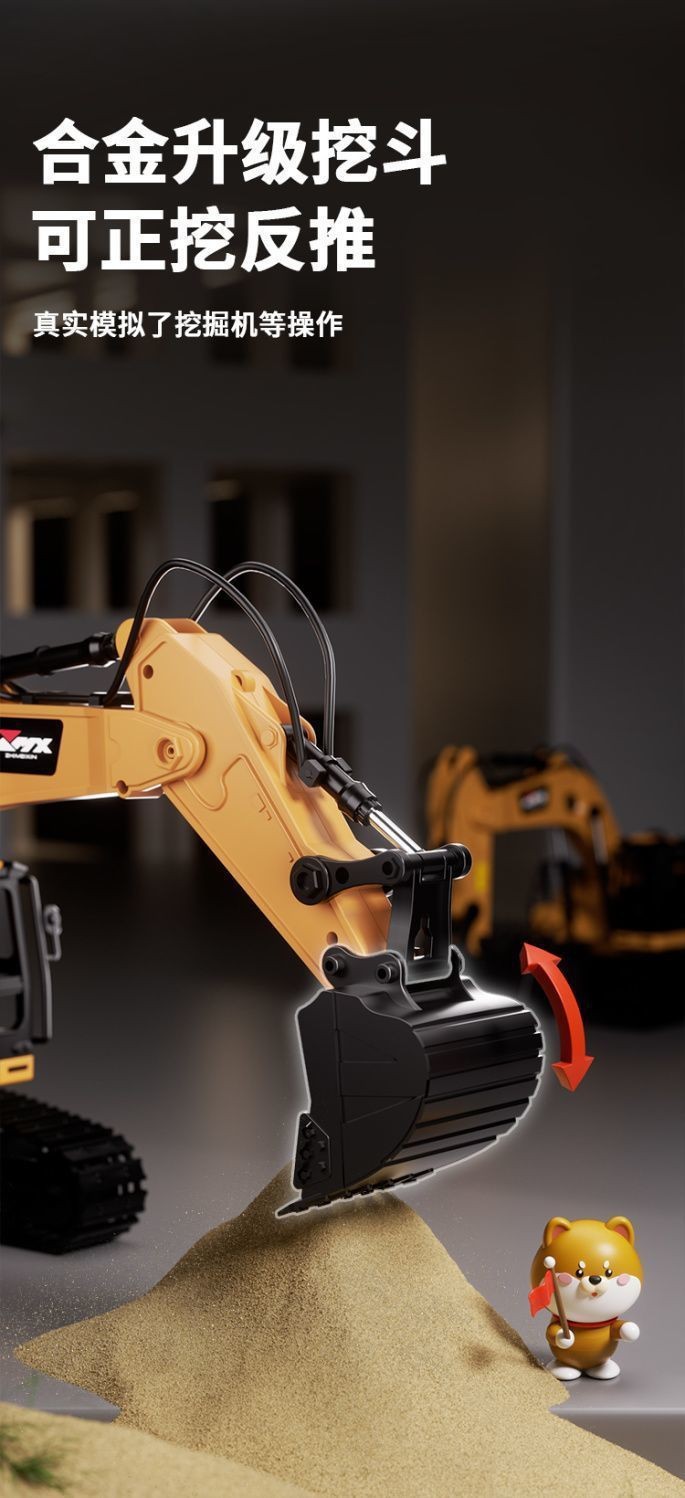 跨境大号合金儿童遥控挖掘机玩具车男孩仿真挖土机推土机遥控汽车