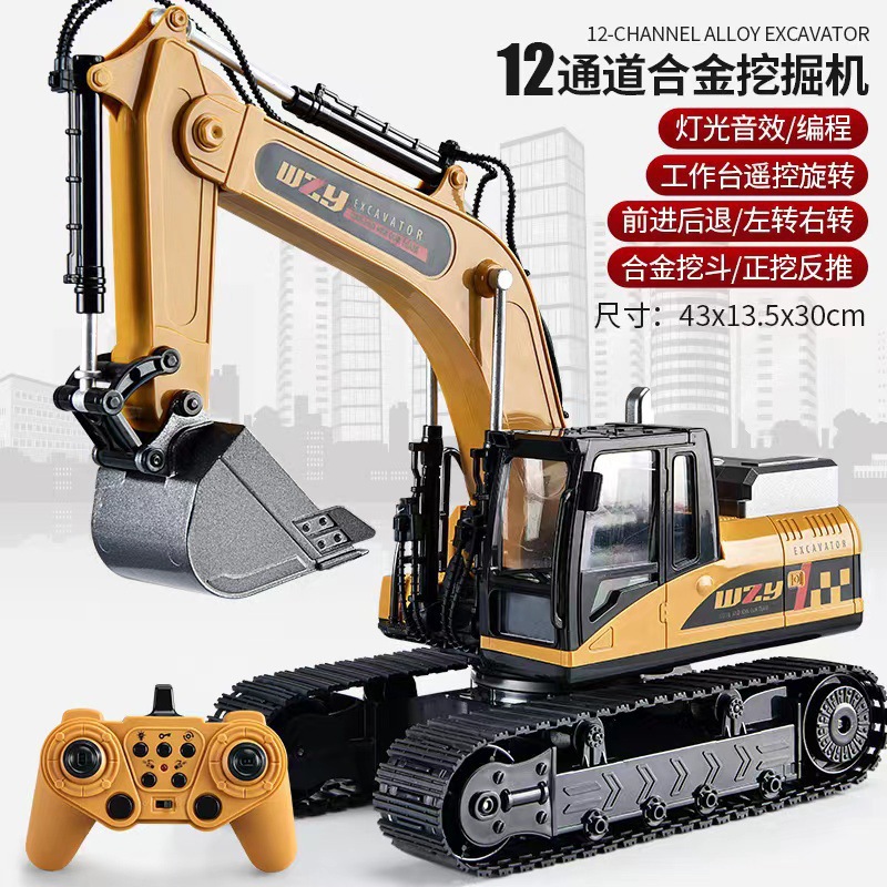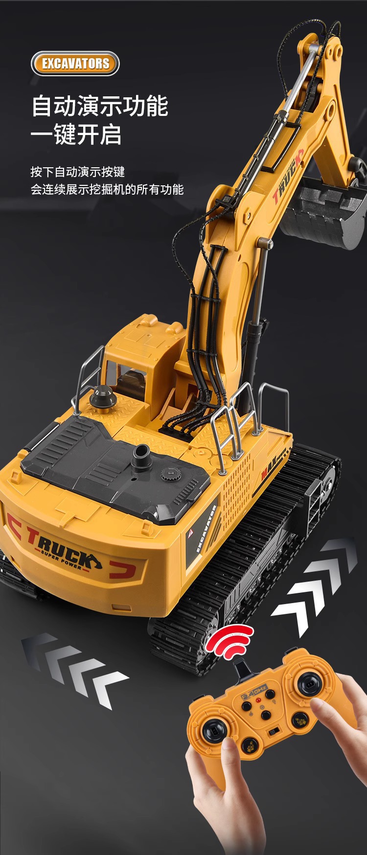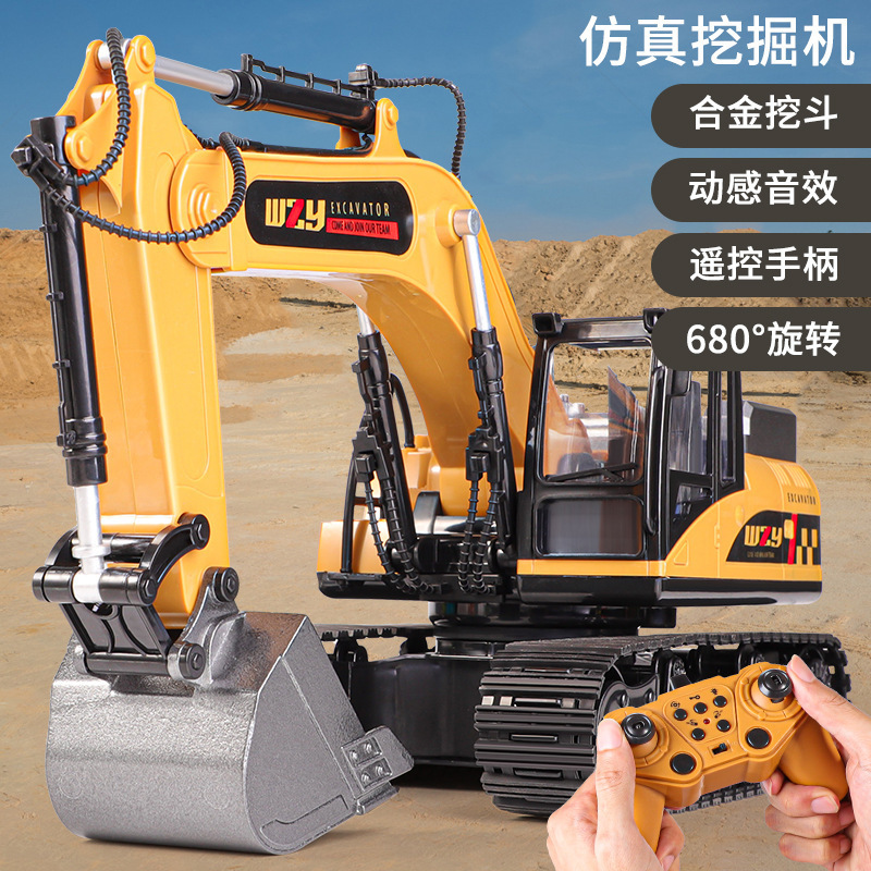 跨境儿童遥控车合金挖掘机仿真挖土机工程车玩具车装卸车男孩礼物
