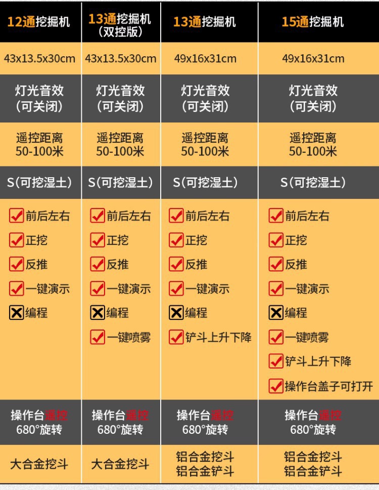 - 手表双控(黄色)13通挖掘机【彩盒合金版】