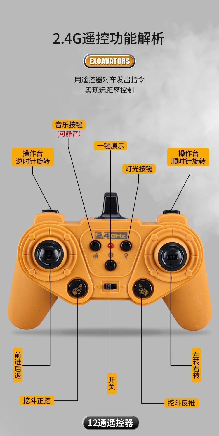 - 手表双控(灰色)12通挖掘机【彩盒合金版】